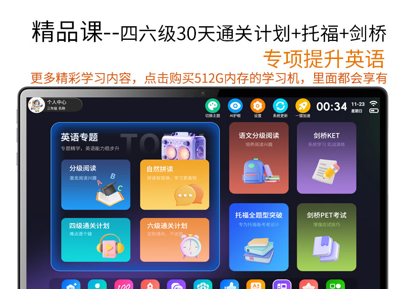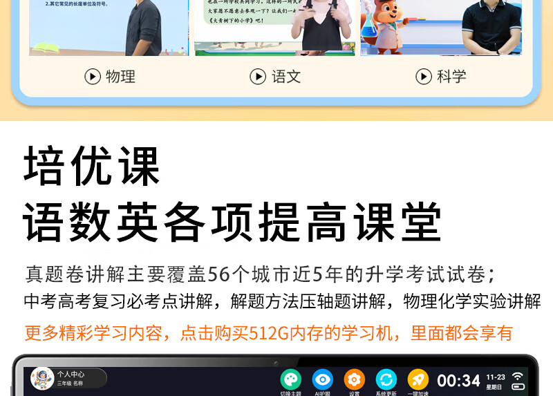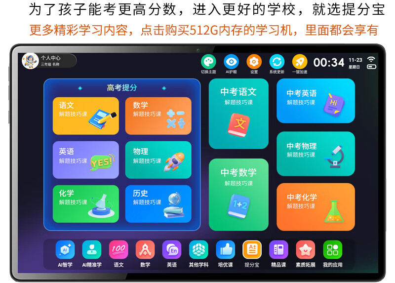 Oriental Zhuangyuanlang Learning Machine Tablet Deepseek English Point Reading Machine AI Elementary School Middle and High School Textbook Synchronization 2026 Tutoring Machine Literacy and Child Accompanying Learning Early Learning Training Machine 5G Speedy Network Smart Blue + AR Smart Eyes + AI Eye Protection Tifenbao 16G + 512G High Upgrade Version + AI Solution to Original Questions + Composition Comments