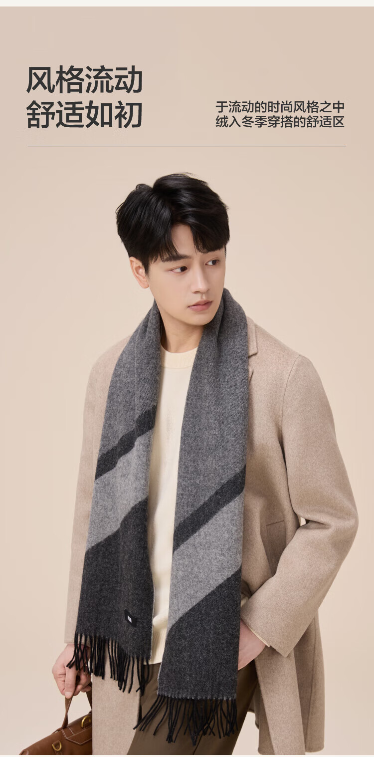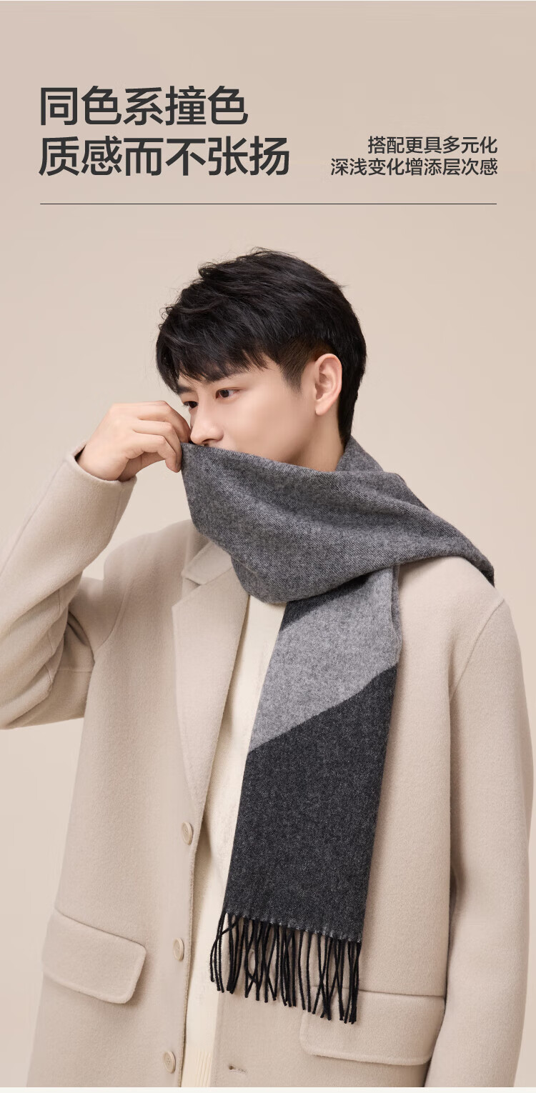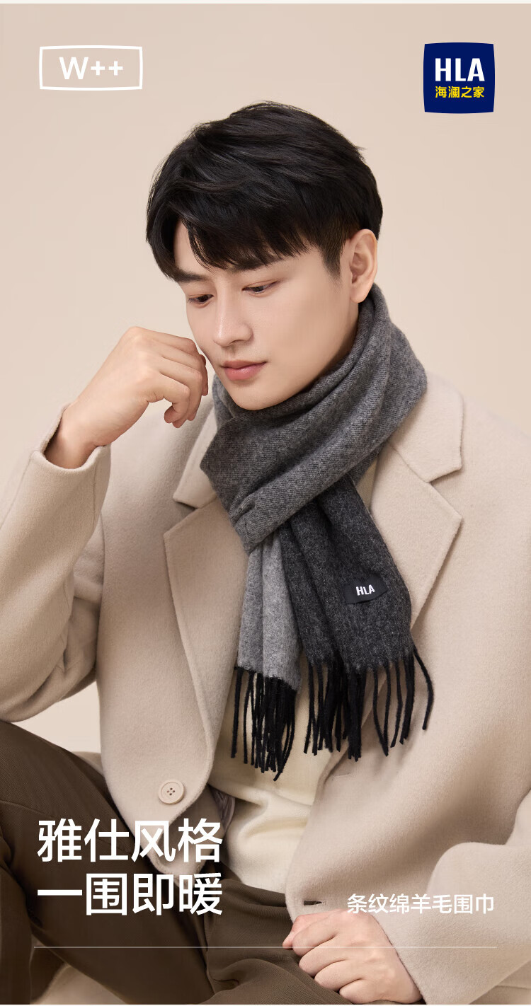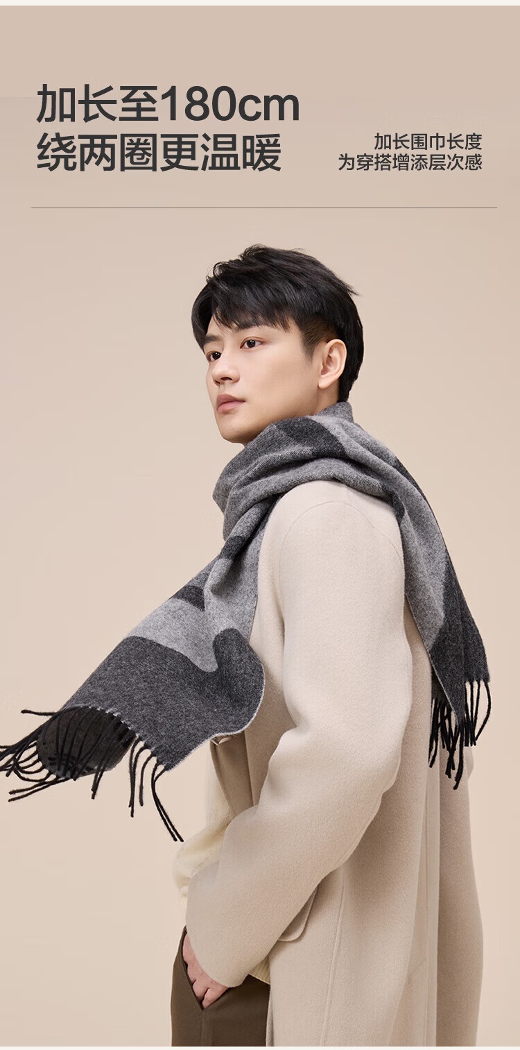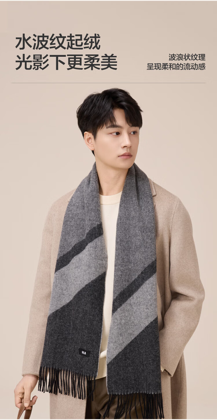 Heilan House Sheep Wool Winter Warm, Windproof and Cold Scarf for Men New Autumn Fashion Scarf for Boyfriend Gift Box, Sky Gray