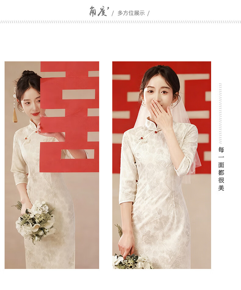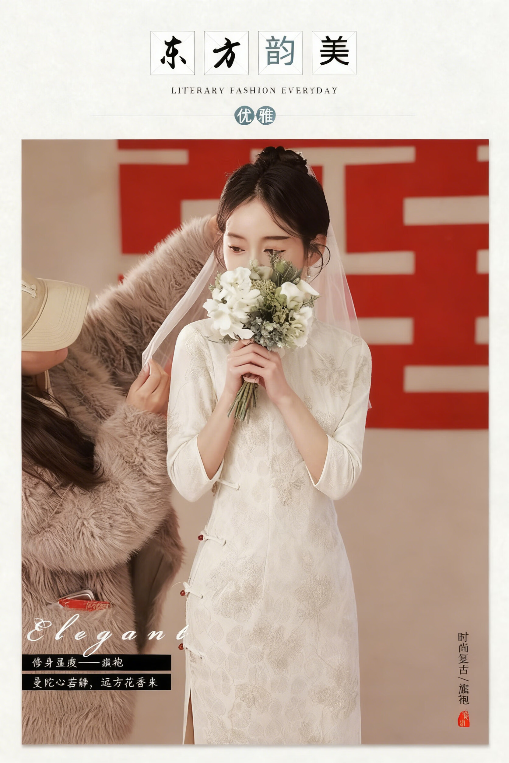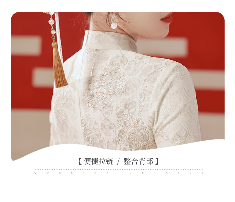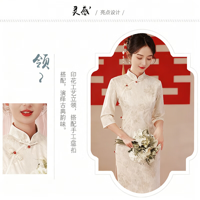 Bangboshi New Year New Chinese Style Improved Cheongsam 2025 Autumn and Winter Little People Everyday Elegant Engagement Mid-Long Sleeve New Year Gift Beige Improved Cheongsam Mid-Length L Suitable (85-100)