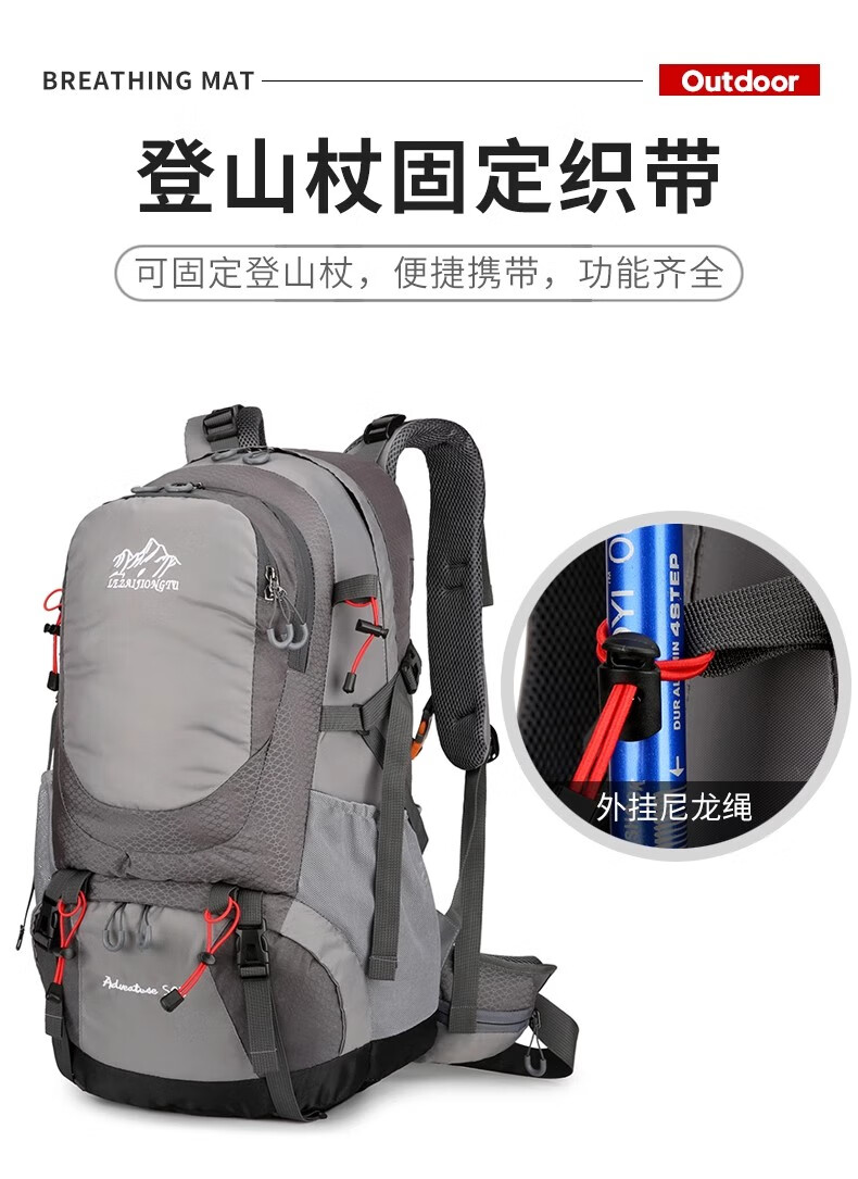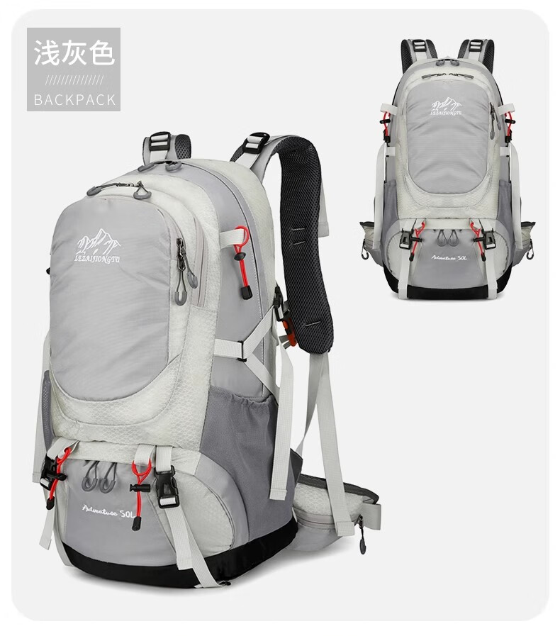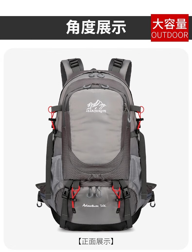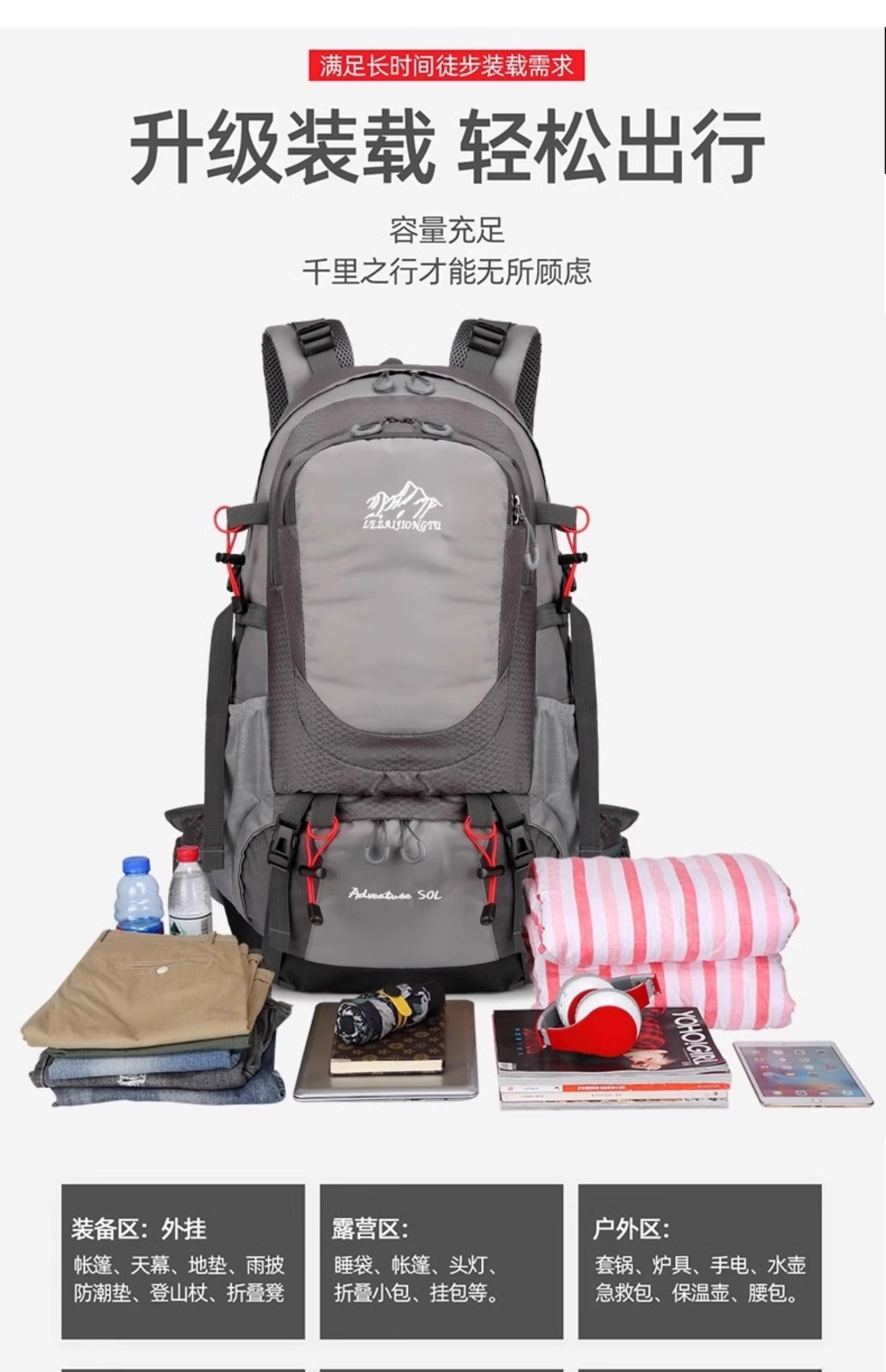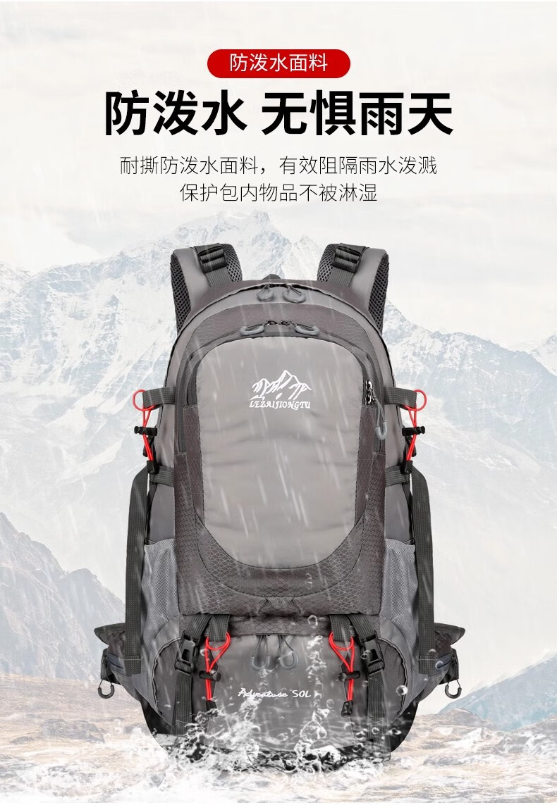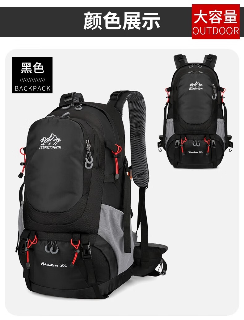 German outdoor mountaineering bag for boys and girls, lightweight, large-capacity, water-repellent hiking, camping and mountaineering backpack, black waterproof and wear-resistant, free rain cover 50L