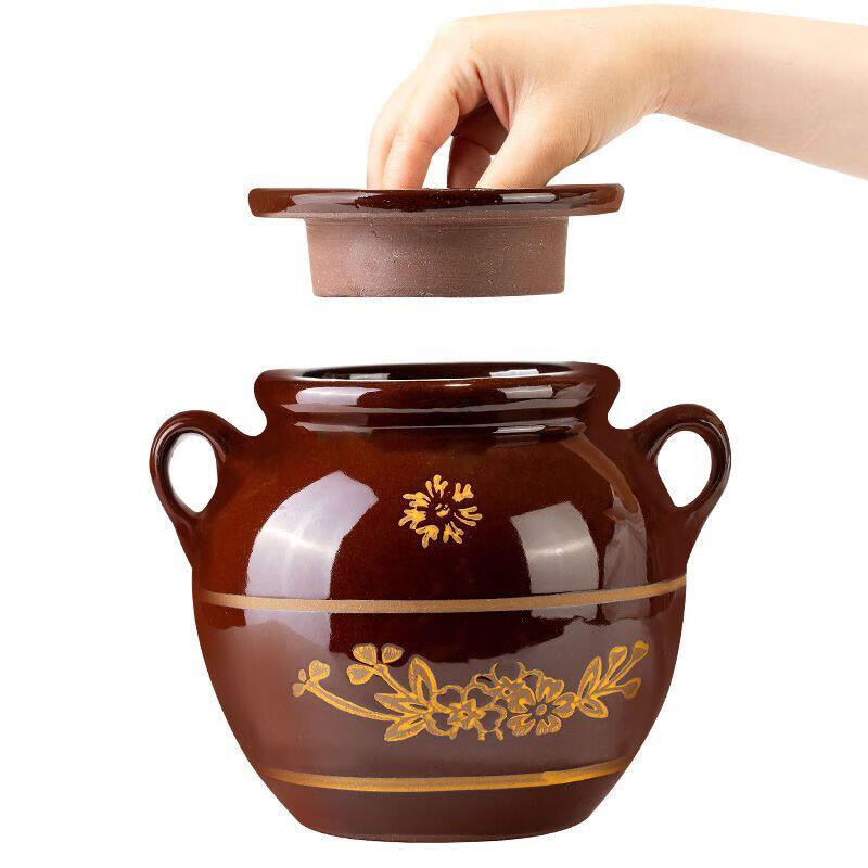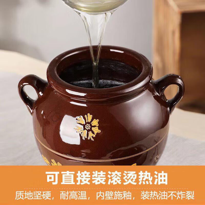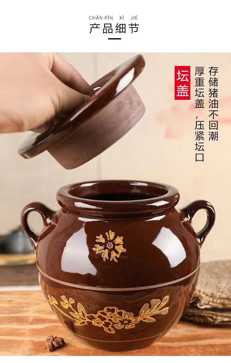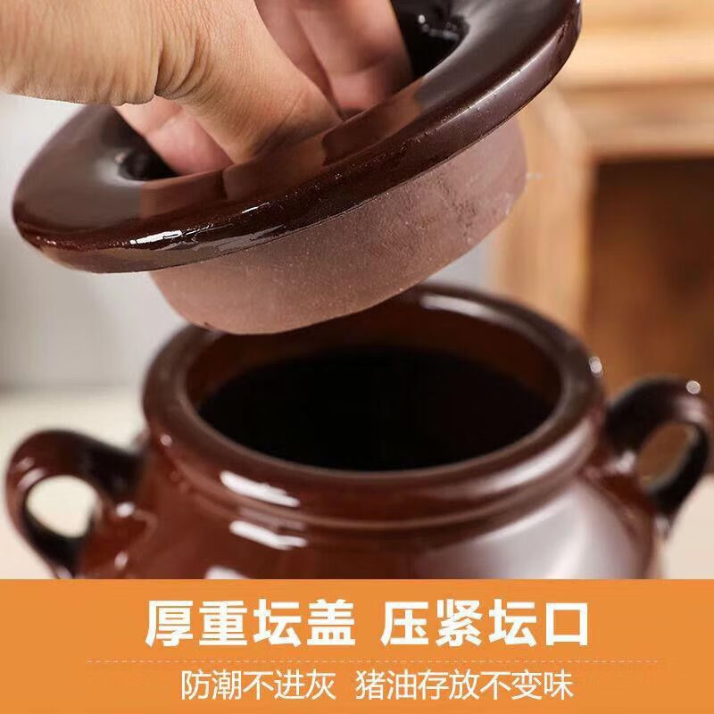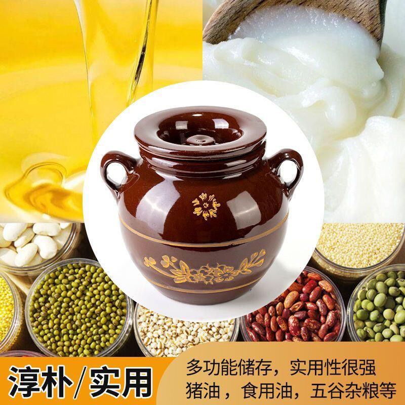 MZXM Jingdezhen ceramic lard jar oil jar kitchen household clay pottery with lid oil jar storage container old-fashioned 4Jin Jin equal to 0.5 kg water capacity oil jar