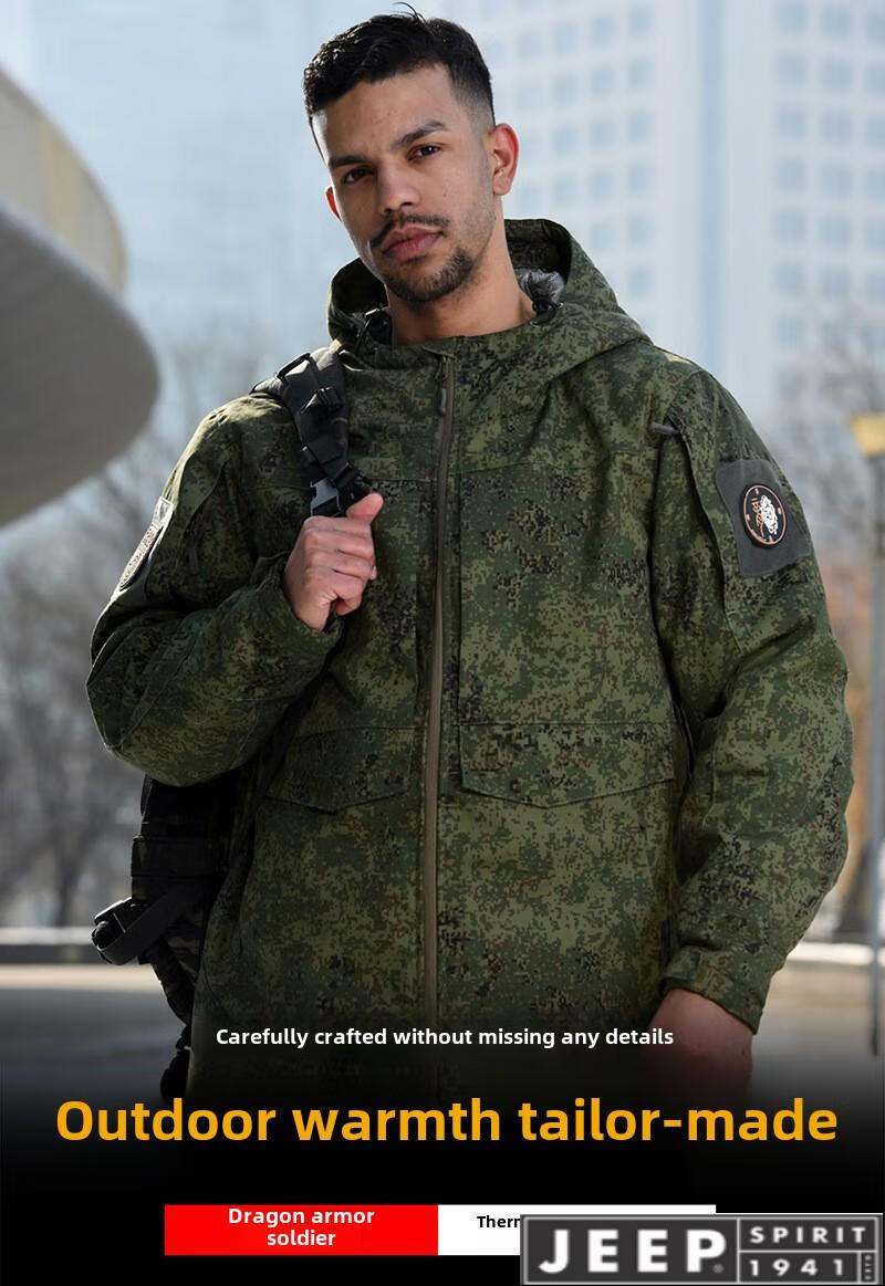 JEEP camouflage military coat cotton coat men's Russian cold-proof clothing winter three-proof thickened coat heat reflective warm cotton clothing CP camouflage waterproof temperature lock heat storage cold protection S 100-140Jin Jin equals 0.5 kg