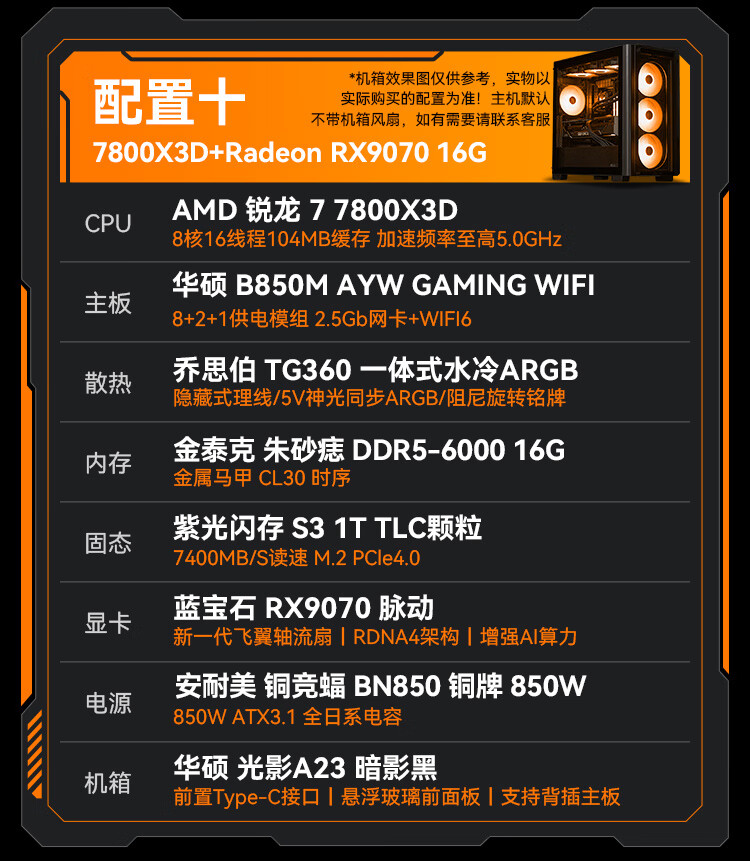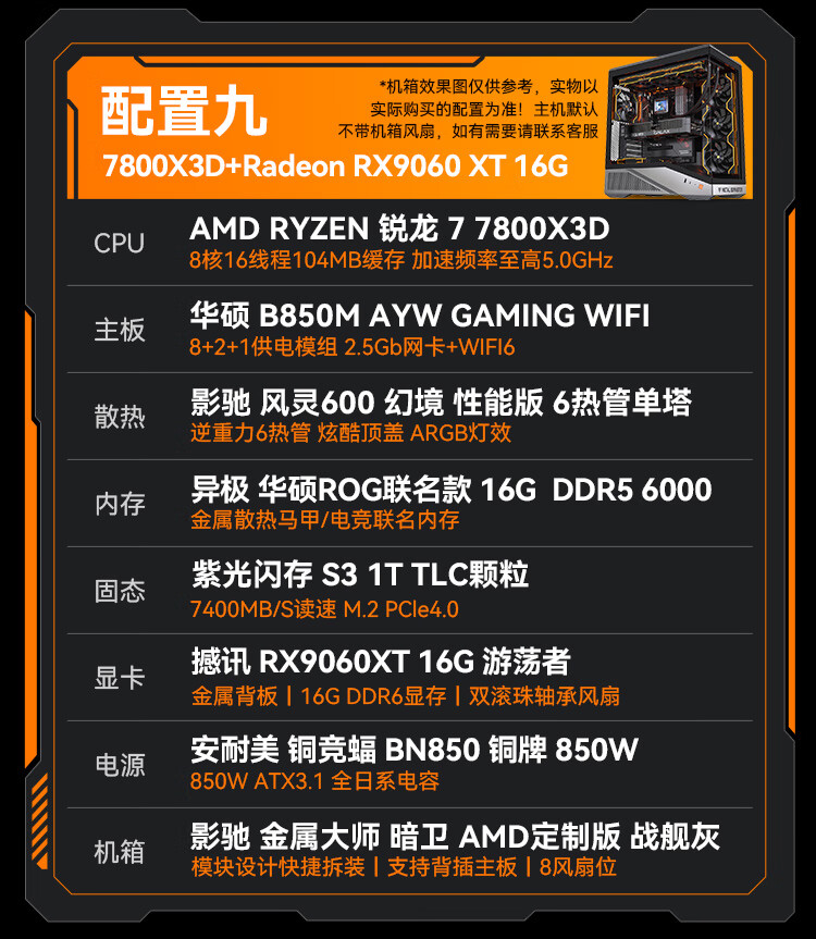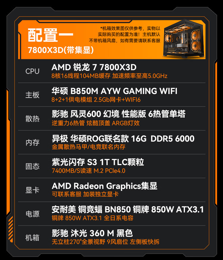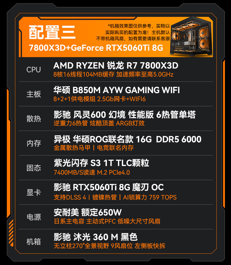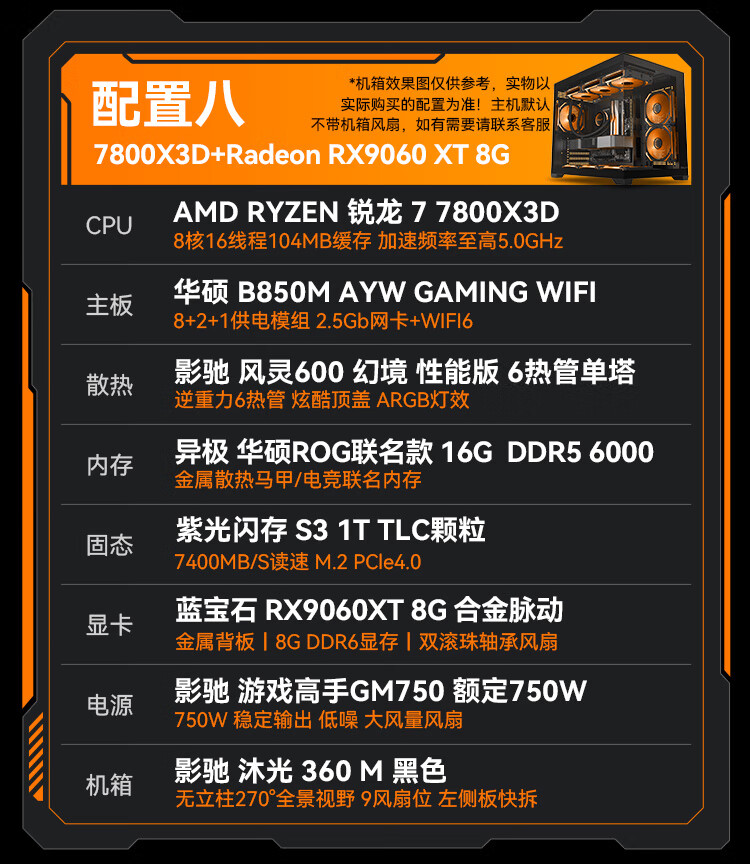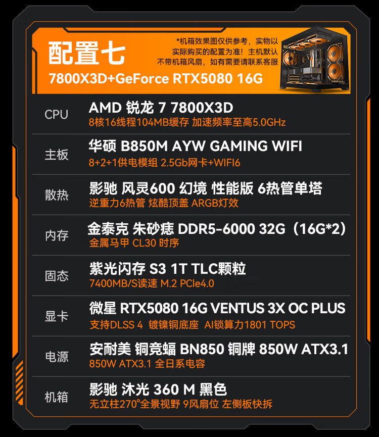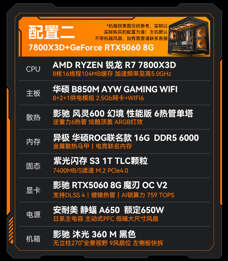 AMD Ryzen R7 7800X3D/RTX5080/RX9070XT High-end e-sports game console Mainstream fever desktop High-performance fully assembled computer Configuration 2 7800X3D/RTX5060 8G
