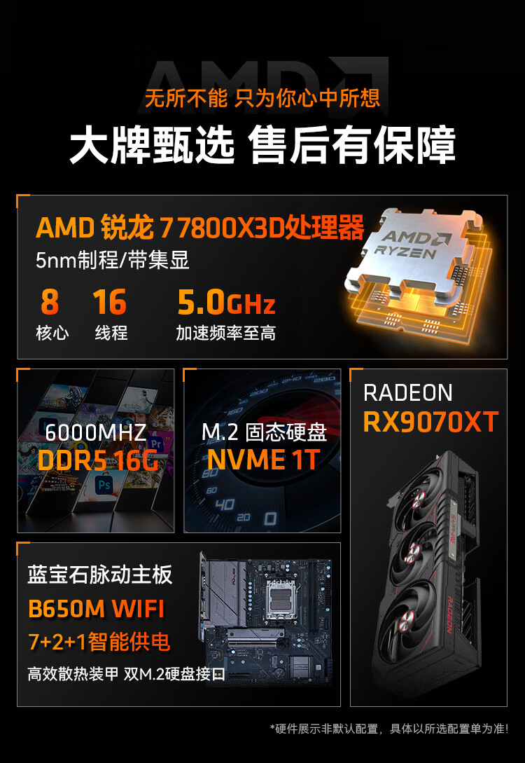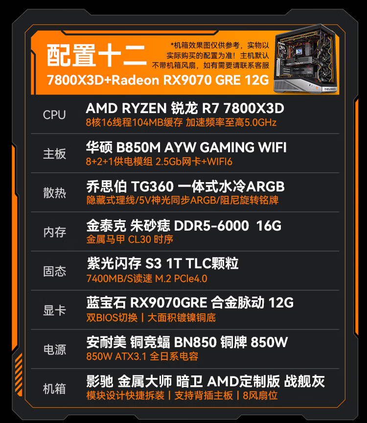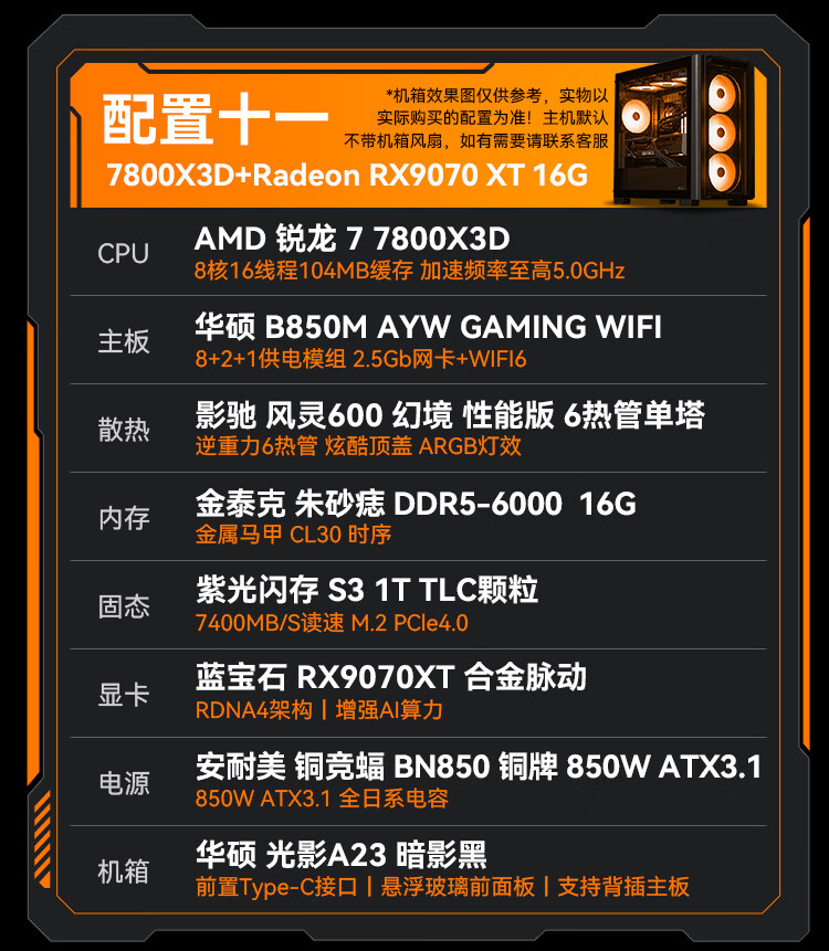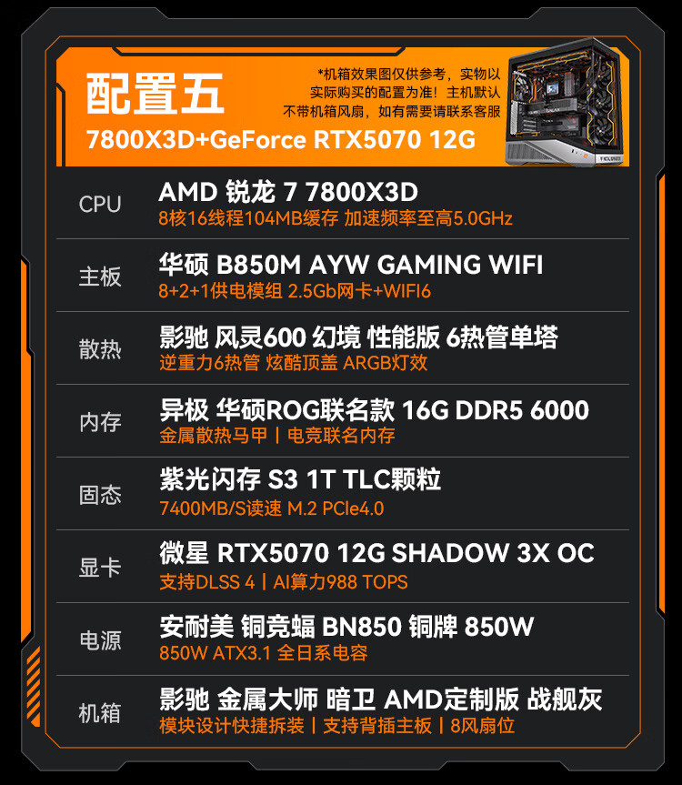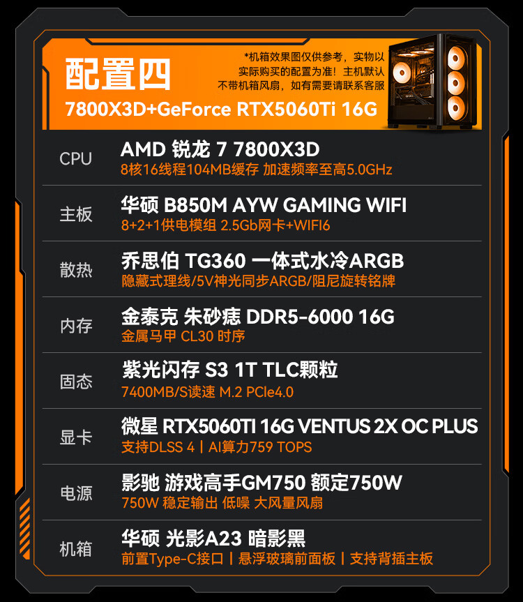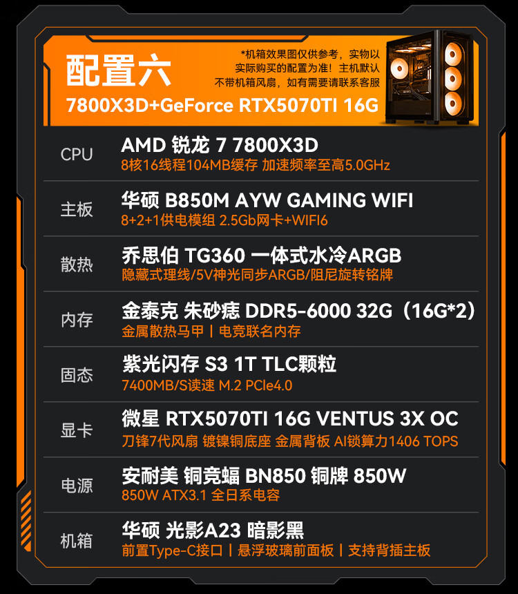 AMD Ryzen R7 7800X3D/RTX5080/RX9070XT High-end e-sports game console Mainstream fever desktop High-performance fully assembled computer Configuration 2 7800X3D/RTX5060 8G