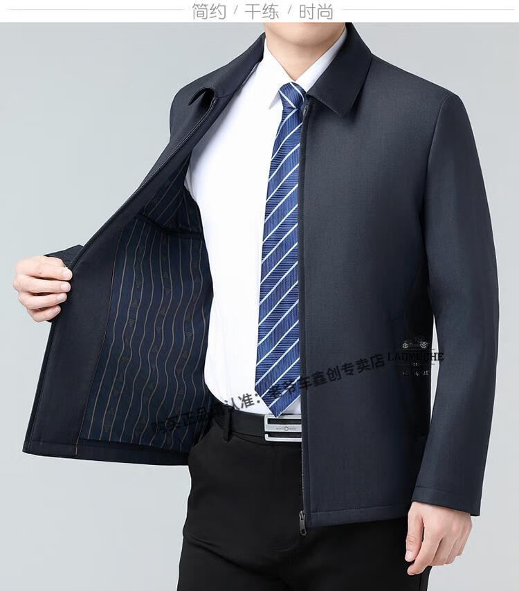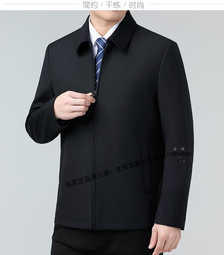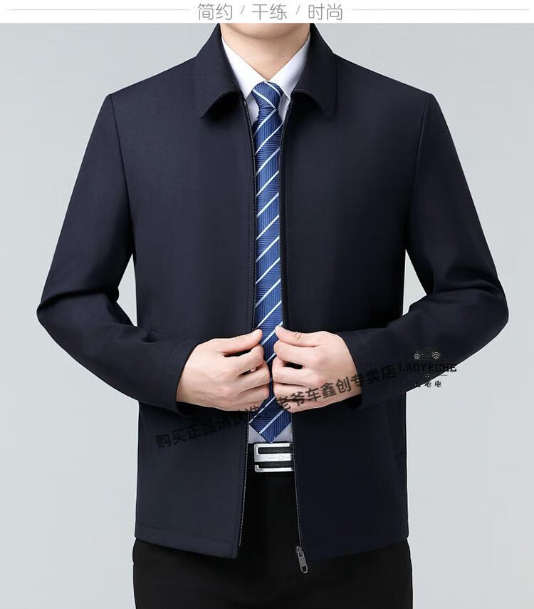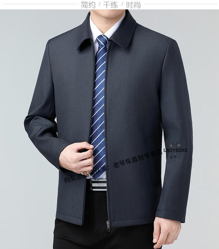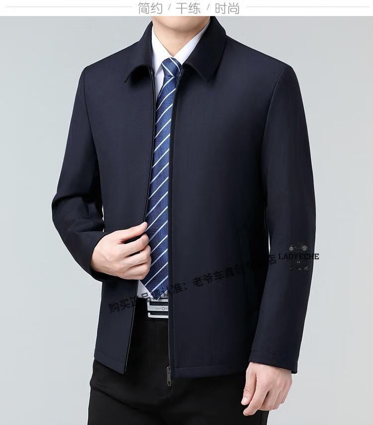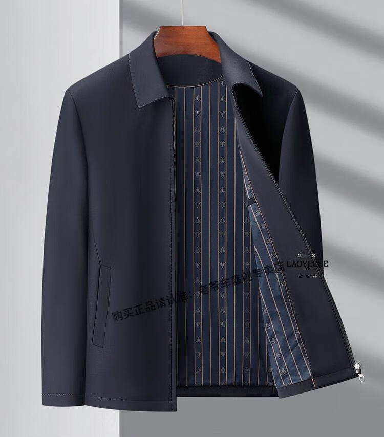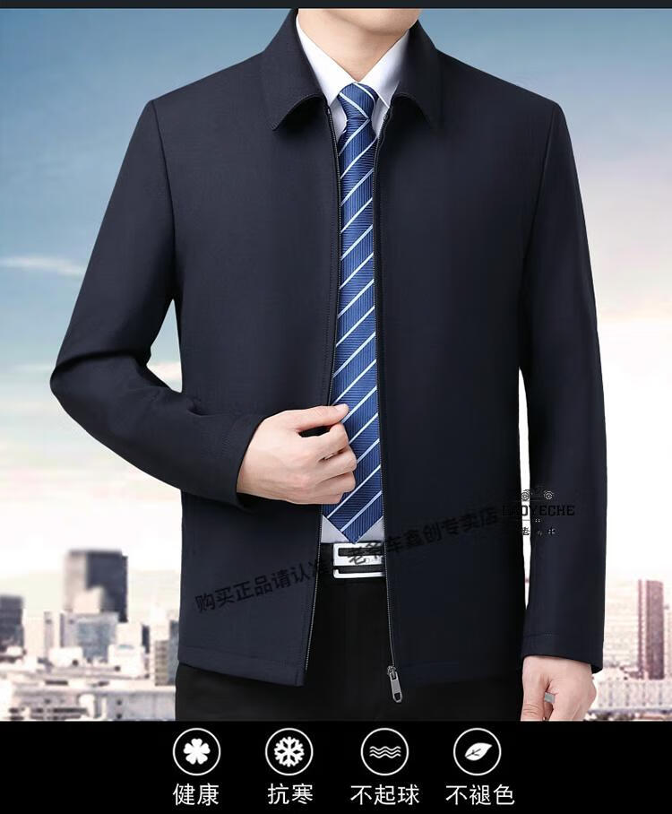 Classic car luxury wool executive jacket thickened jacket for middle-aged and elderly men, non-iron large size tops for men, leaders and cadres, mature dark blue L 175/92A