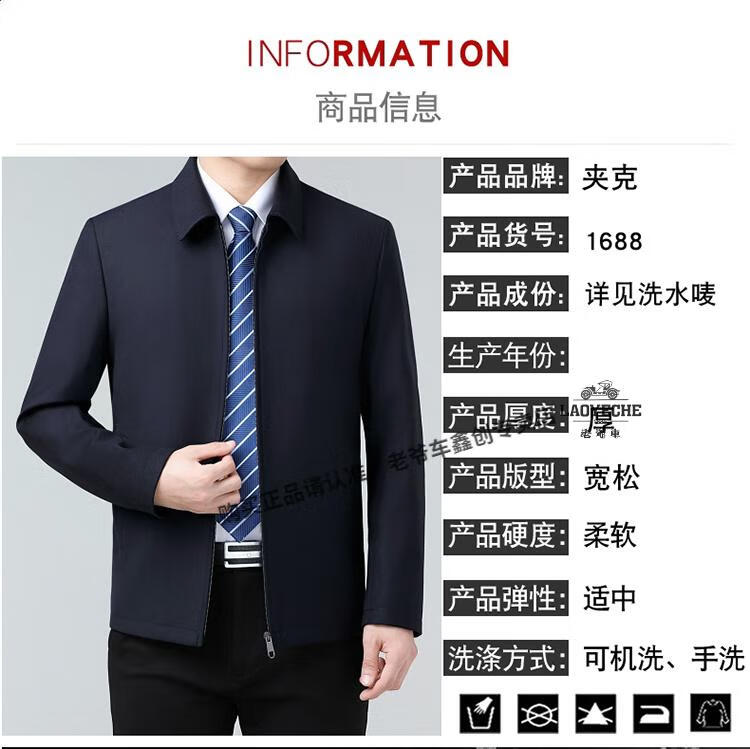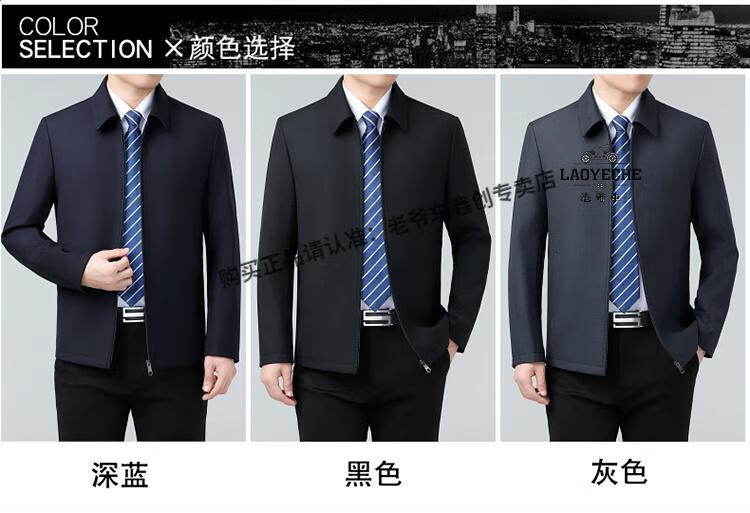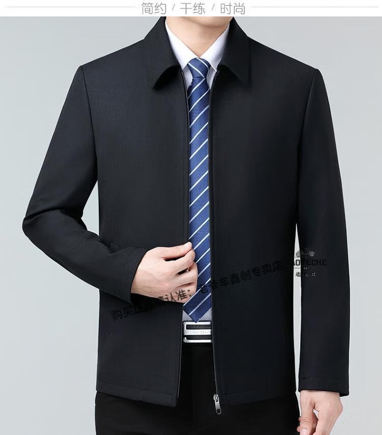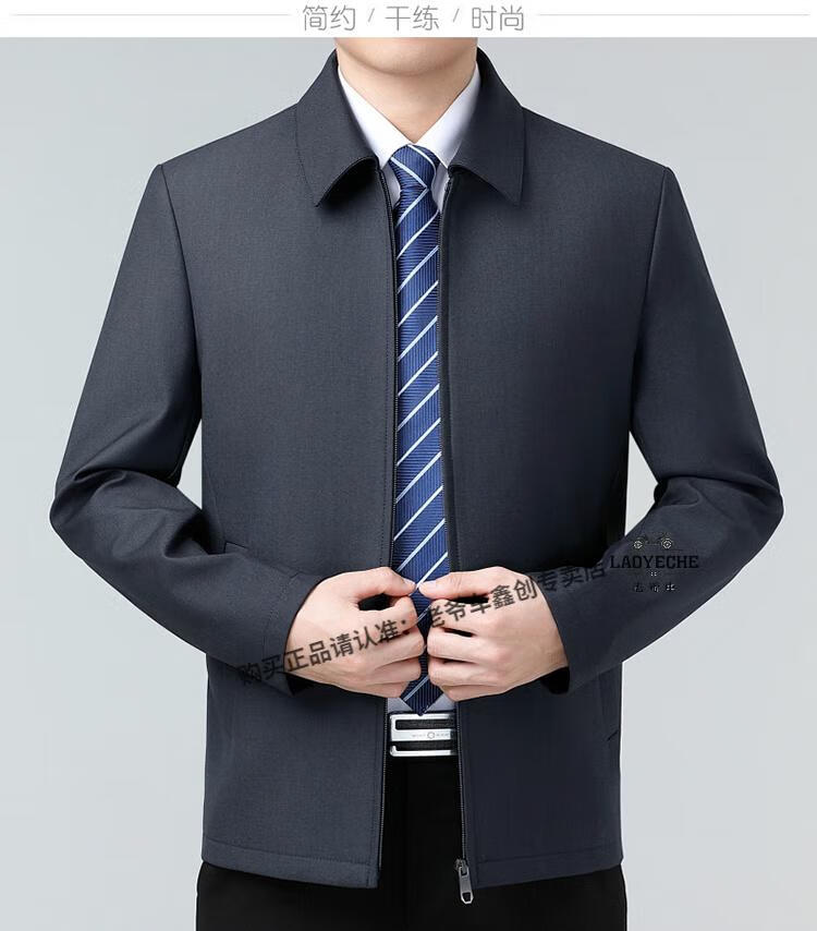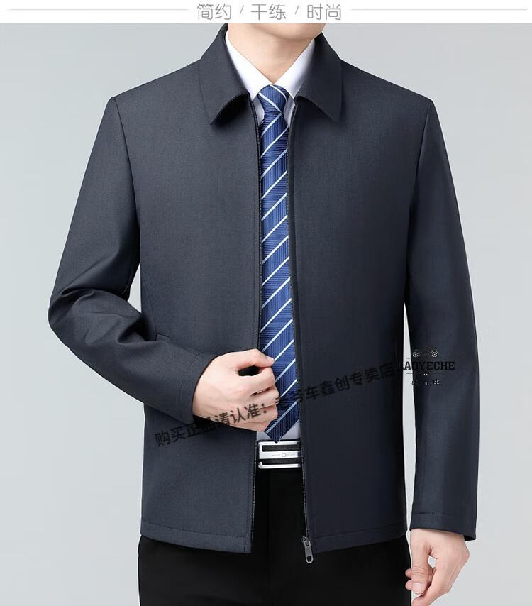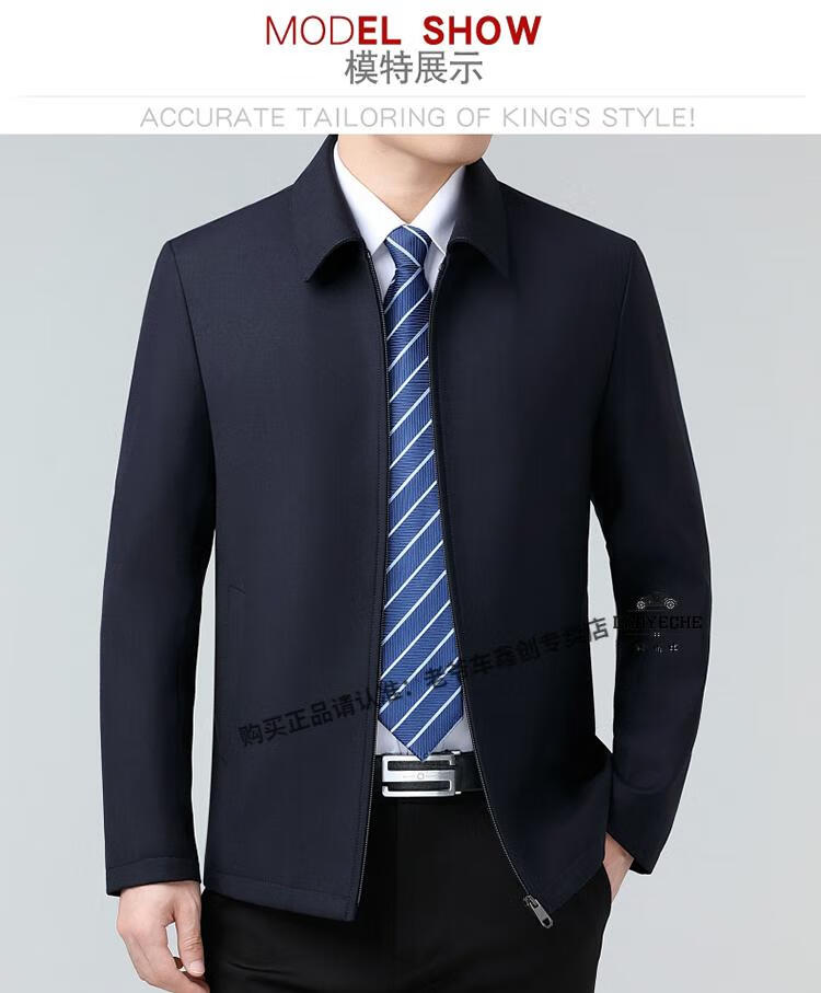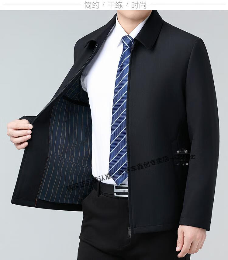 Classic car luxury wool executive jacket thickened jacket for middle-aged and elderly men, non-iron large size tops for men, leaders and cadres, mature dark blue L 175/92A