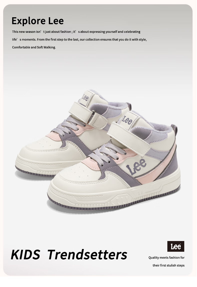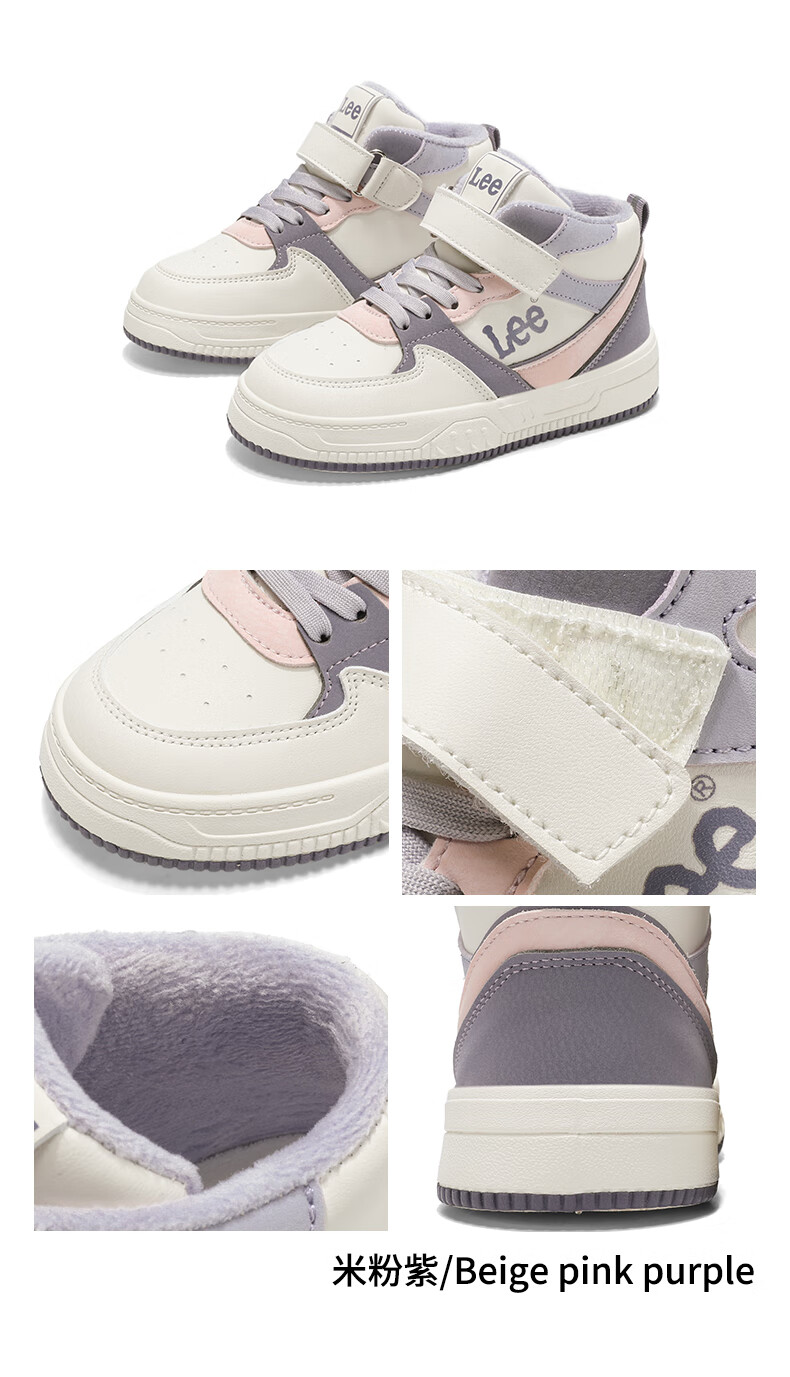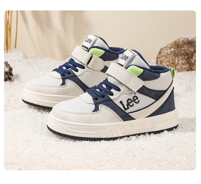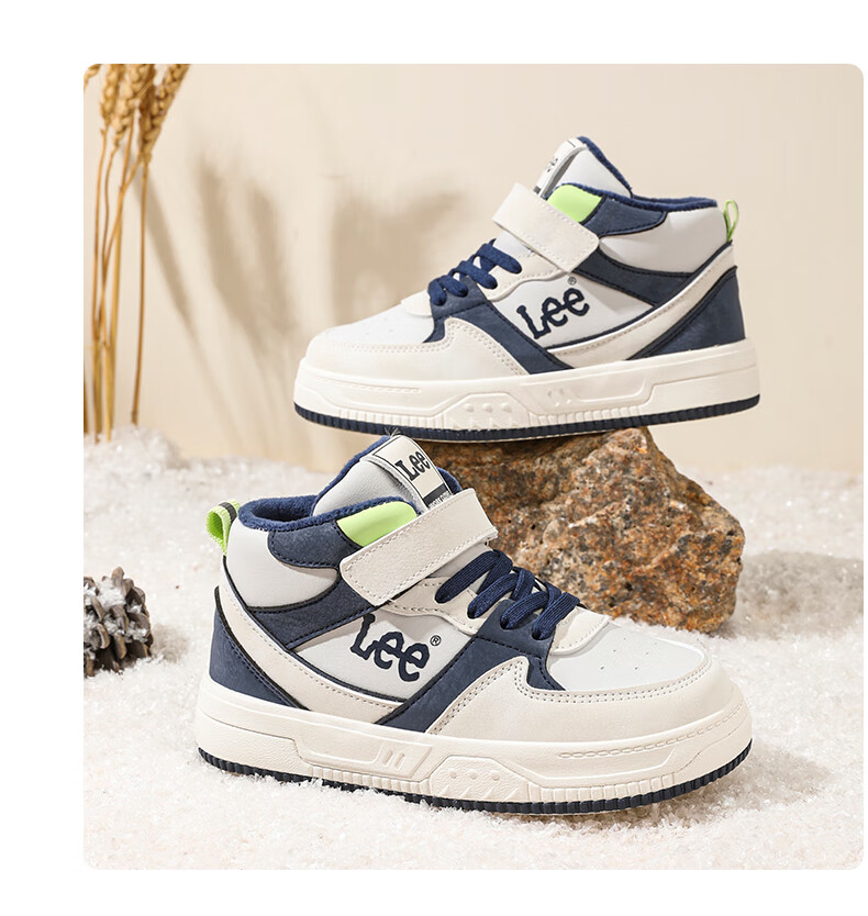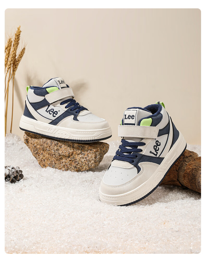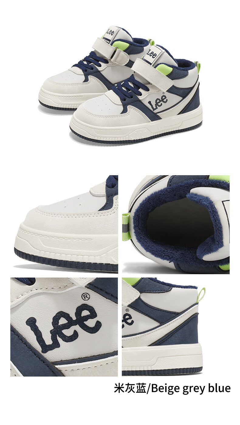 LEE KIDS children's shoes winter new children's velvet warm casual shoes for girls versatile high-top sneakers cotton shoes for boys and girls beige gray blue 33 recommended foot length 200mm