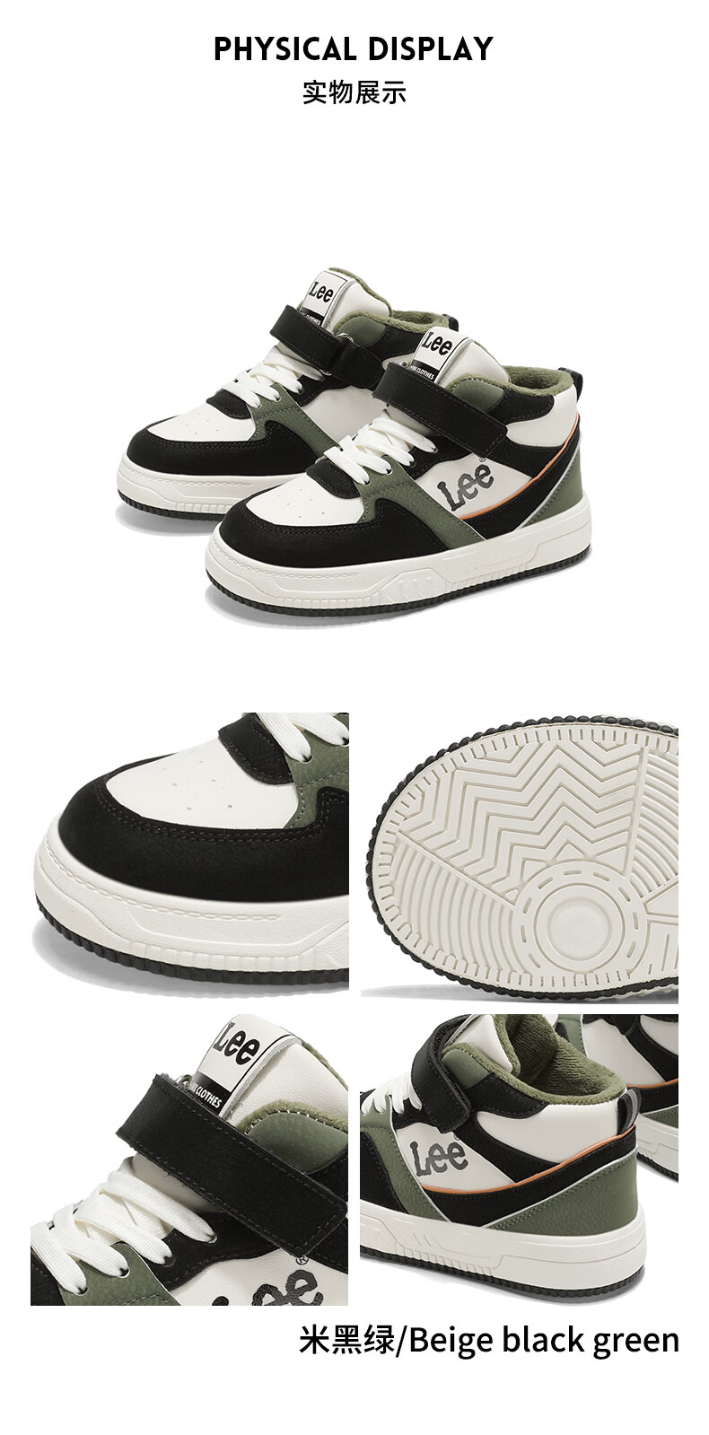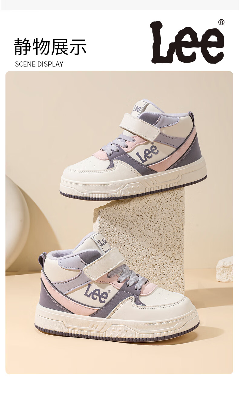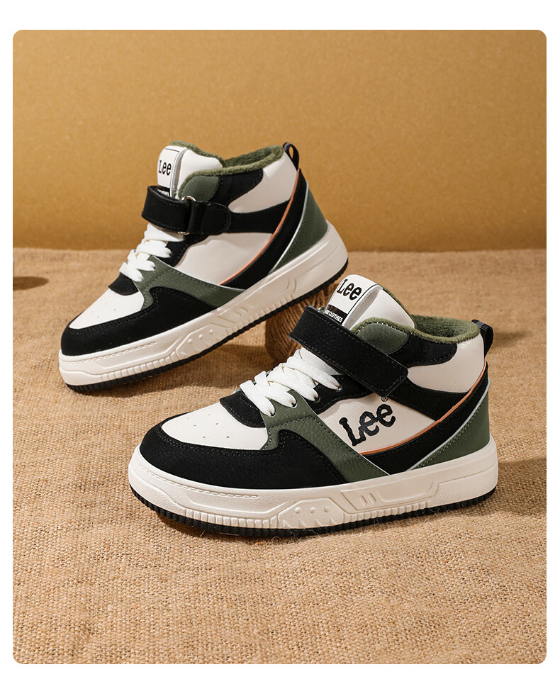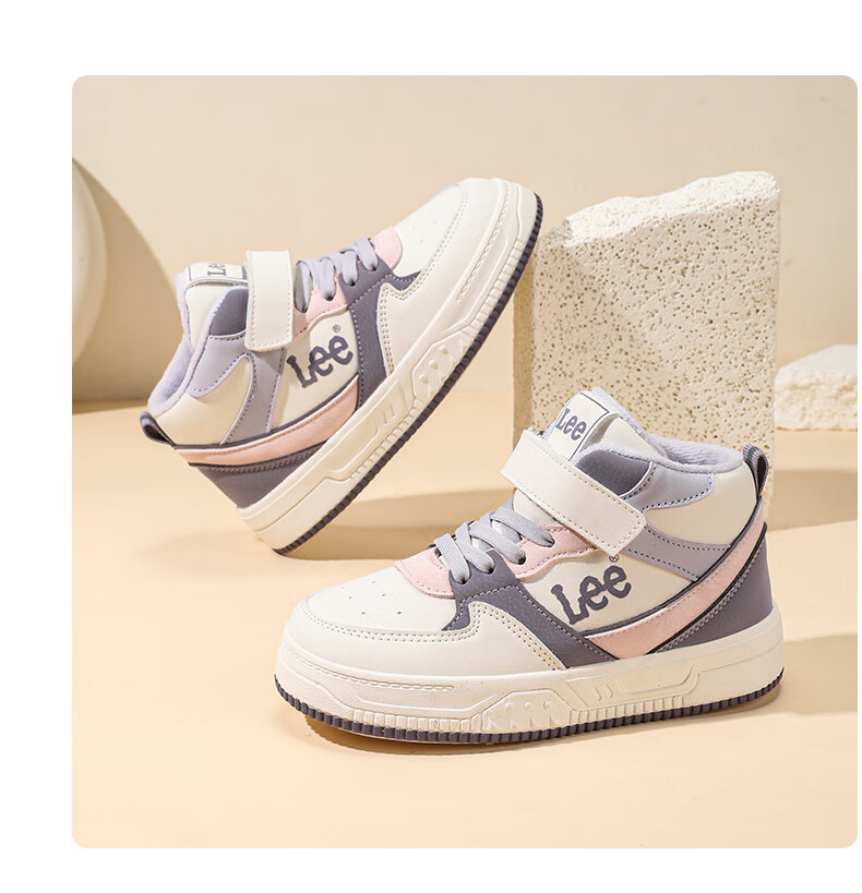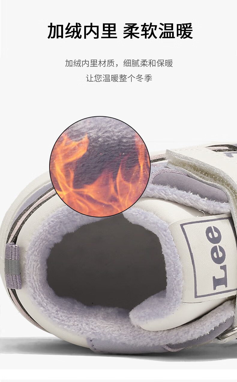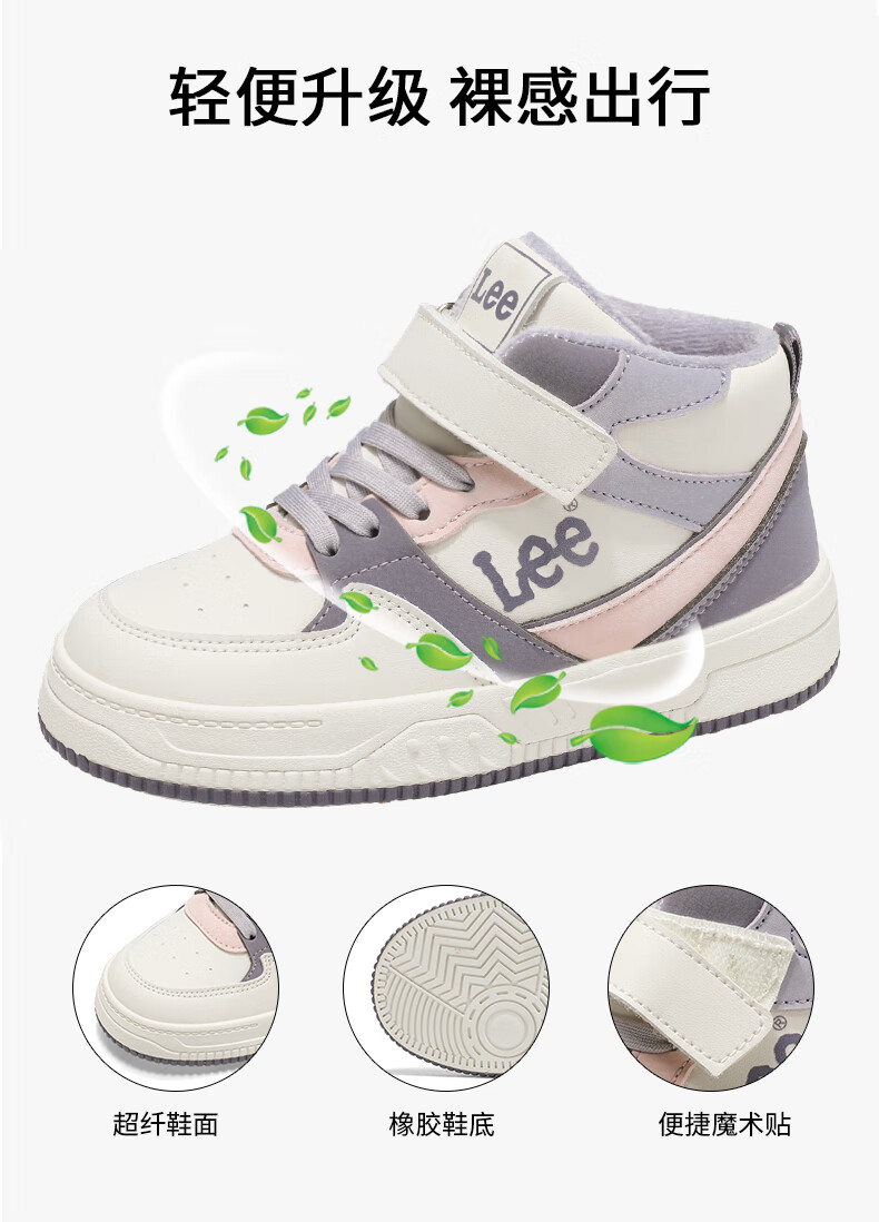 LEE KIDS children's shoes winter new children's velvet warm casual shoes for girls versatile high-top sneakers cotton shoes for boys and girls beige gray blue 33 recommended foot length 200mm