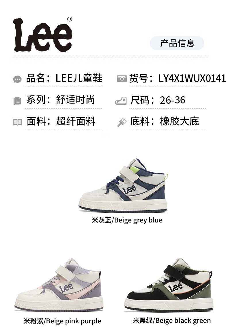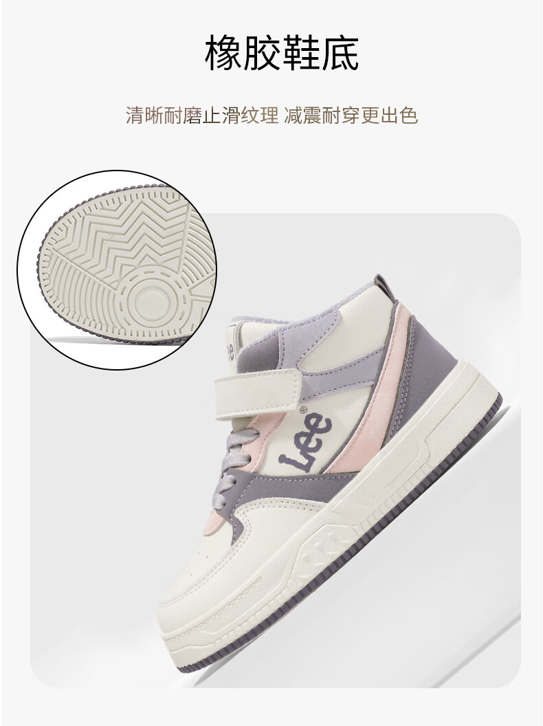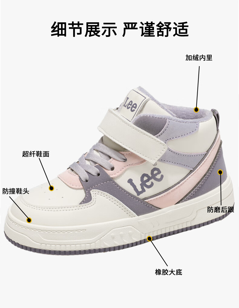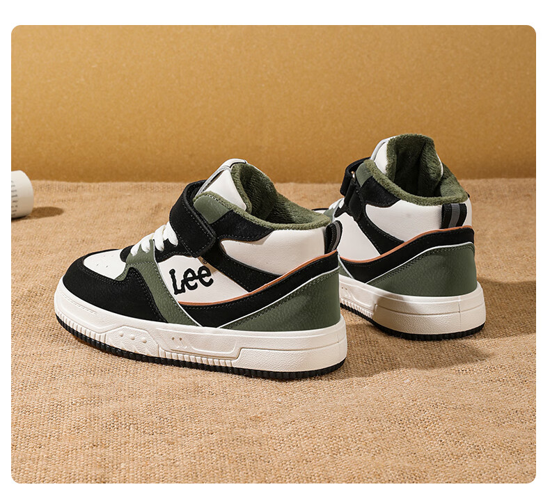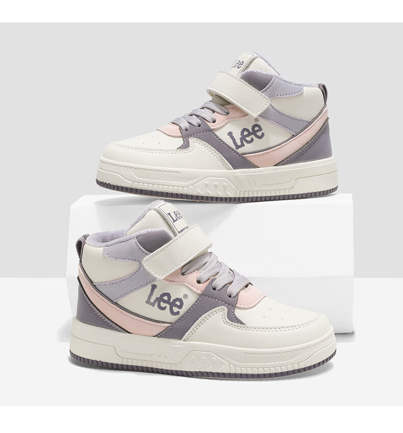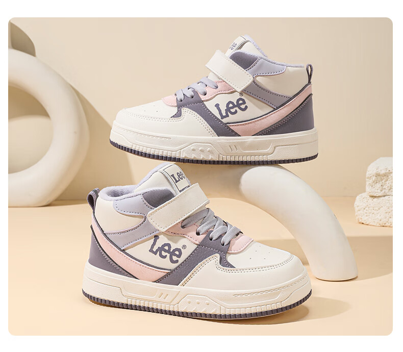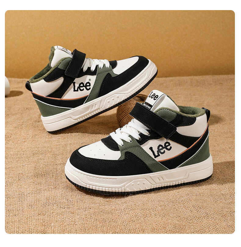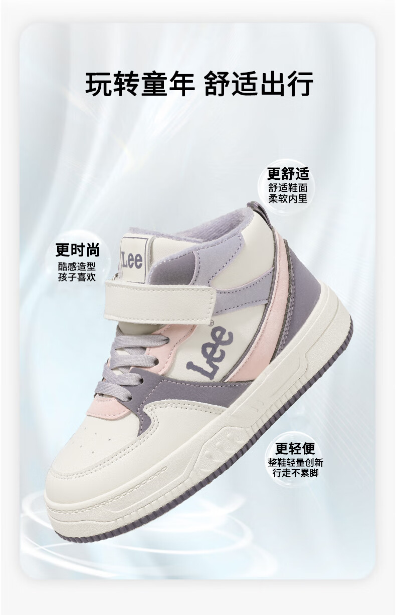 LEE KIDS children's shoes winter new children's velvet warm casual shoes for girls versatile high-top sneakers cotton shoes for boys and girls beige gray blue 33 recommended foot length 200mm