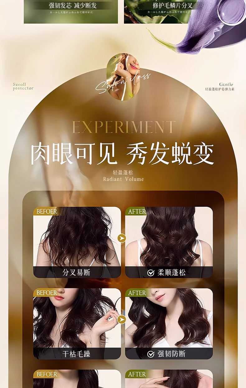 Mystery Collection Elastic Curly Hair Moisturizing Protector Anti-frizz Perm Care Fluffy Natural Hair Care Artifact Available for Men and Women Same Style in High-end Salons Curl Protective Elastin 310g