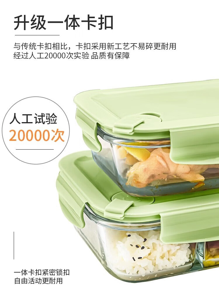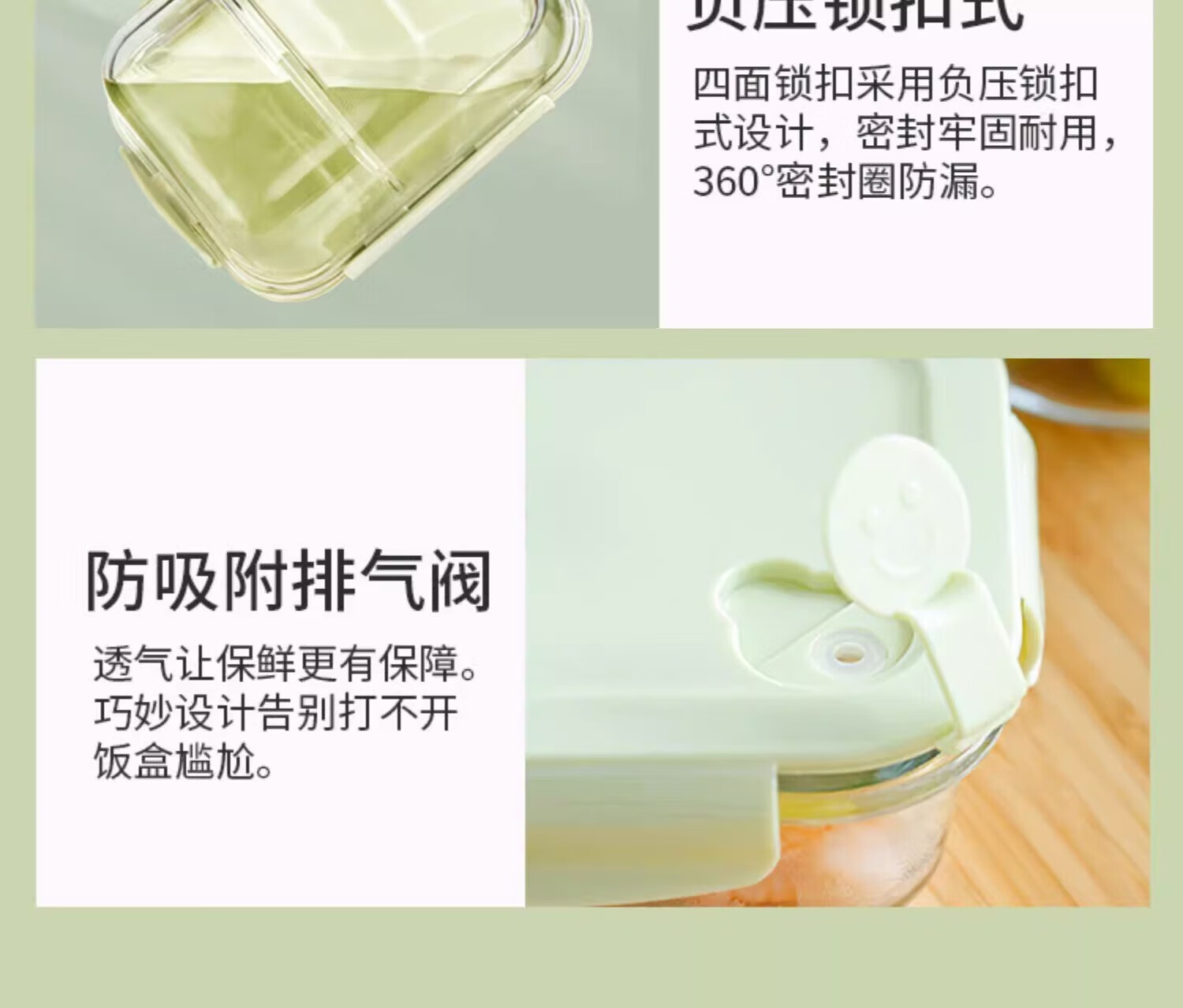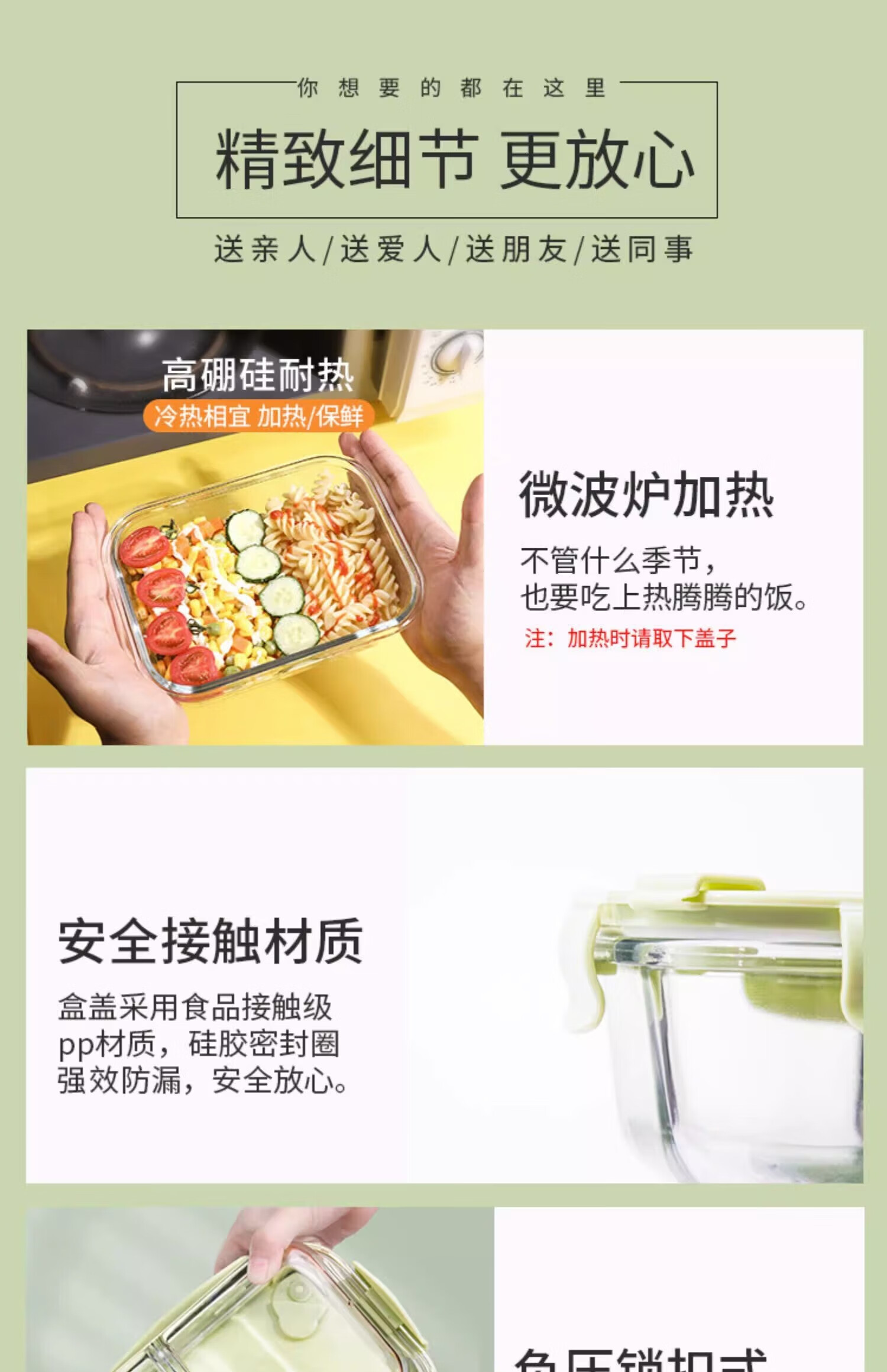 Supor glass lunch box, microwaveable, special bowl with lid, office worker lunch box, separated fruit lunch box, Nordic green round 1030ml