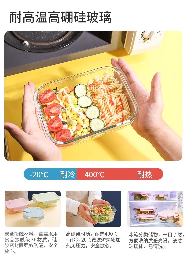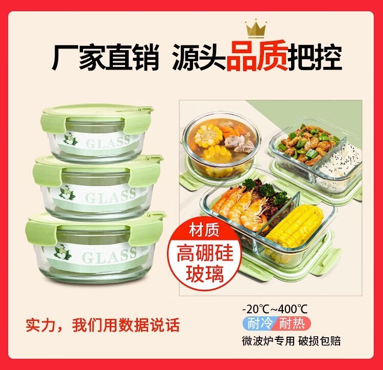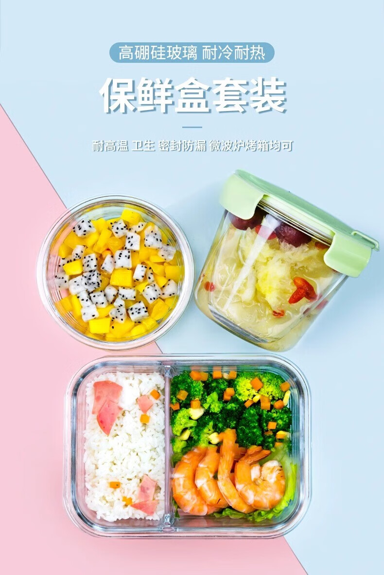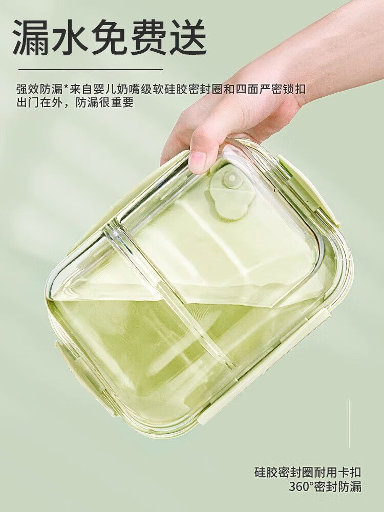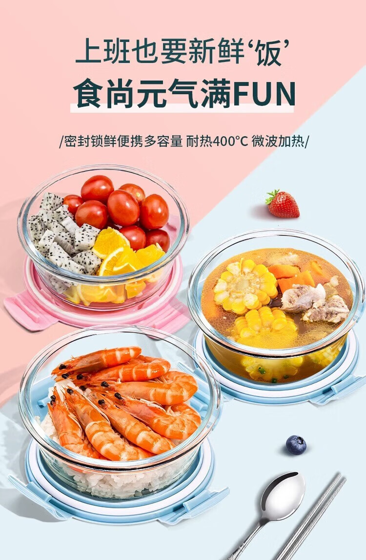 Supor glass lunch box, microwaveable, special bowl with lid, office worker lunch box, separated fruit lunch box, Nordic green round 1030ml