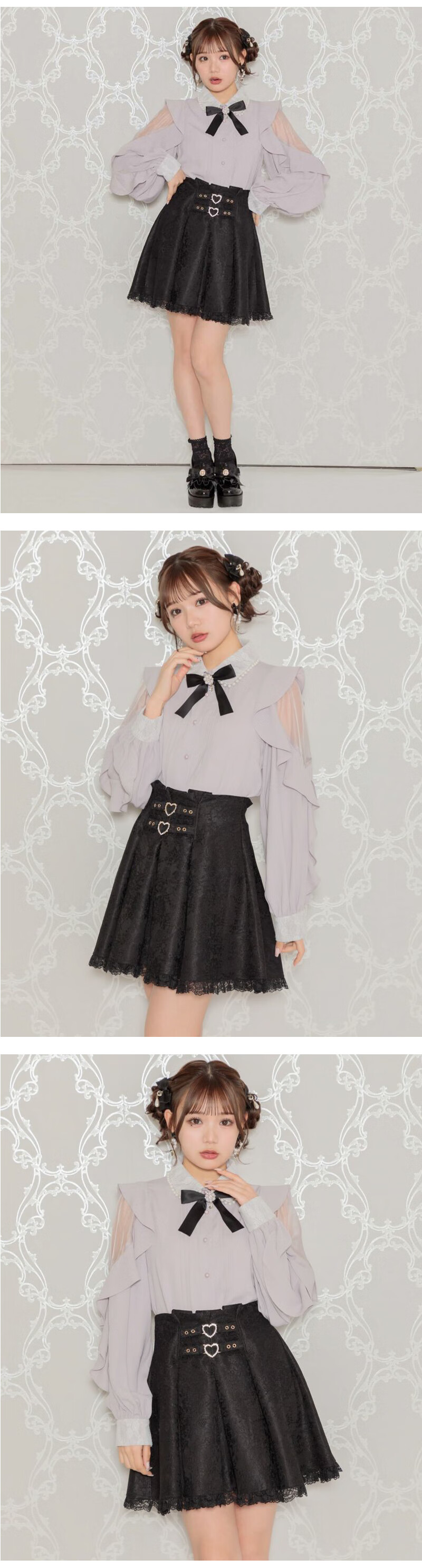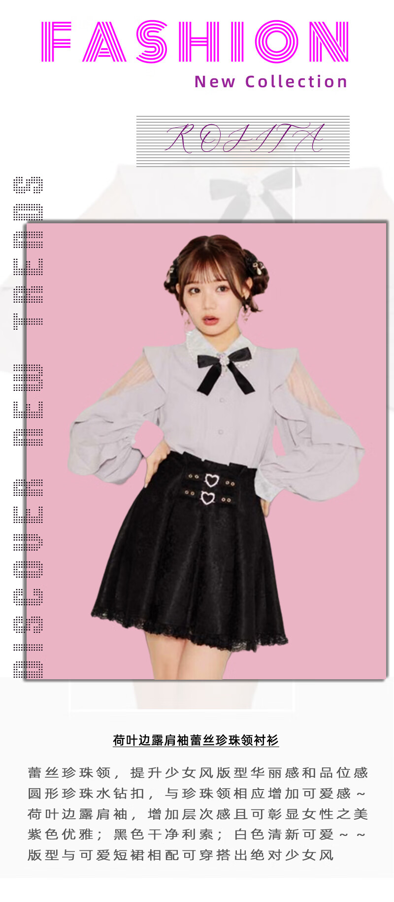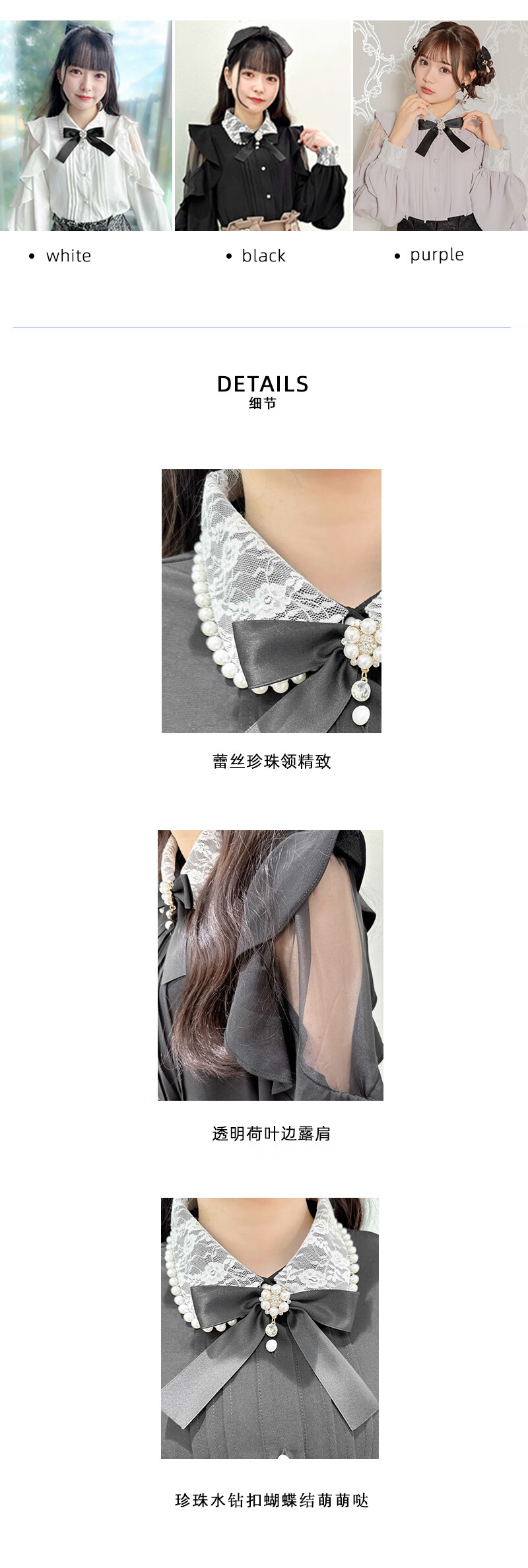 ROJITA ruffled off-shoulder sleeves lace pearl collar shirt (1311570) white