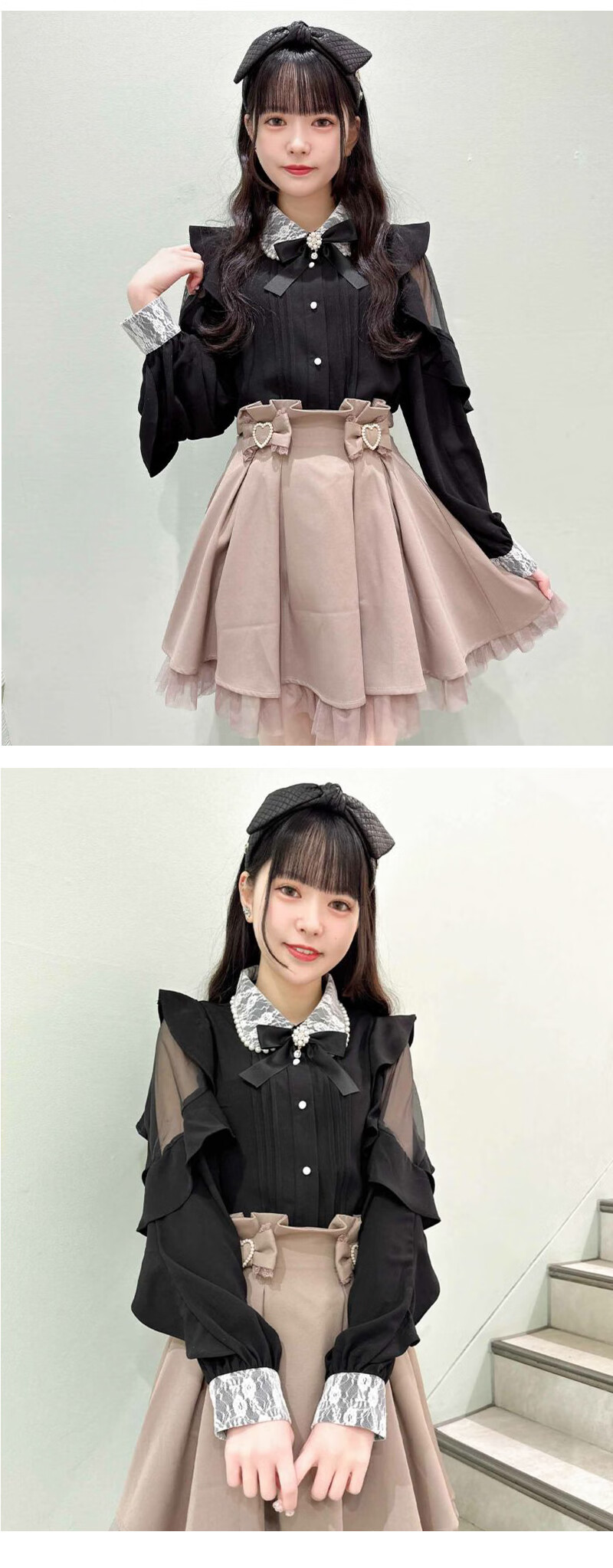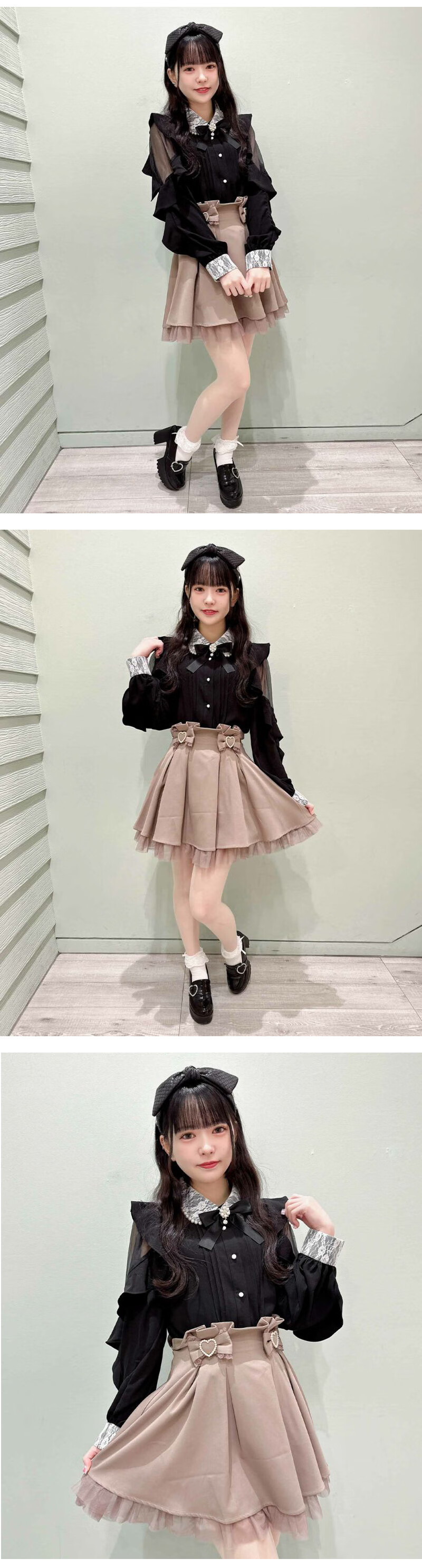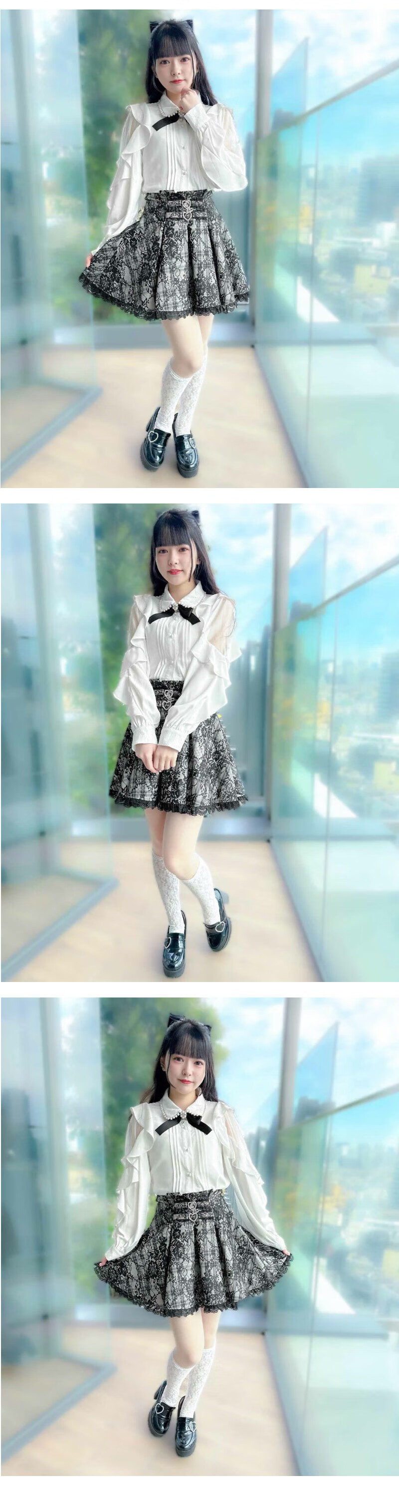 ROJITA ruffled off-shoulder sleeves lace pearl collar shirt (1311570) white