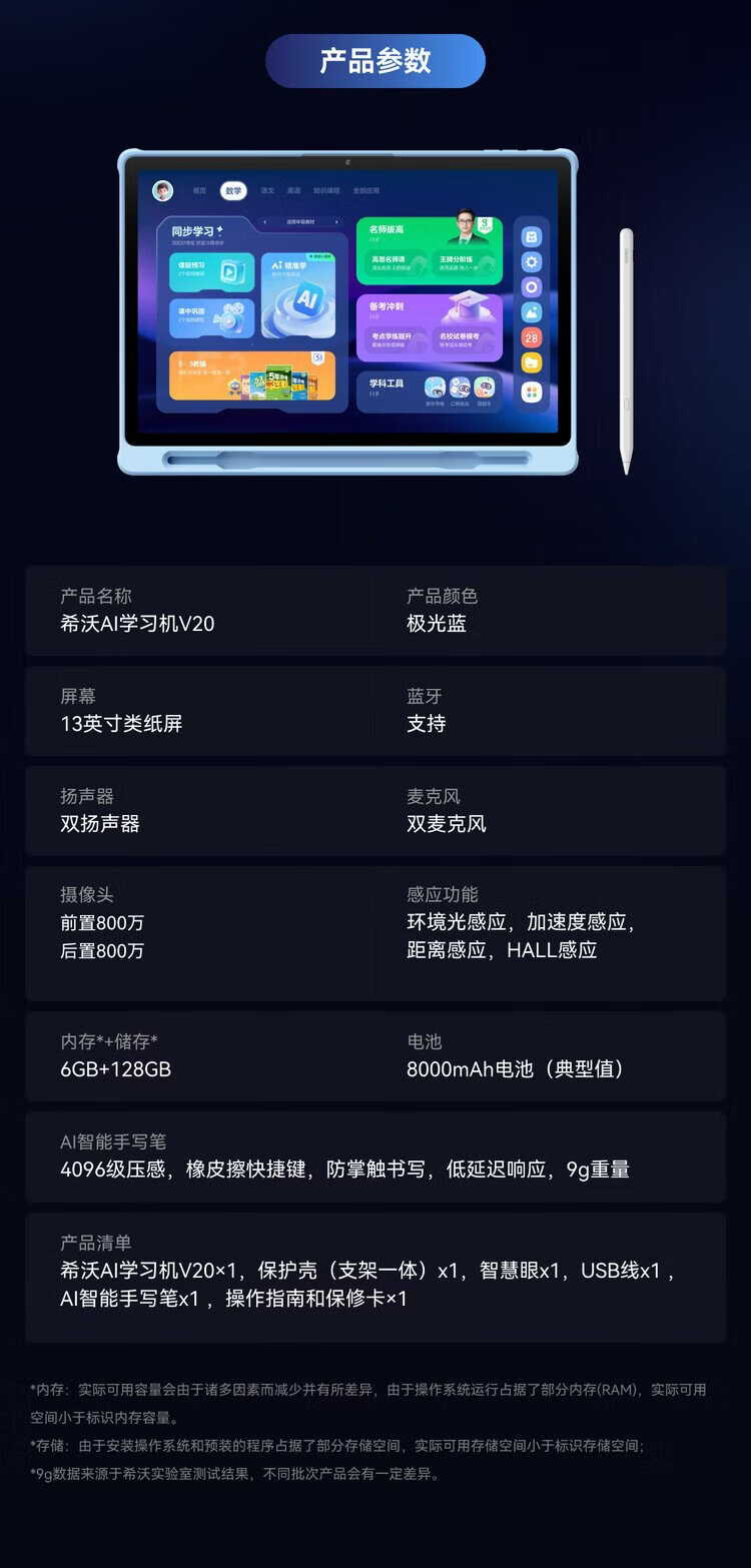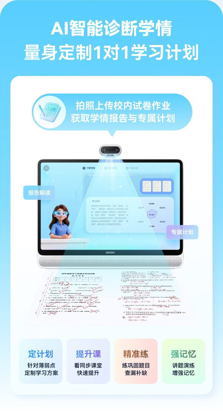 Seewo AI Learning Machine V20 Children's Eye Protection Learning Tablet Intelligent Learning Machine Computer Primary School to High School Learning Machine Early Education Machine Teaching All-in-One Machine New Product V20 6+128G