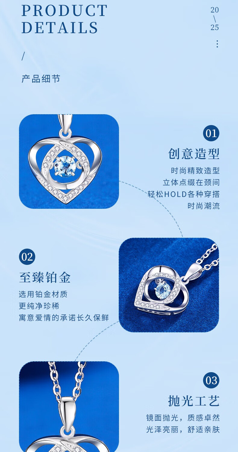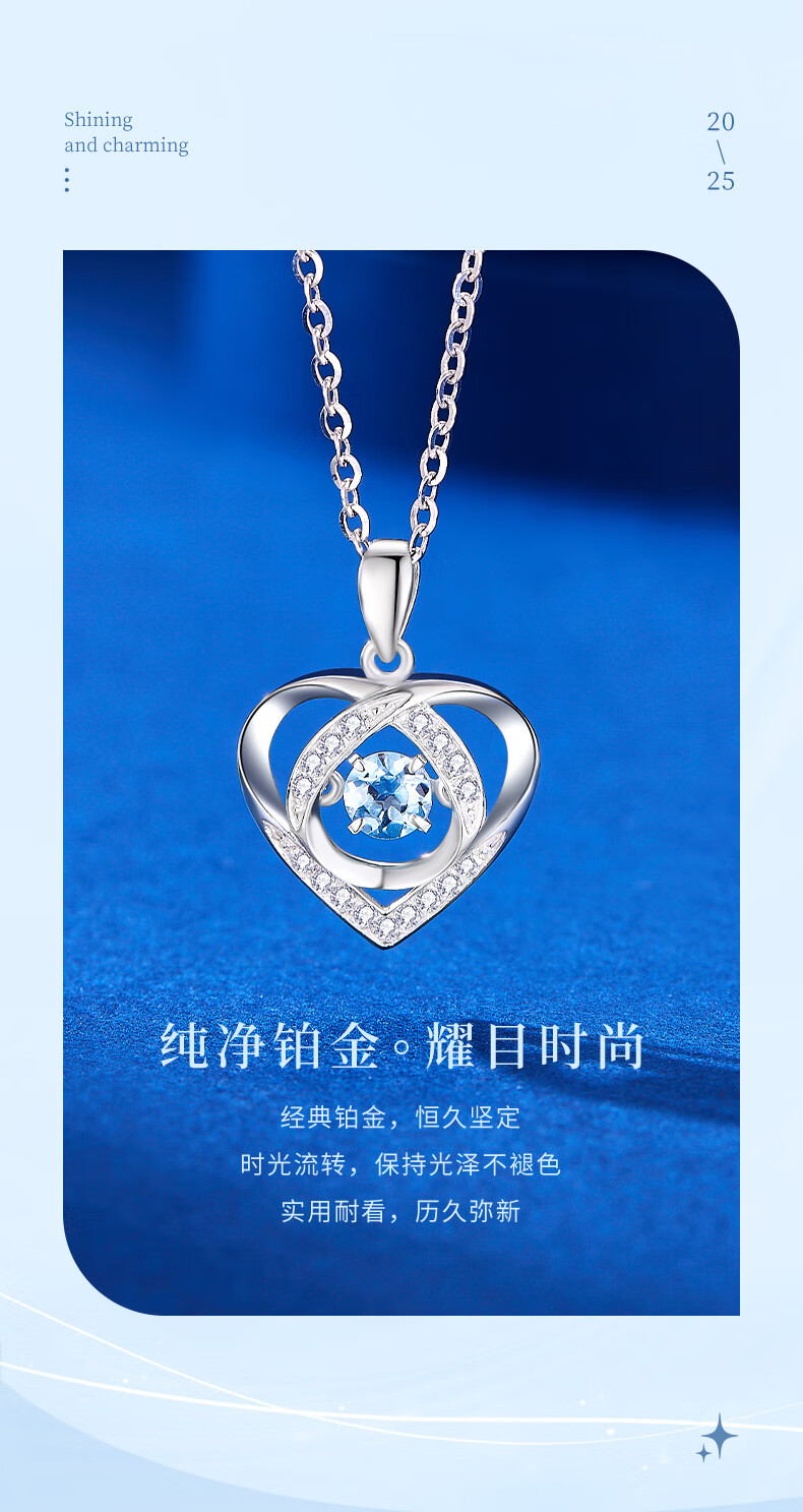 China Gold (CHINA GOLD) PT950 platinum romantic love pendant for women, high-end platinum Valentine's Day birthday gift for girlfriend and wife, platinum romantic love pendant, about 2g, free silver chain + rose gift box
