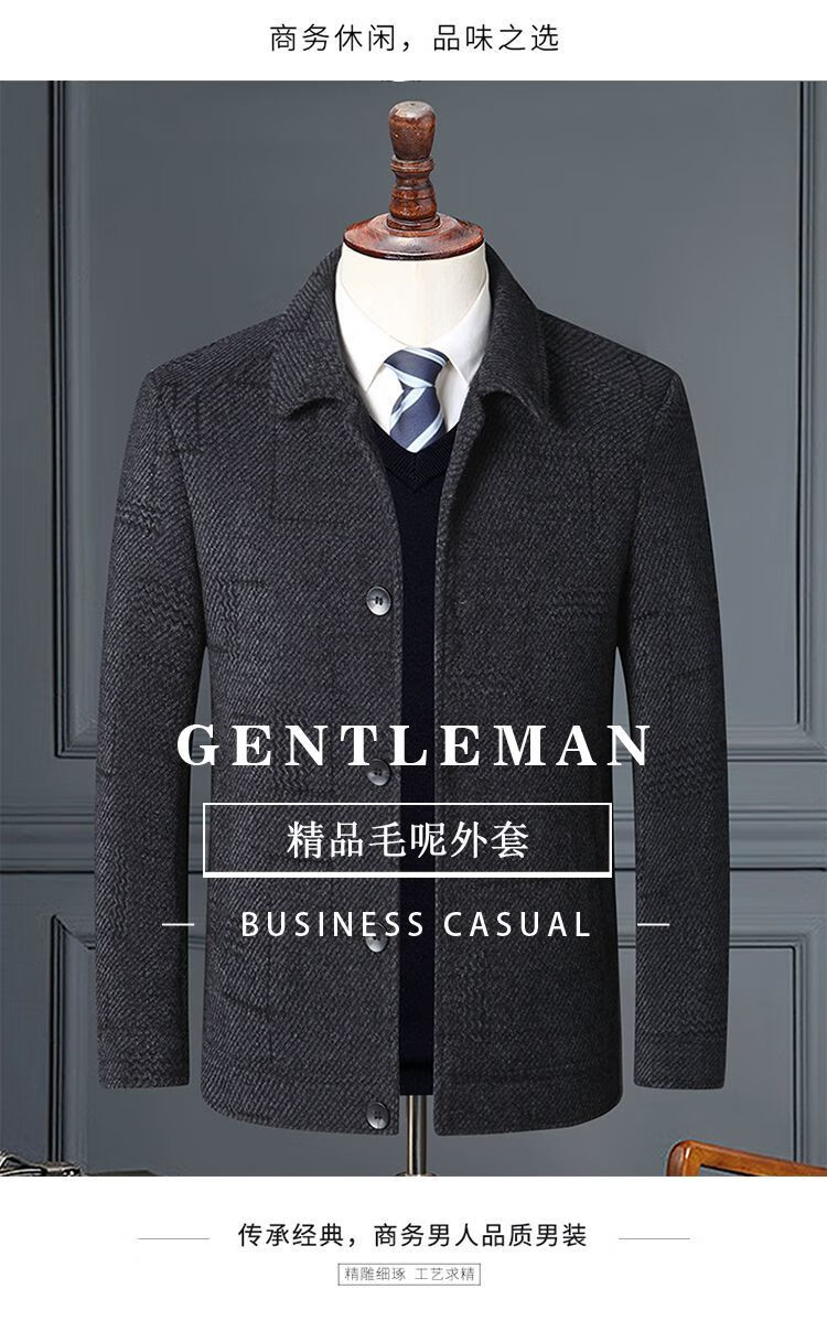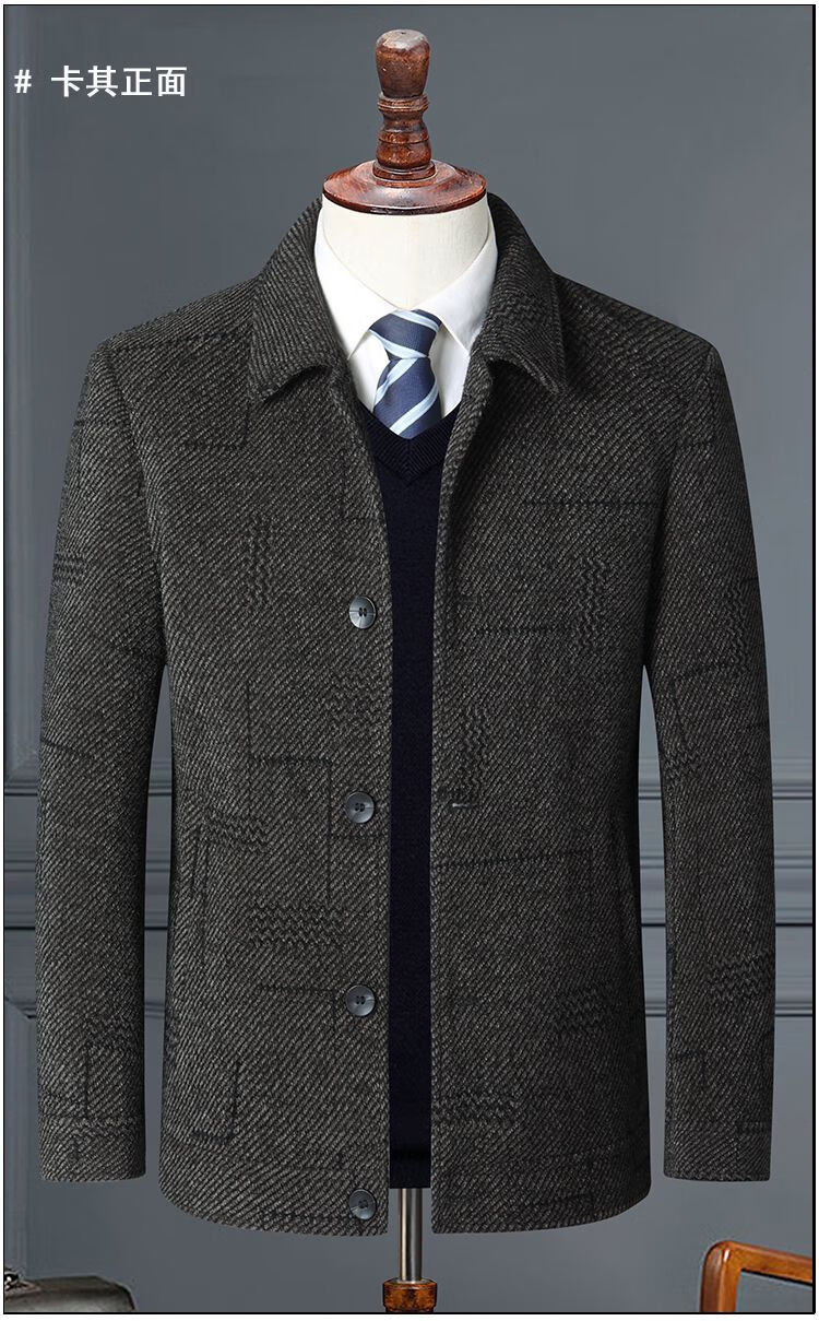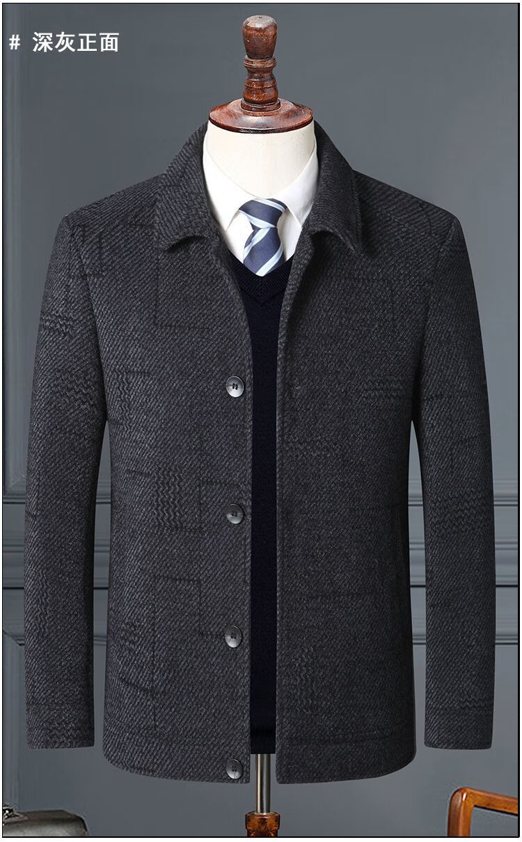 Classic car high-quality sheep wool lapel jacket for men in autumn and winter, middle-aged and elderly dad's winter chenille wool woolen jacket, dark gray 2XL 185 recommended 145-160Jin Jin equals 0.5 kg