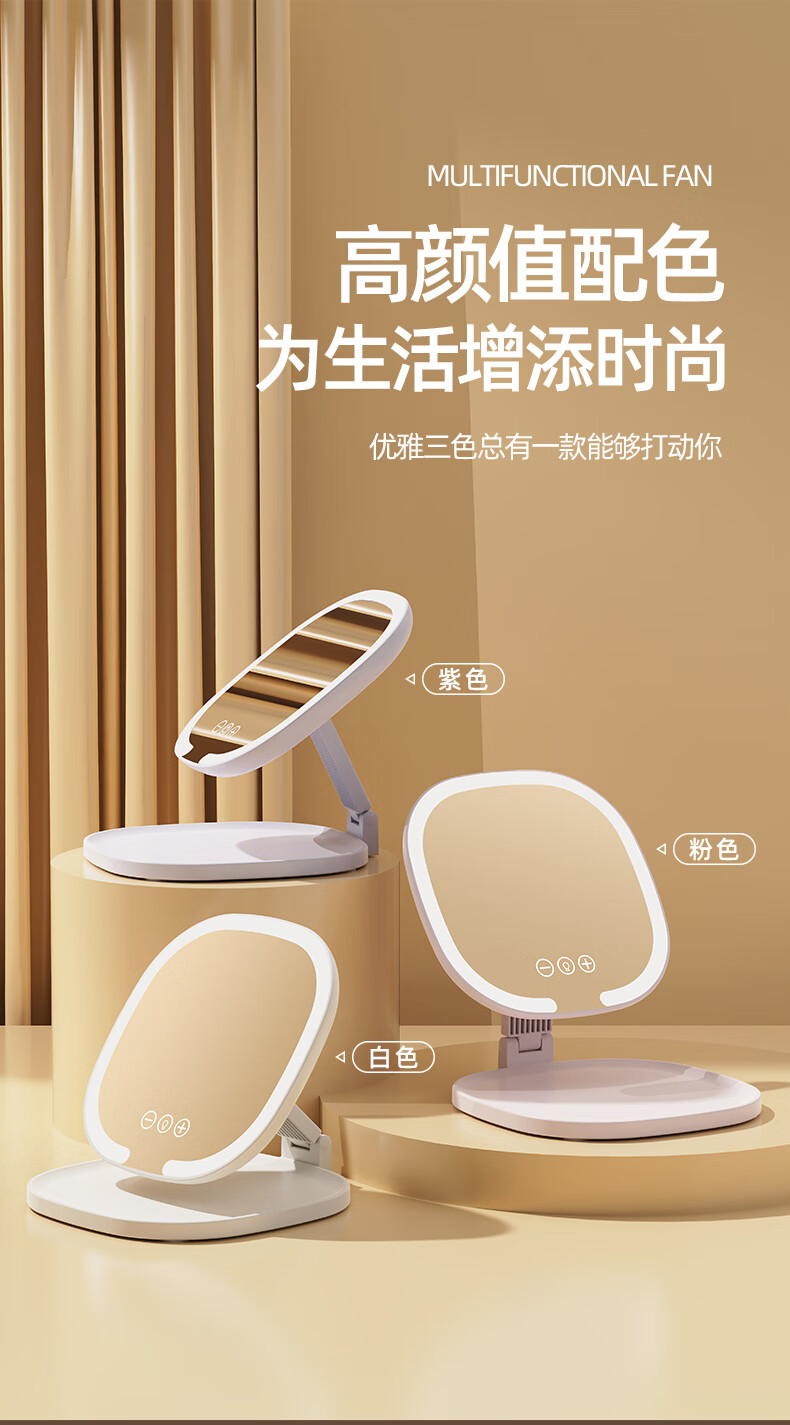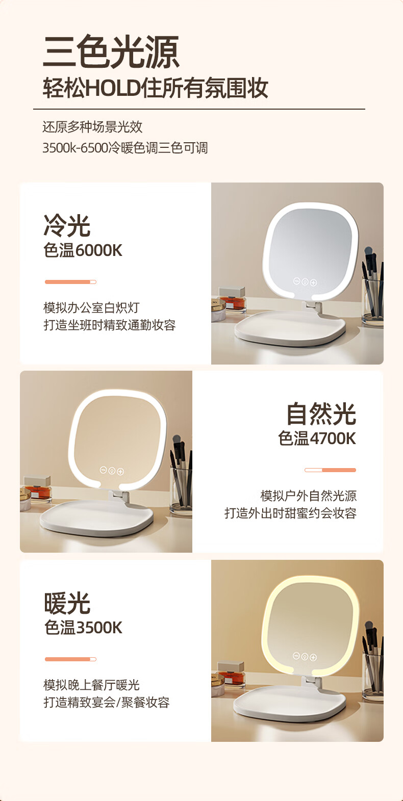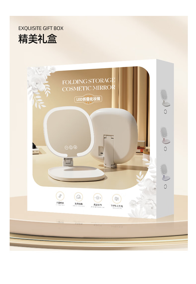 Led desktop smart makeup mirror with light girls bedroom dressing table mirror student dormitory desktop ins style 1 pack cream yellow without makeup light foldable and rotating