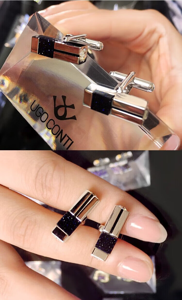 UGO CONTIUGO Starry Sky Stone Cufflinks Business Formal French Shirt Sleeve Pins Cuff Buttons as Gifts for Boyfriend with Customized Engraving