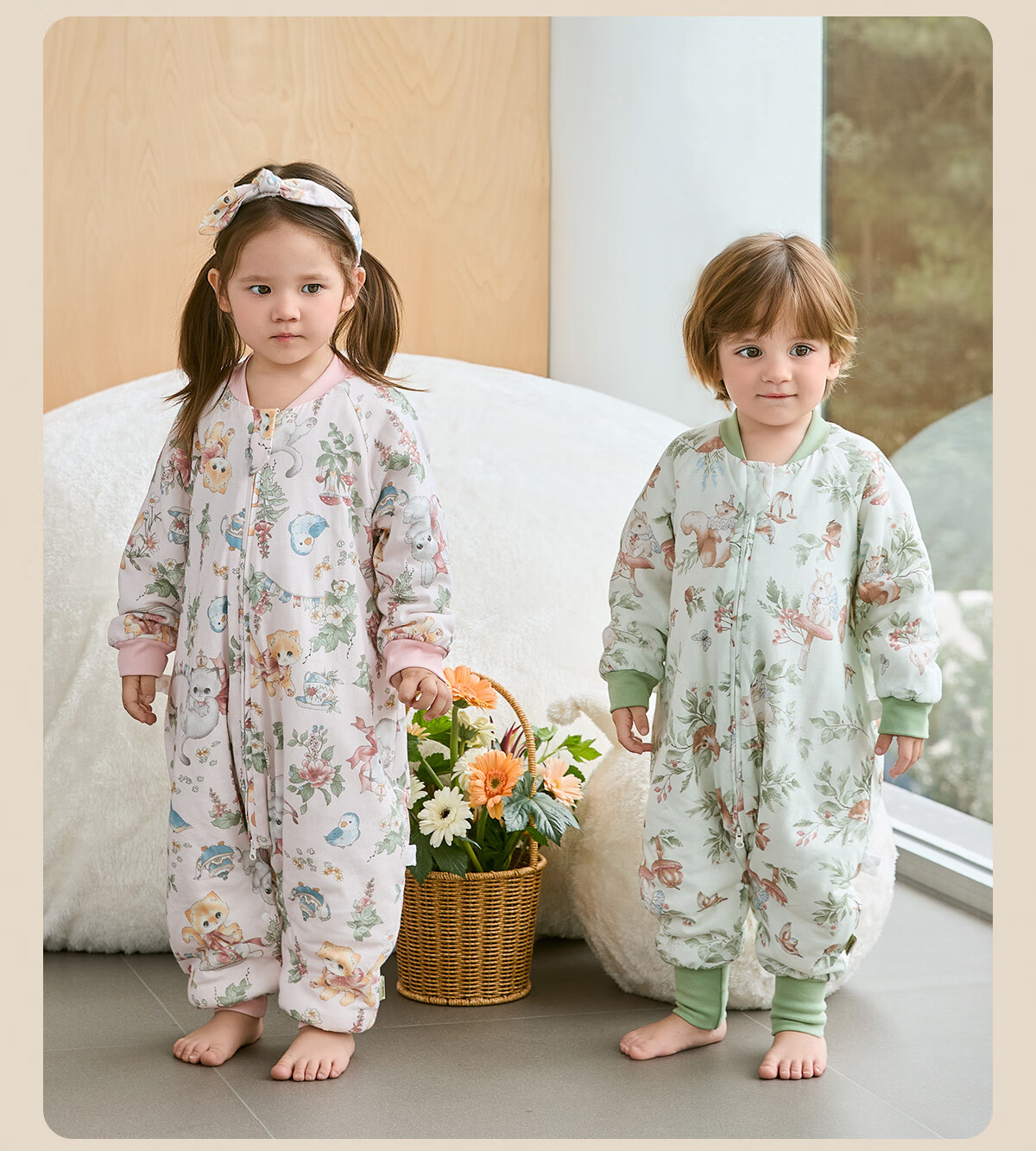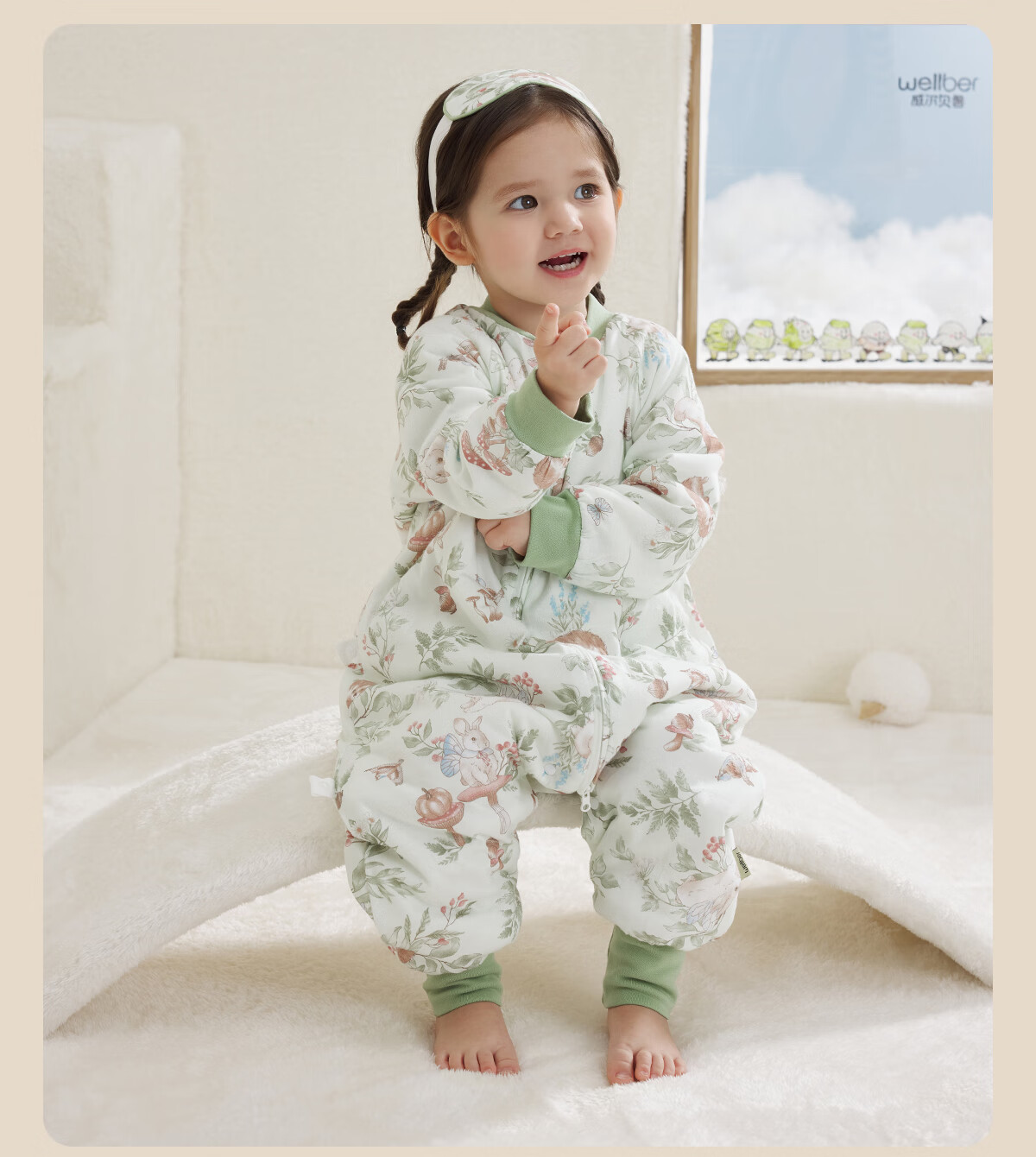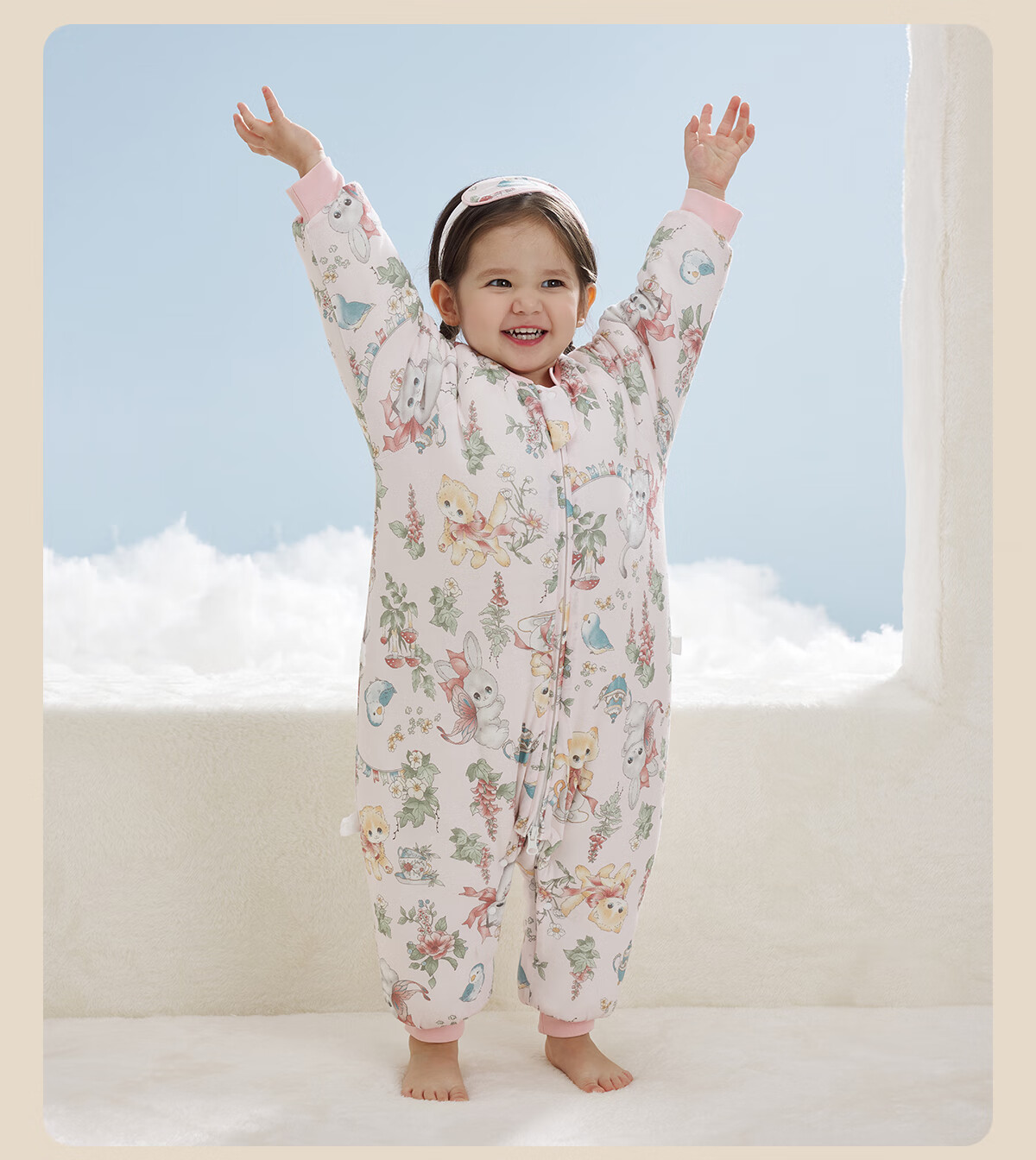 WELLBER Baby Sleeping Bag Antibacterial Constant Temperature Split Legs Thickened Children's Anti-Kick Quilt Warm Clothes Autumn and Winter Warm Type A Sleeping Bag Cat Tea Party Light Warm 15-20 L (Recommended Height 90-100cm)