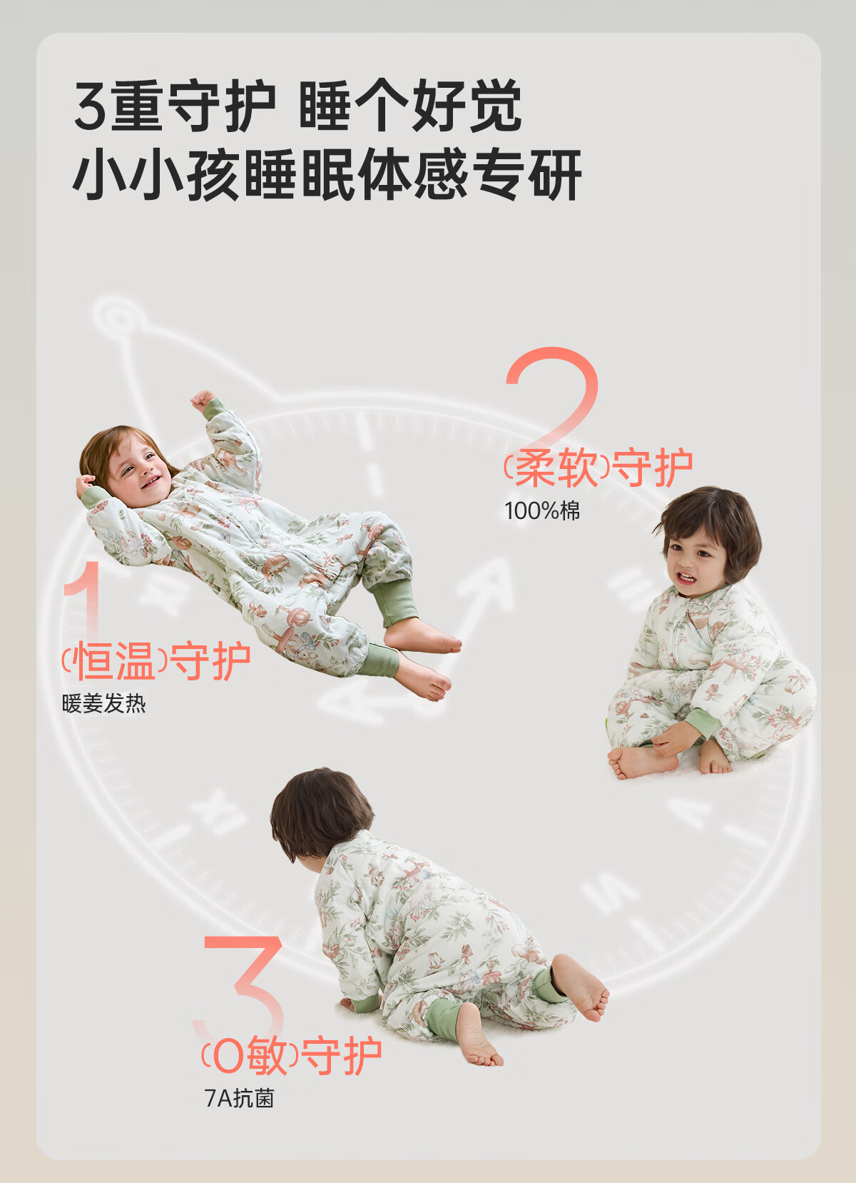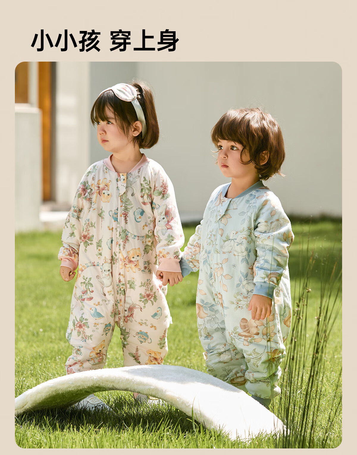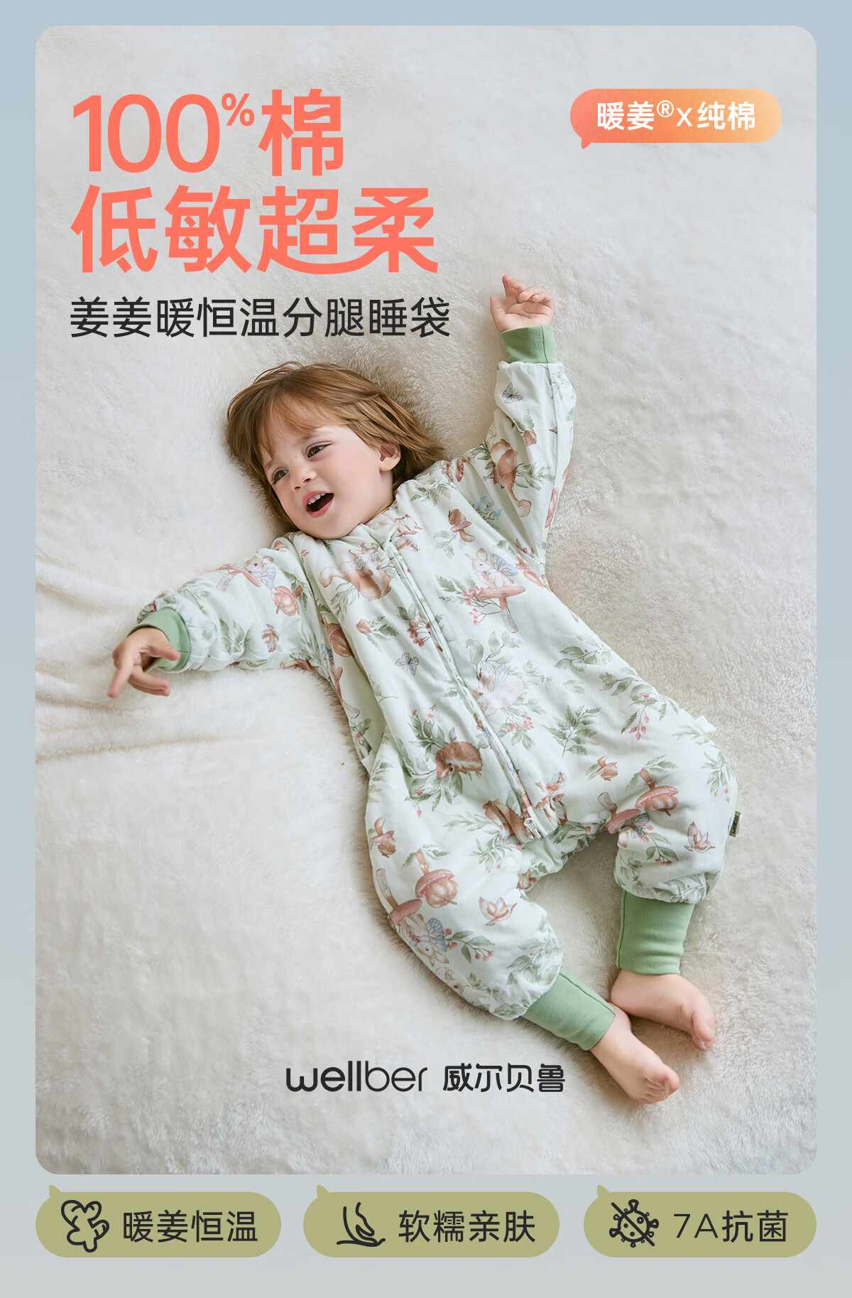 WELLBER Baby Sleeping Bag Antibacterial Constant Temperature Split Legs Thickened Children's Anti-Kick Quilt Warm Clothes Autumn and Winter Warm Type A Sleeping Bag Cat Tea Party Light Warm 15-20 L (Recommended Height 90-100cm)