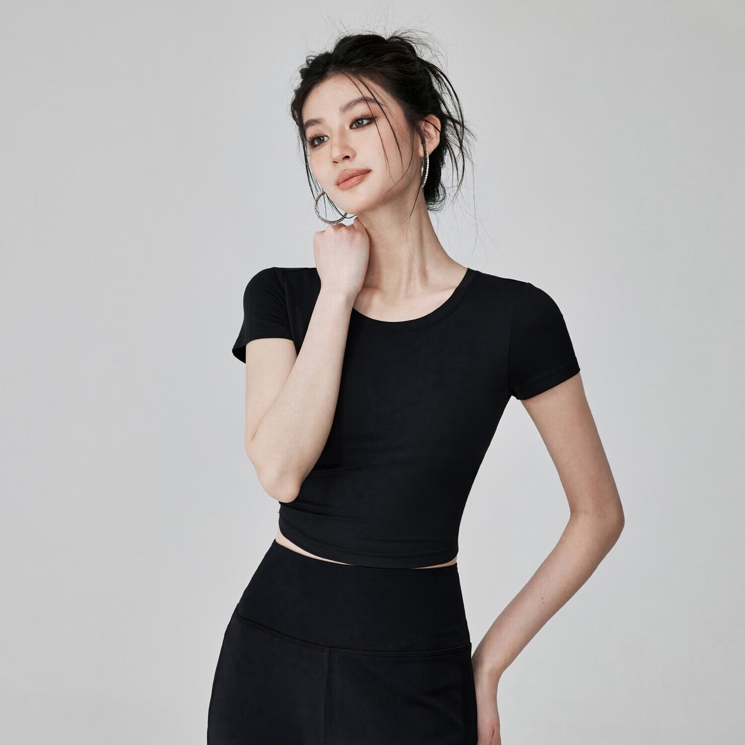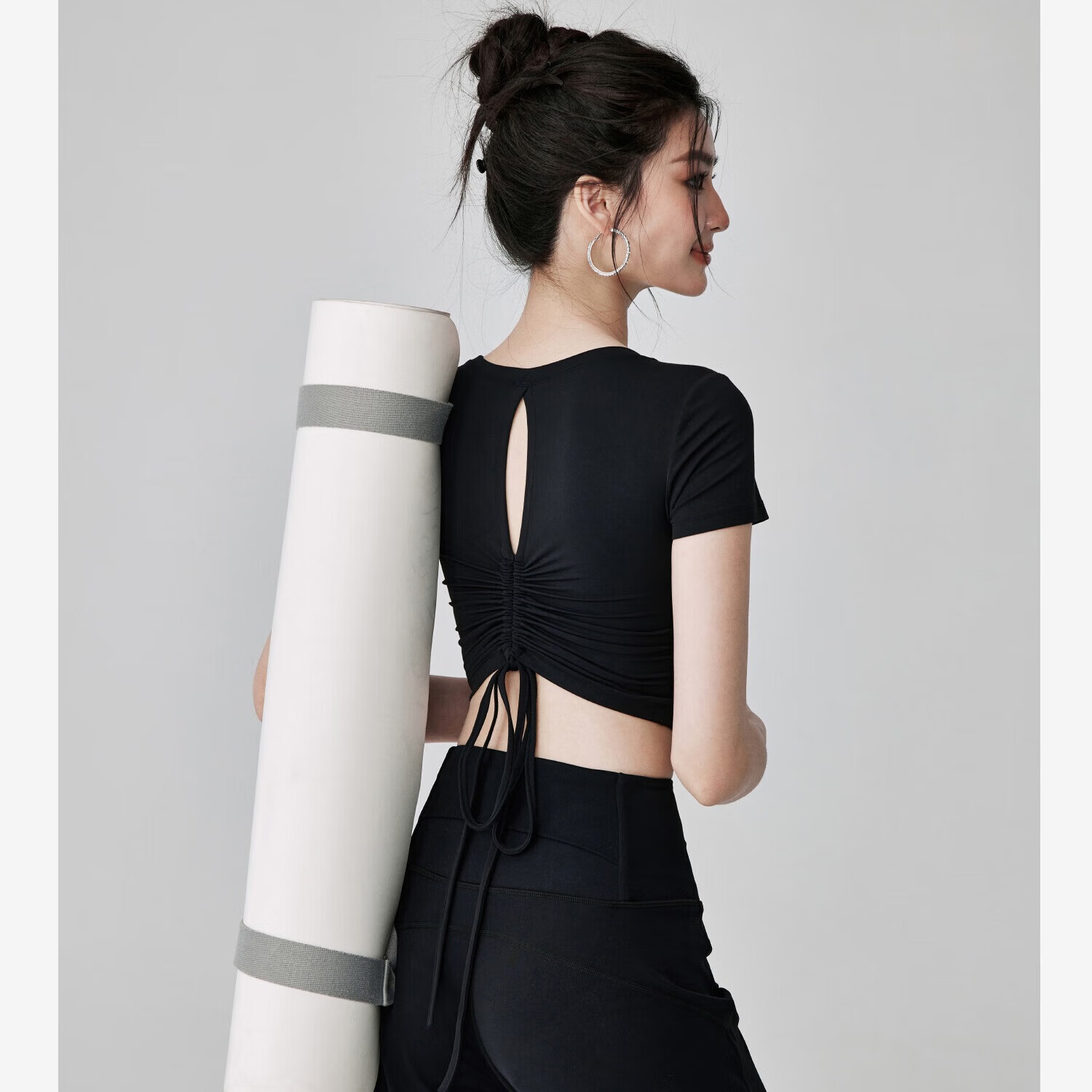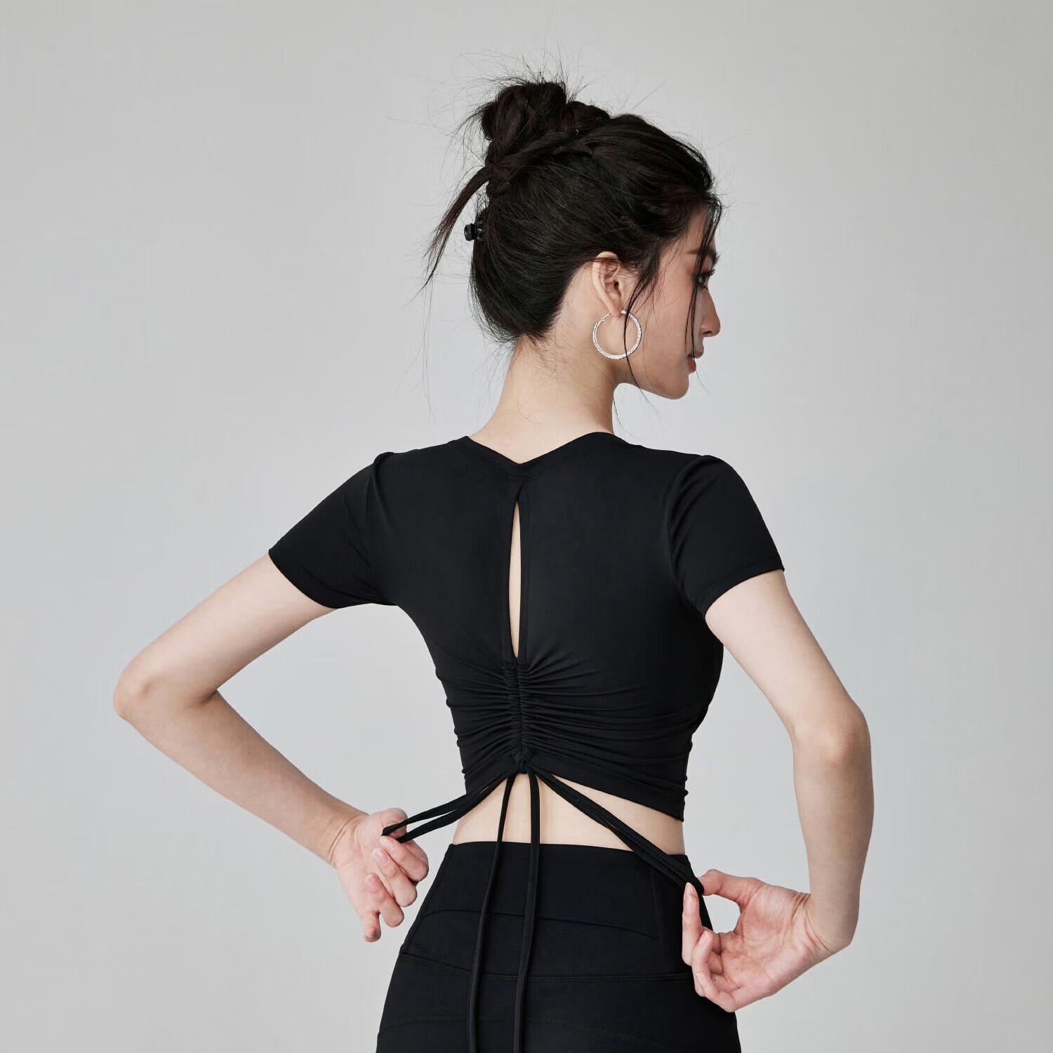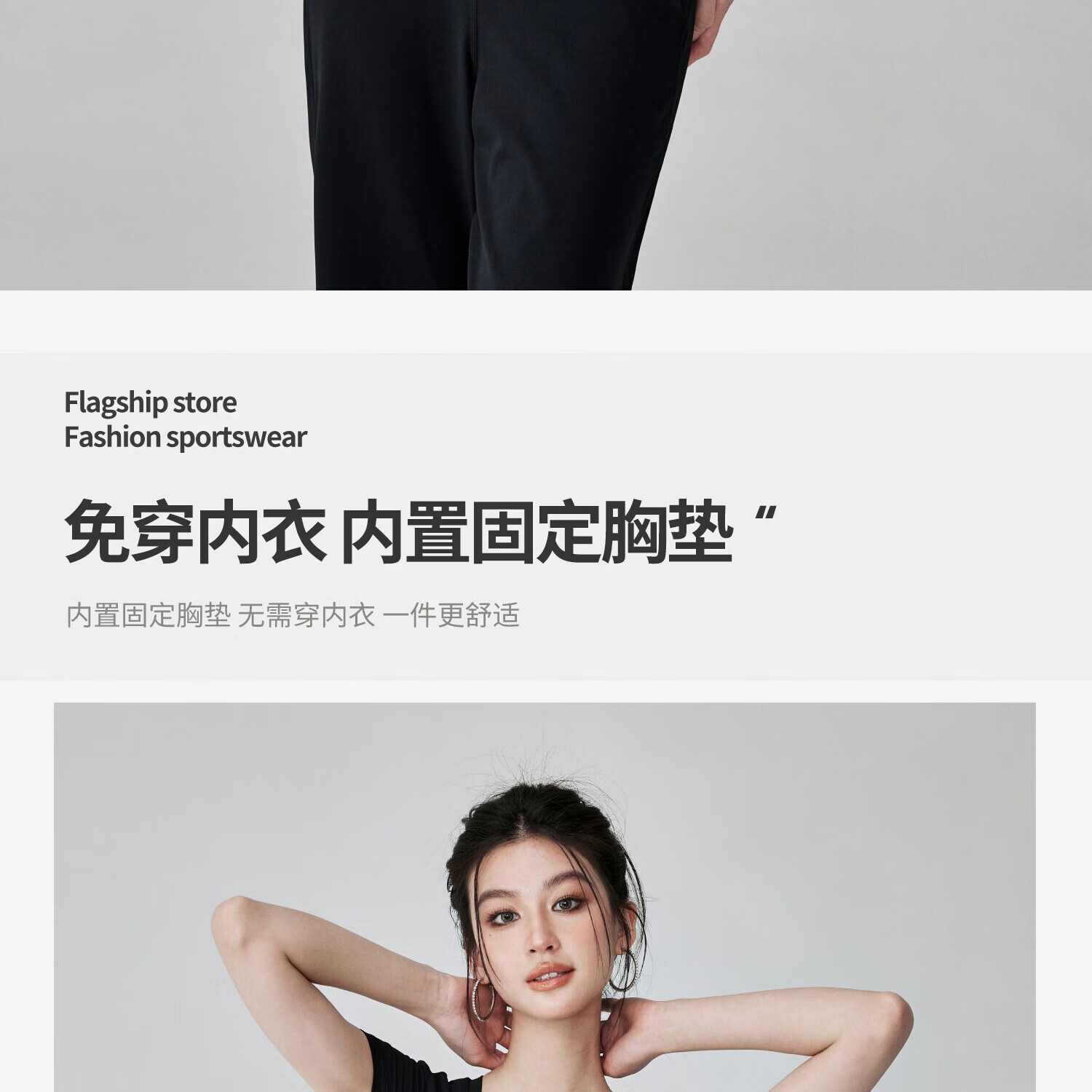 LULULMCCTN with chest pad yoga short-sleeved women's professional Pilates training running sports top fitness T-shirt black long-sleeved M