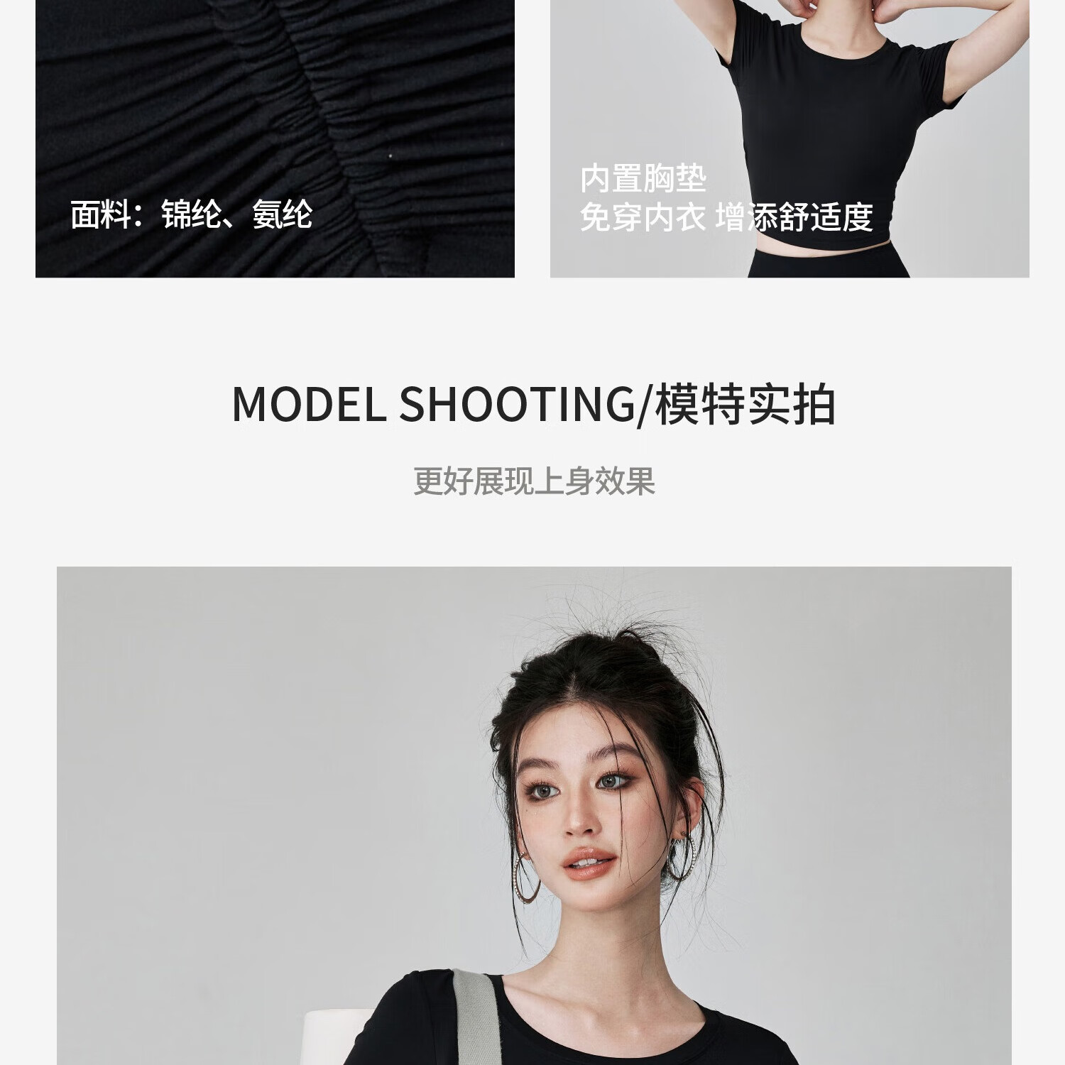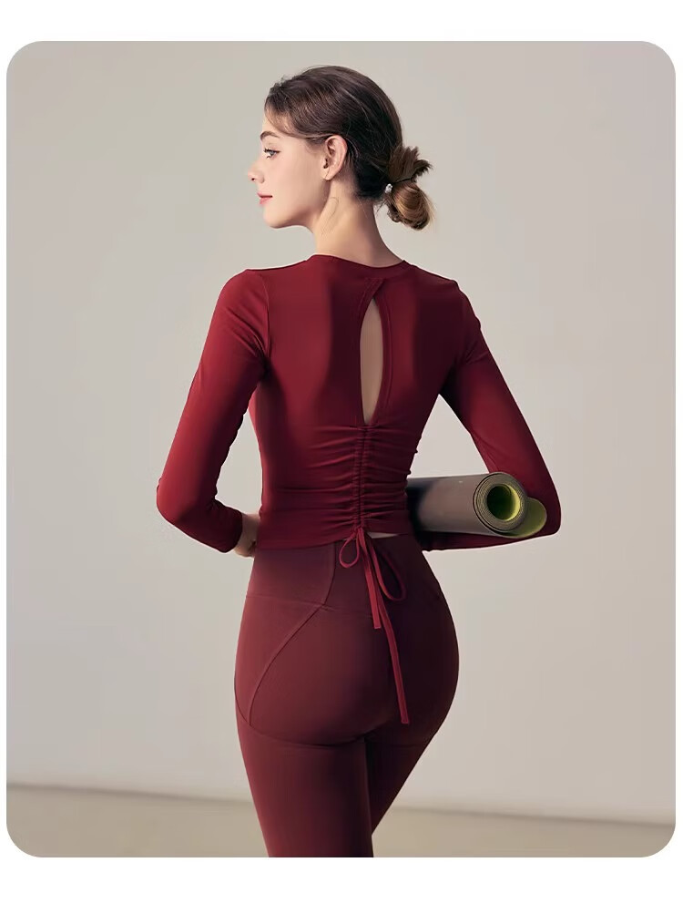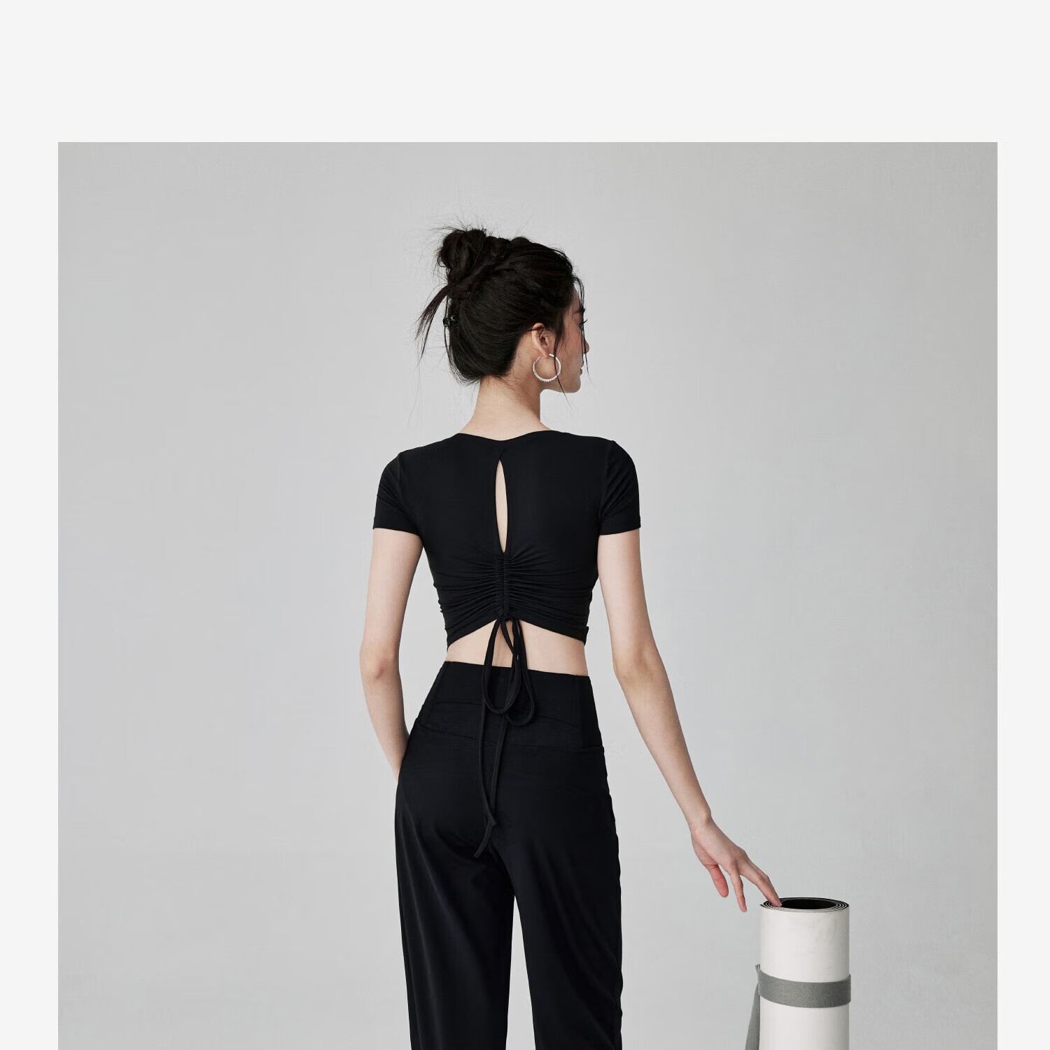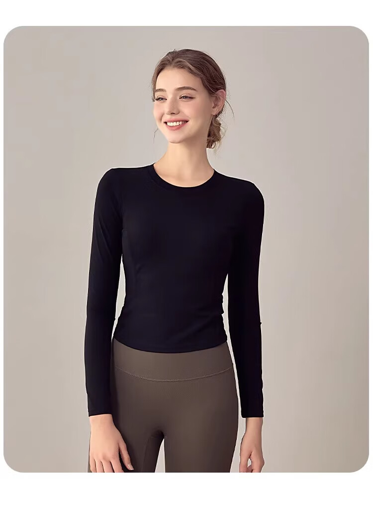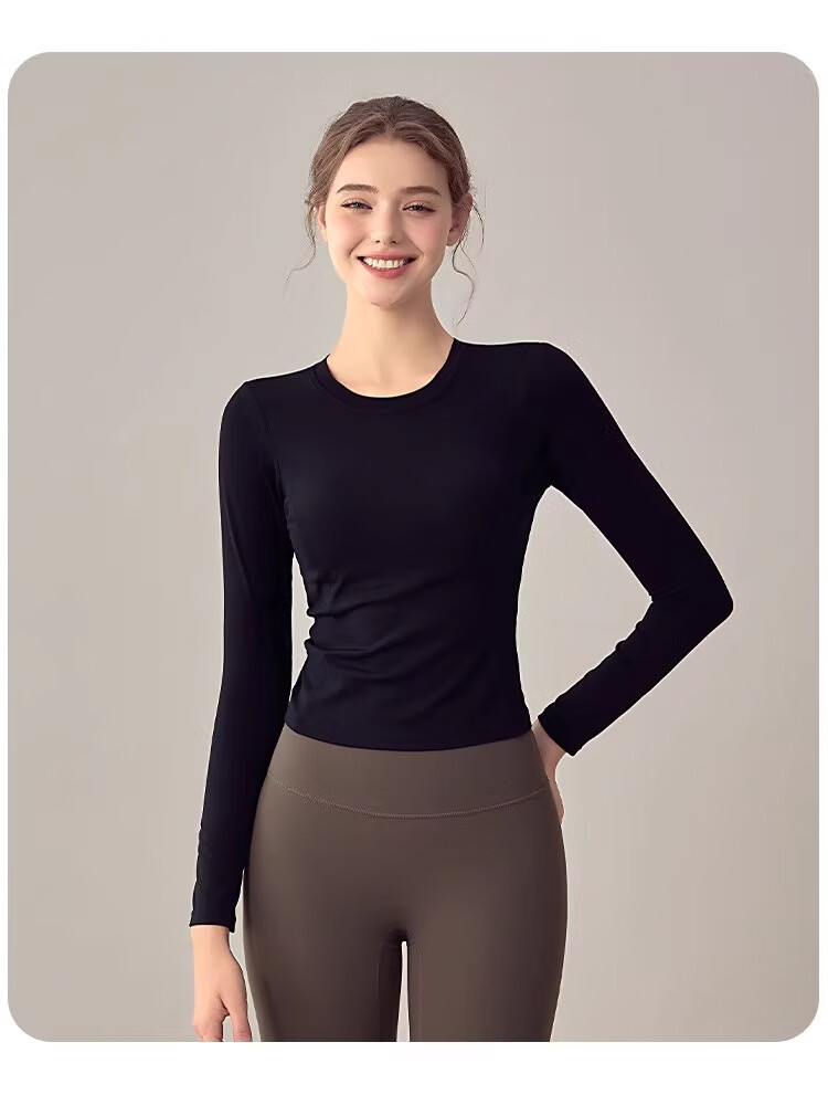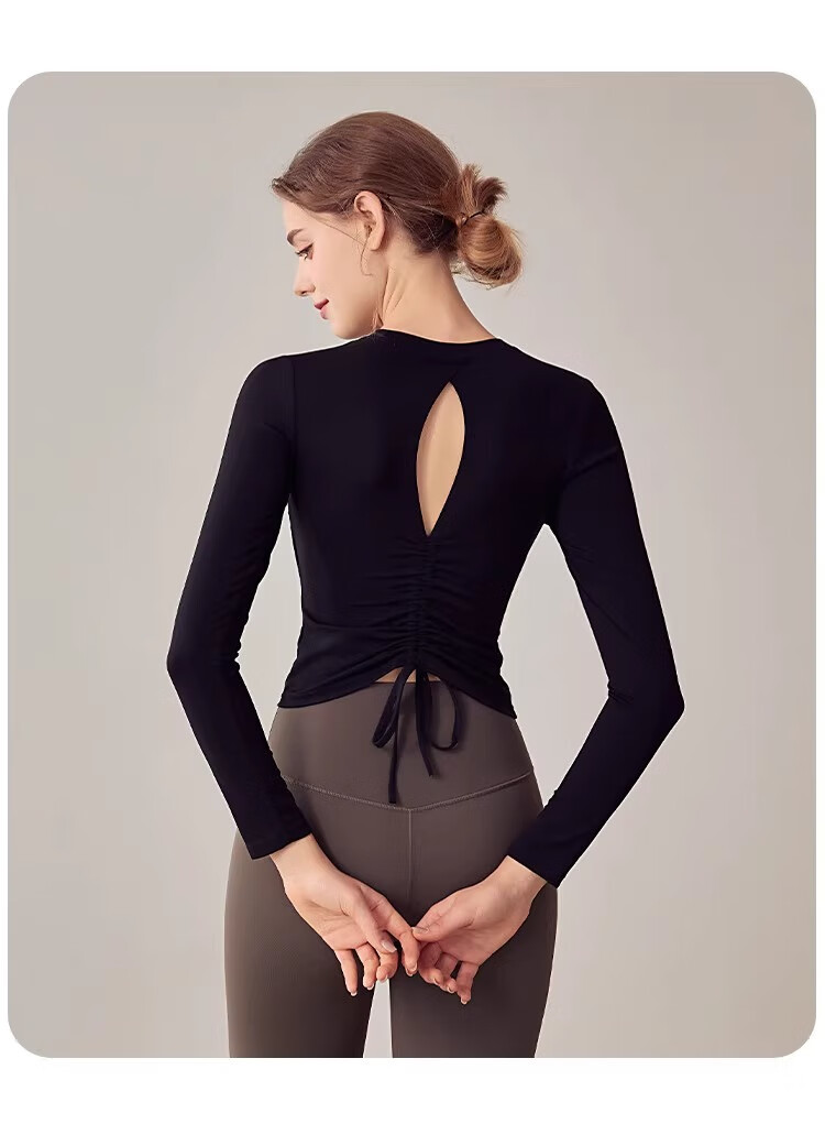 LULULMCCTN with chest pad yoga short-sleeved women's professional Pilates training running sports top fitness T-shirt black long-sleeved M