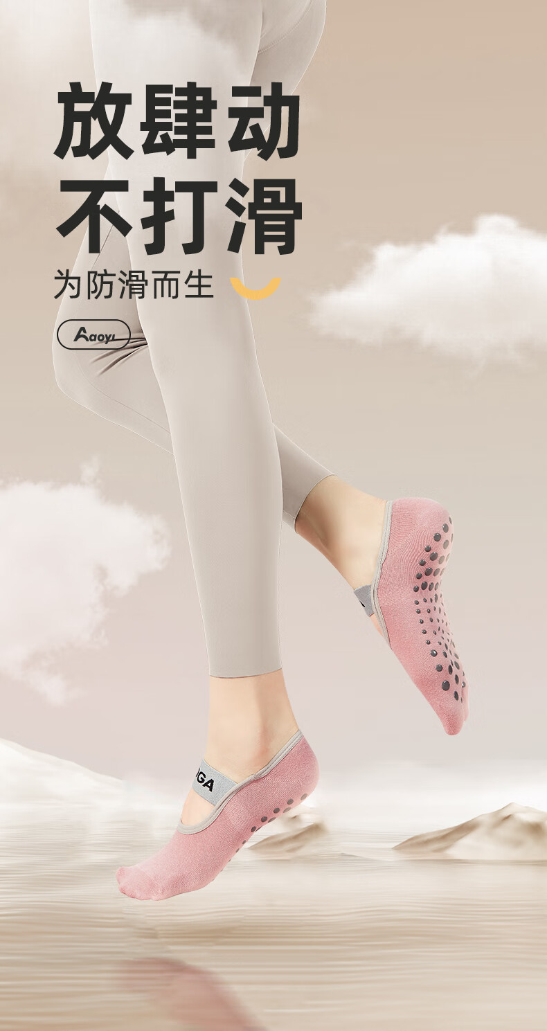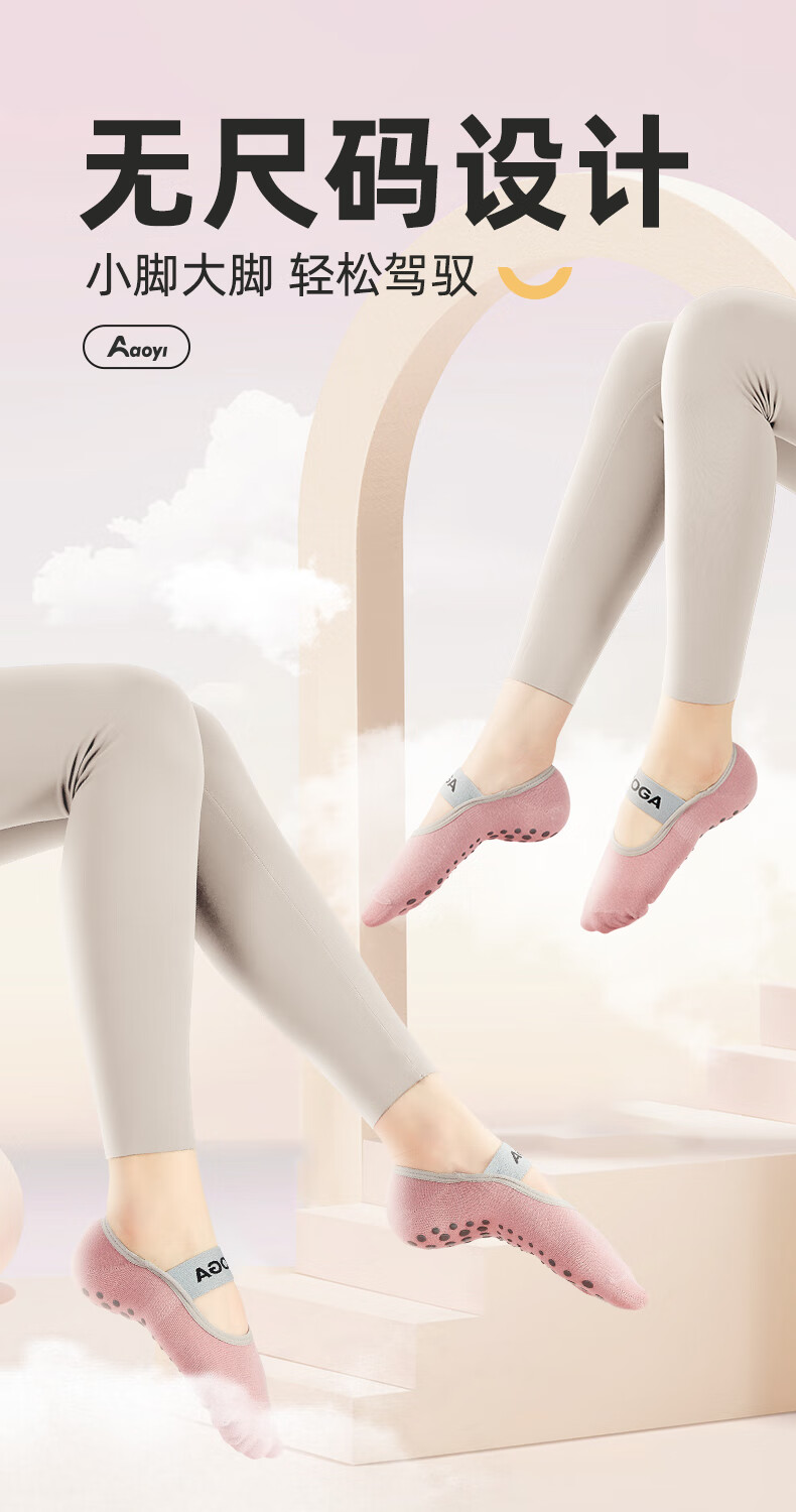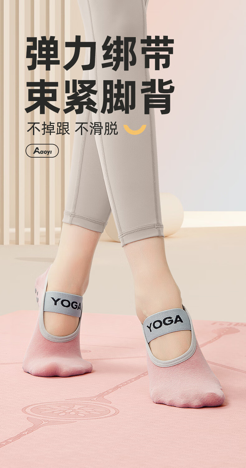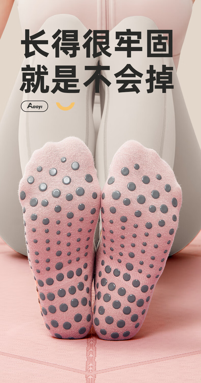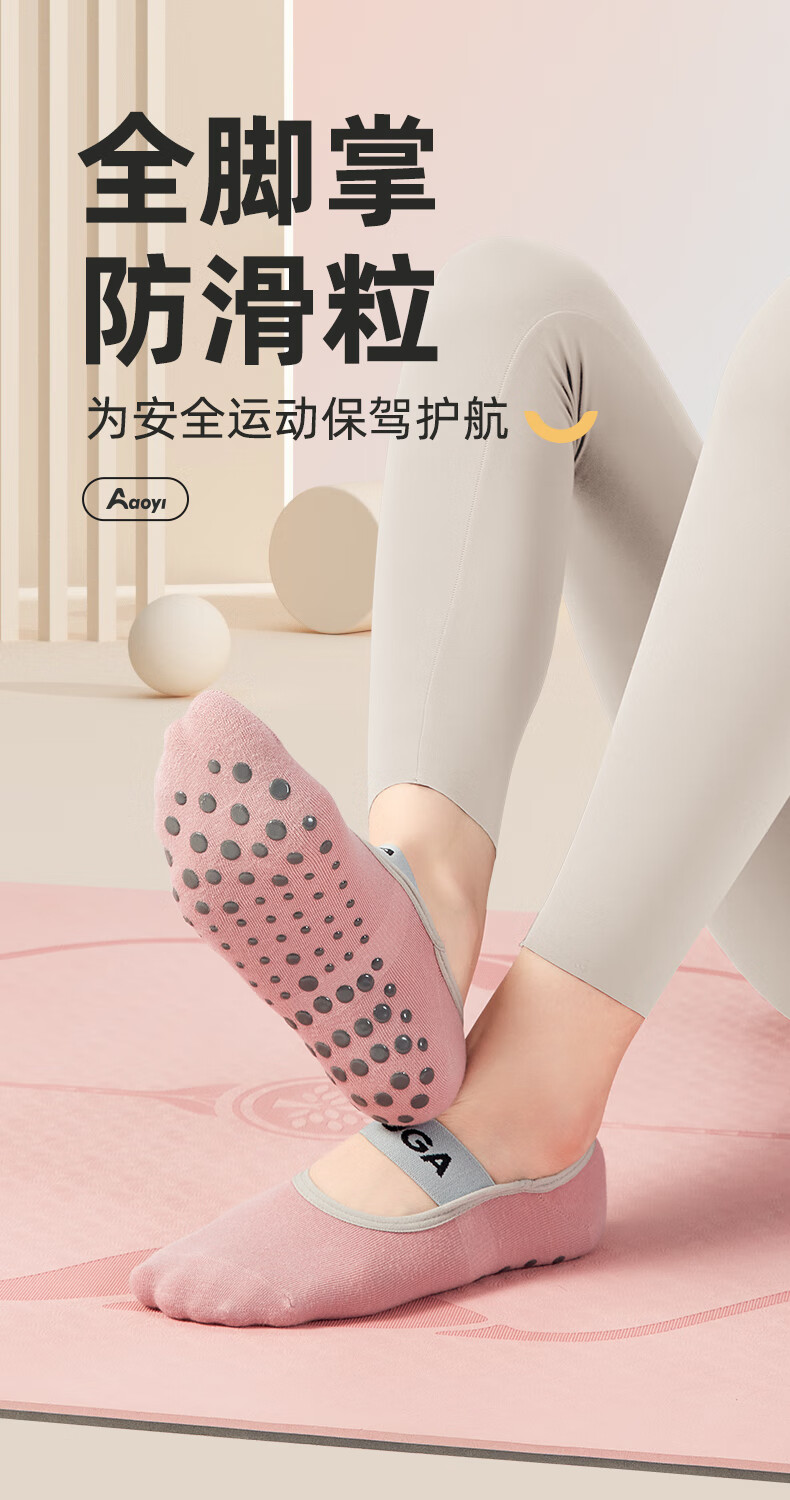 Aoyi New Yoga Socks Women's Non-Slip Five-Finger Fitness Socks Pilates All-Season Thin Sports Socks Webbing Anti-Slip Pink + Black Webbing Five-Finger Socks-2 Pairs
