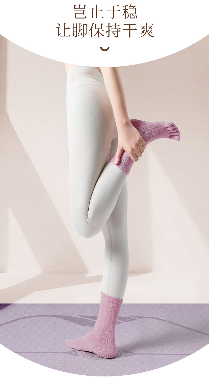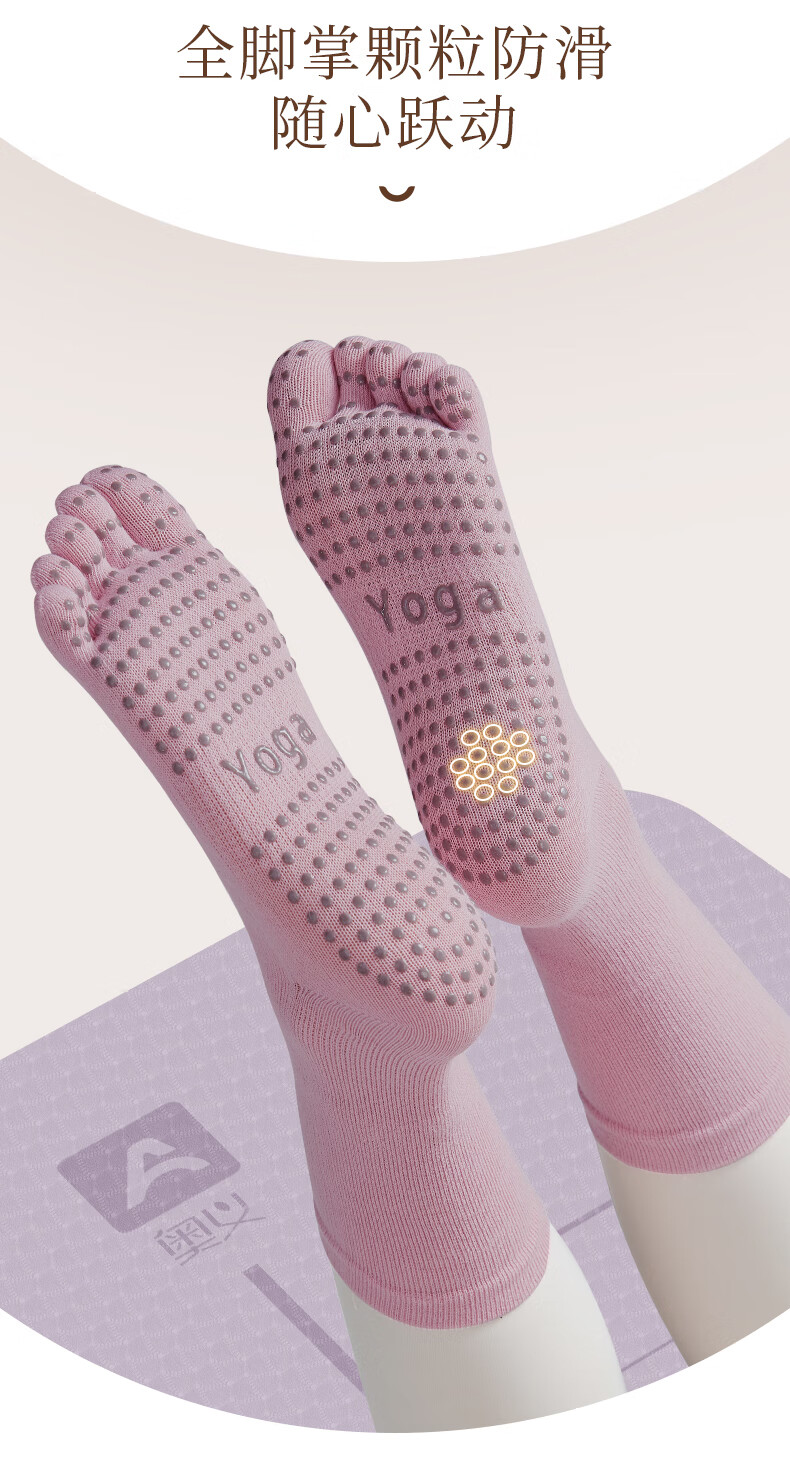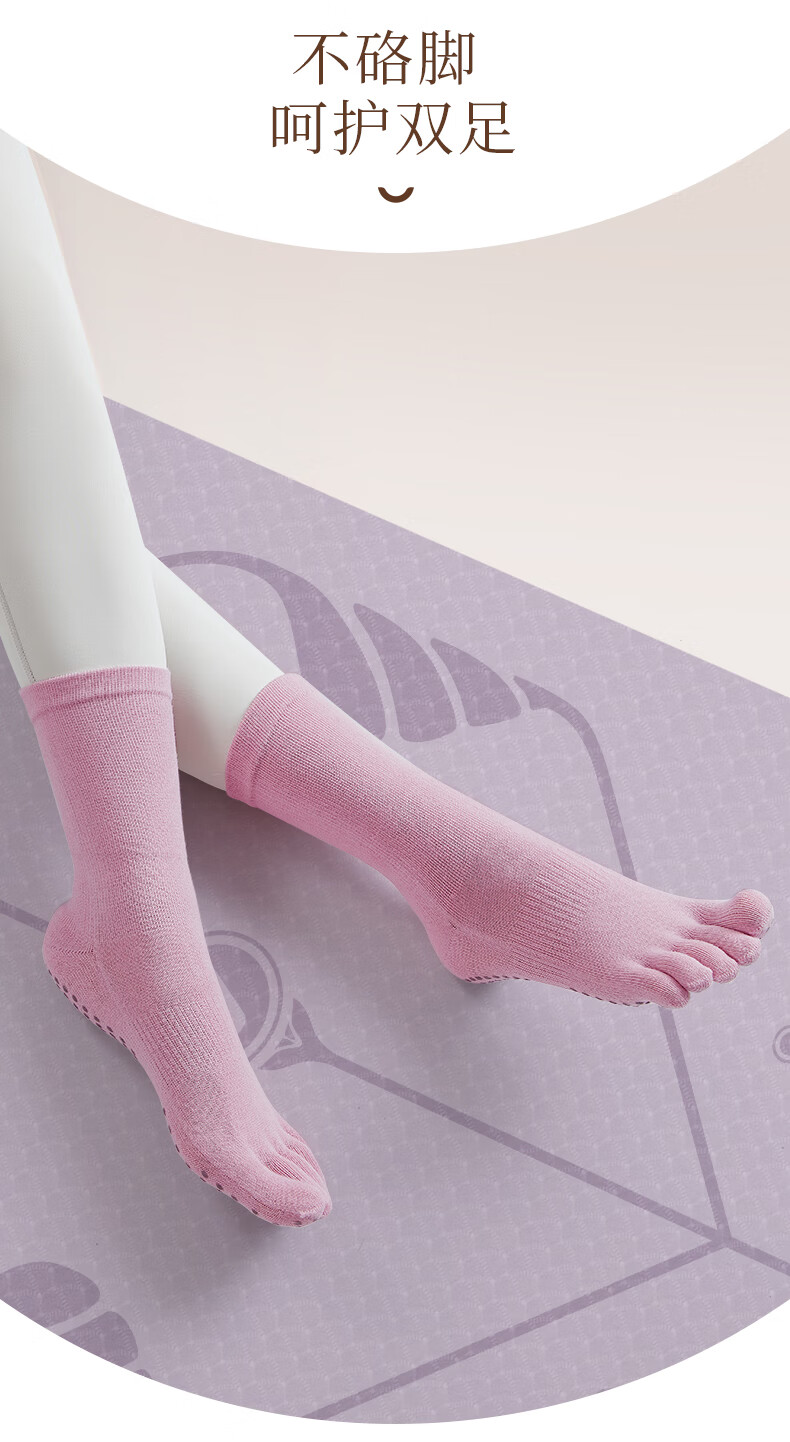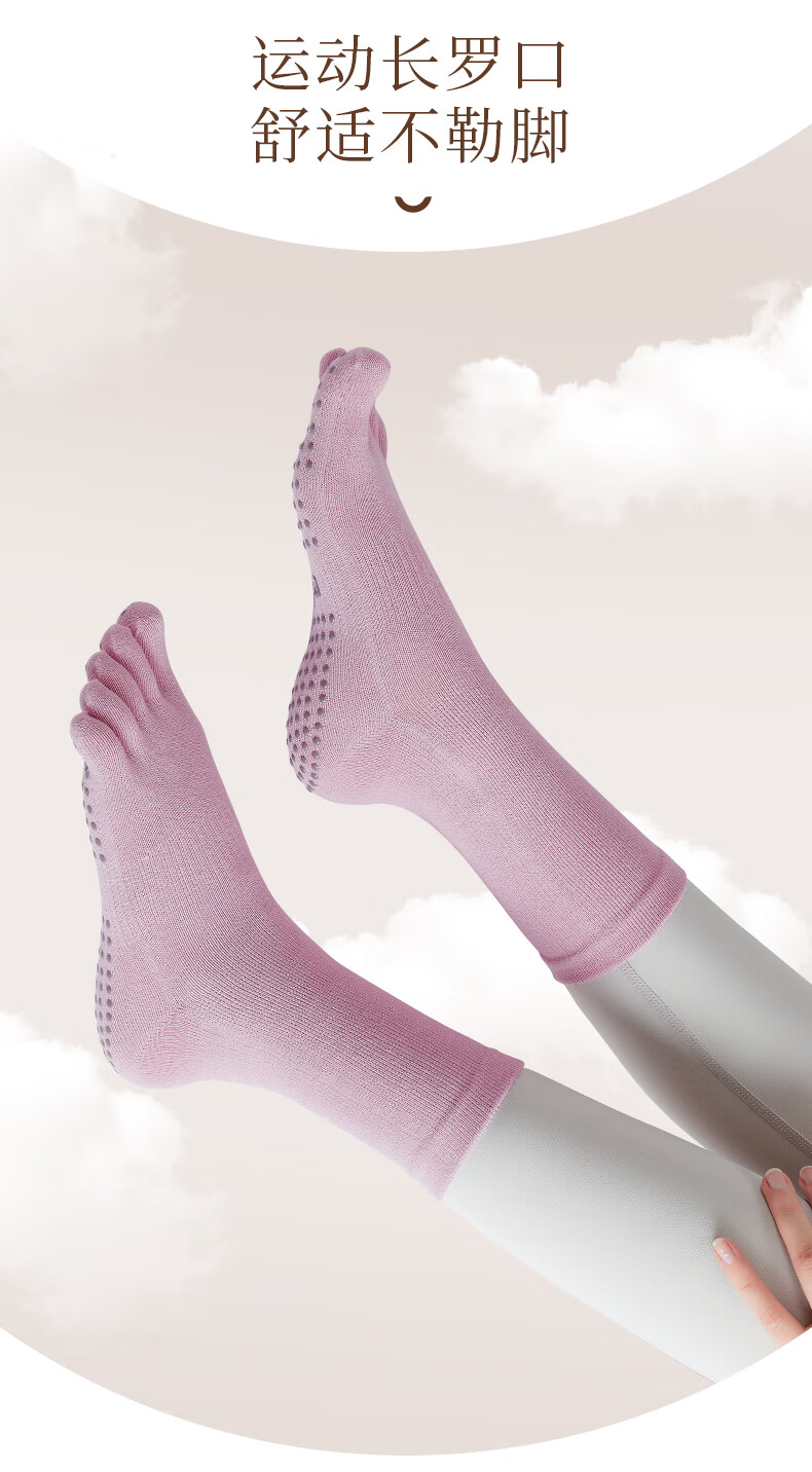 Upani yoga socks for women, non-slip five-finger mid-calf sports and fitness indoor skipping rope Pilates new product pink + black + bean green mid-calf socks * 3 pairs