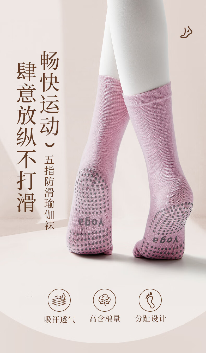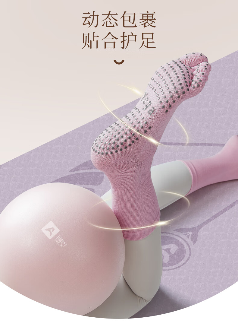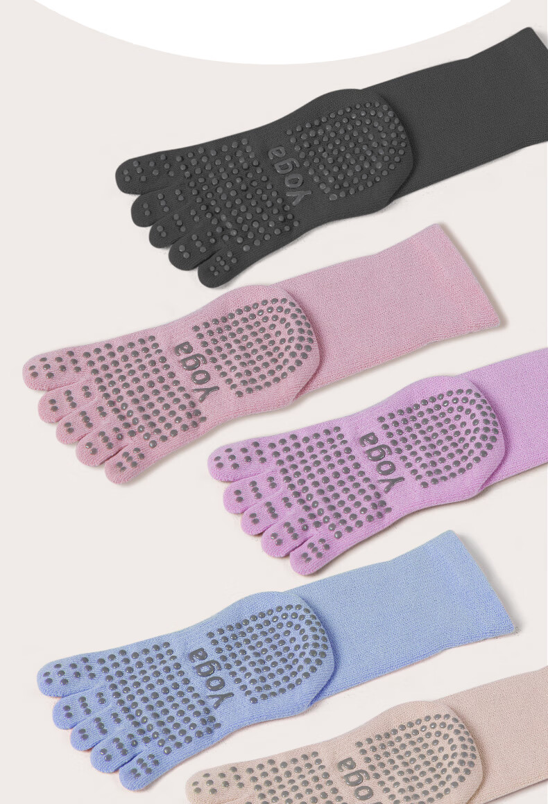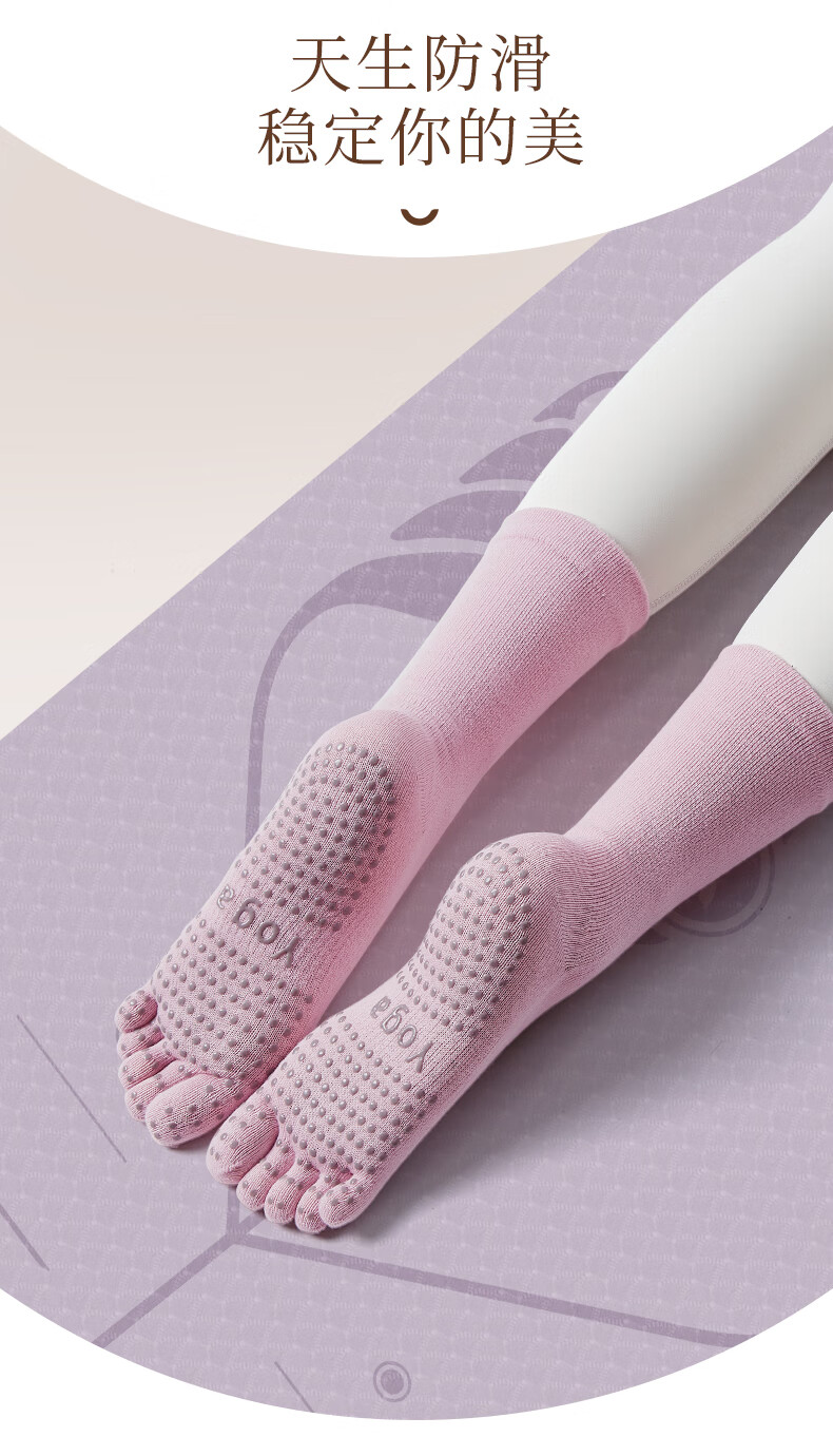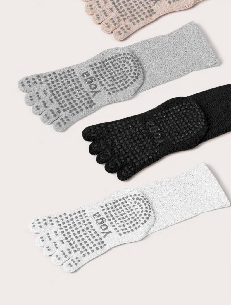 Upani yoga socks for women, non-slip five-finger mid-calf sports and fitness indoor skipping rope Pilates new product pink + black + bean green mid-calf socks * 3 pairs