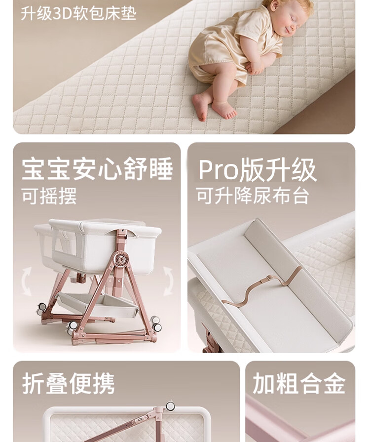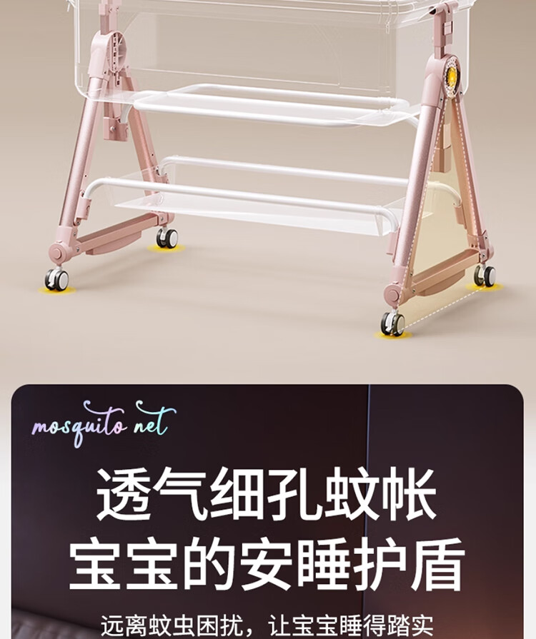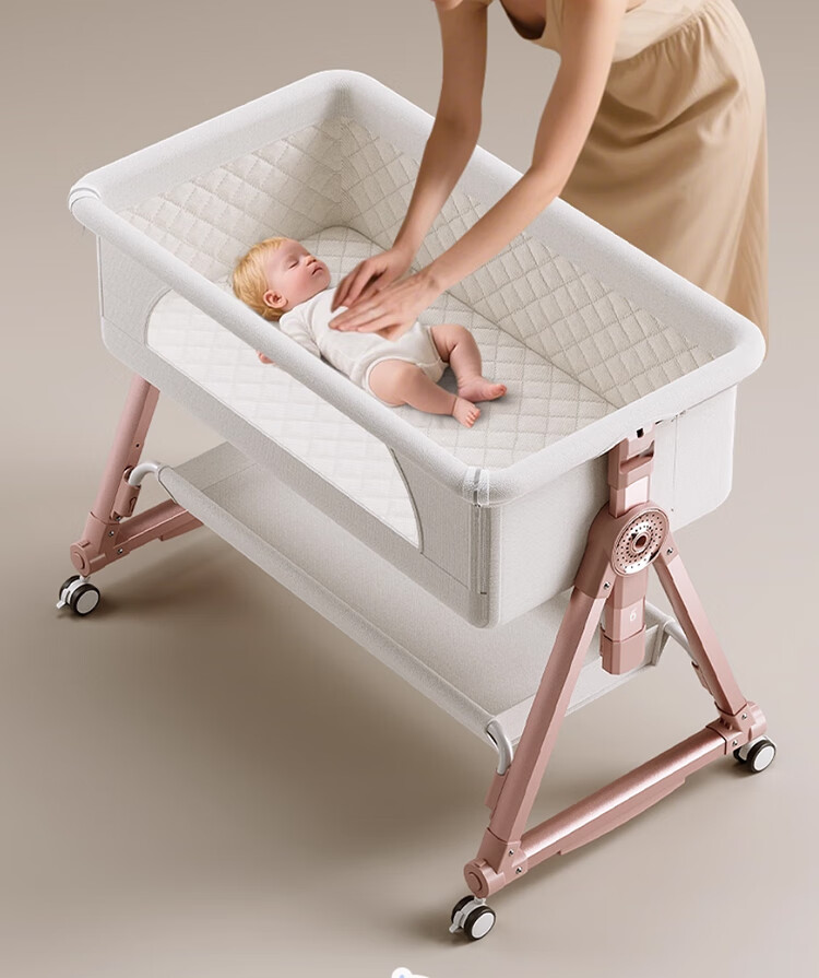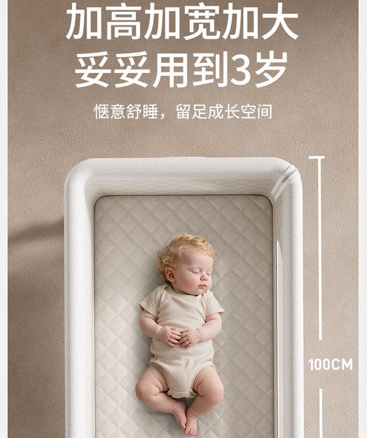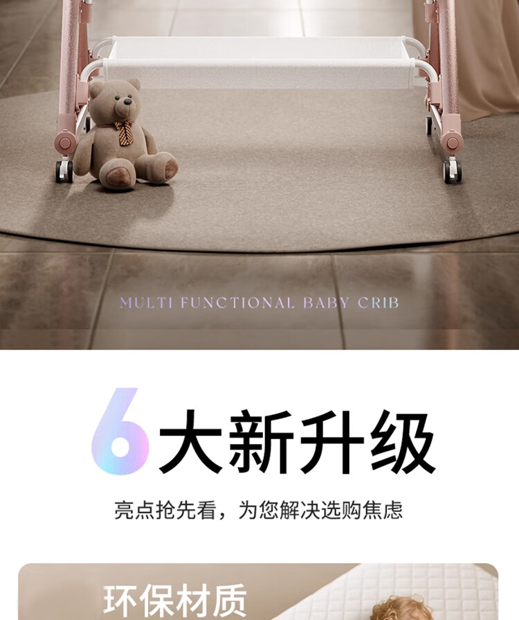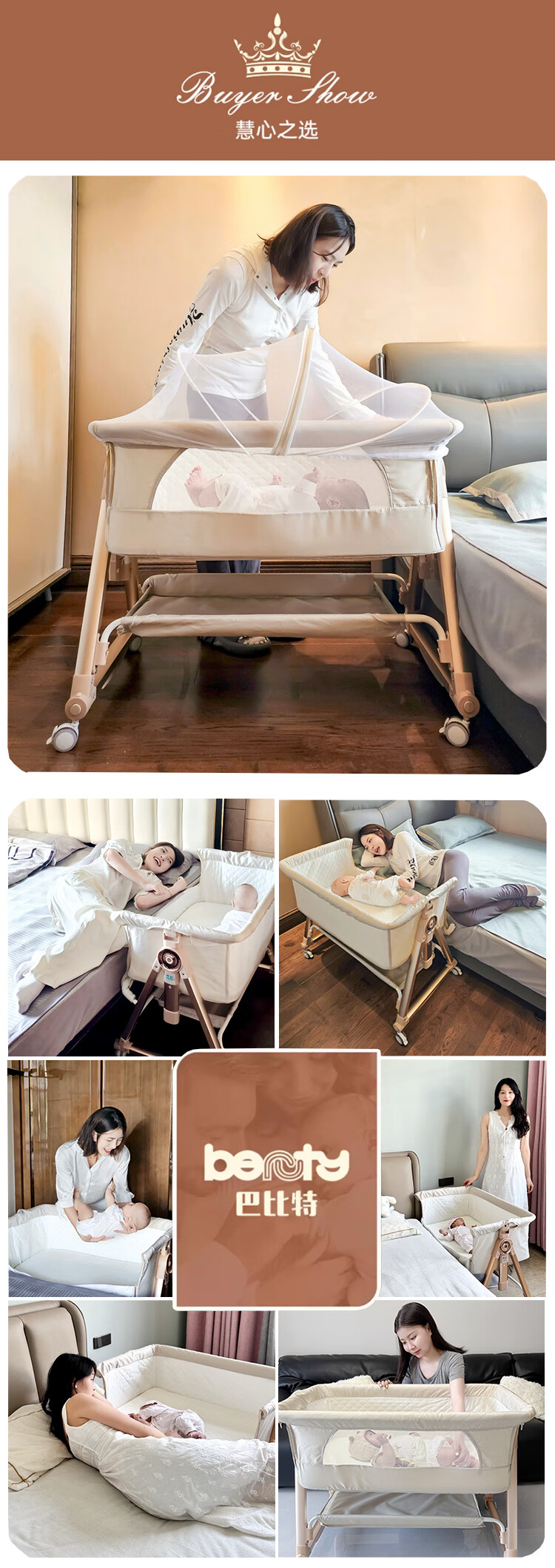 Babbitt crib multi-functional bed folding crib removable crib for 0-3 years old newborn spliced large bed baby shaker flagship 3D soft-packed mattress + mosquito net + universal wheels thick aluminum alloy / 6-level height adjustable / convenient foldable