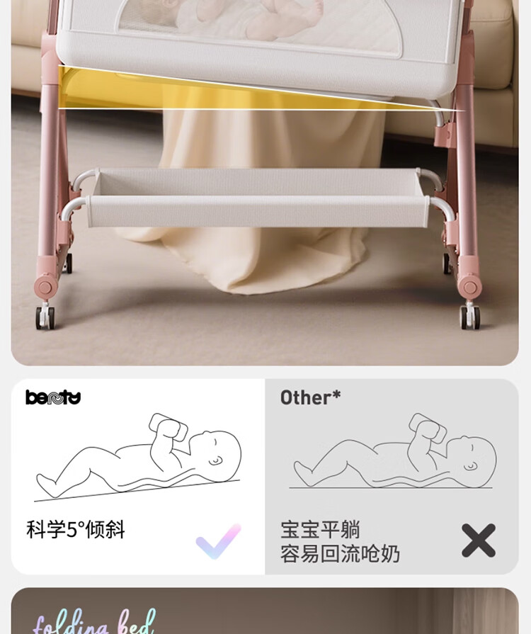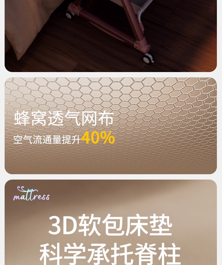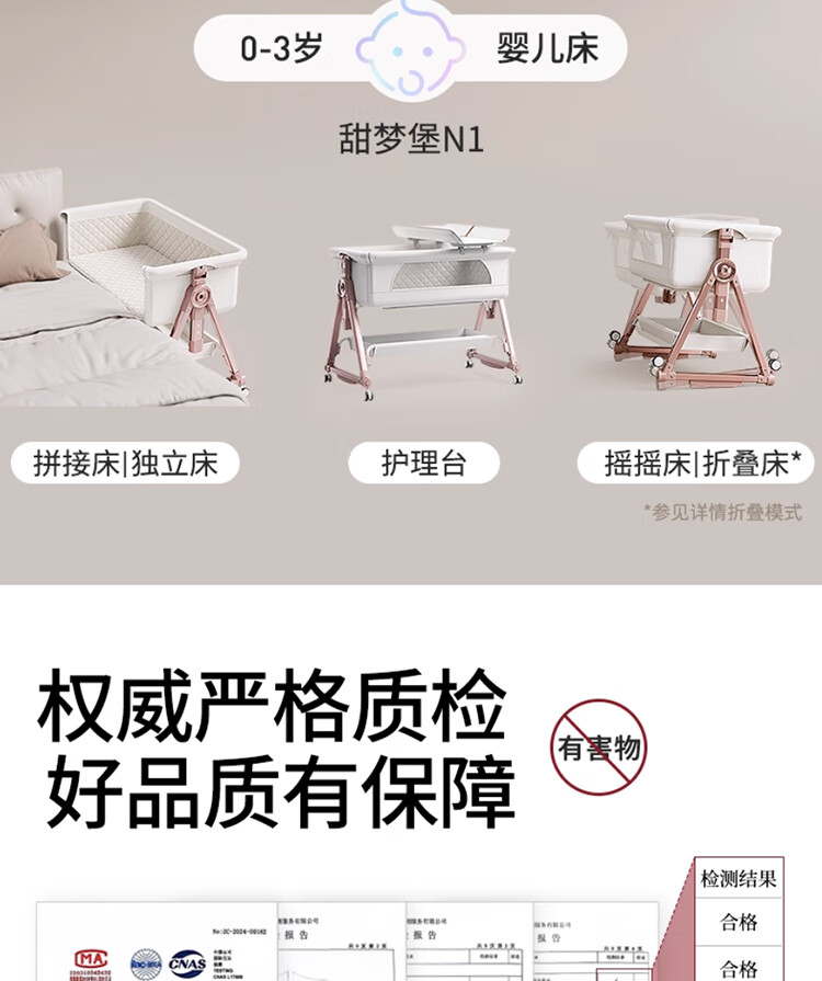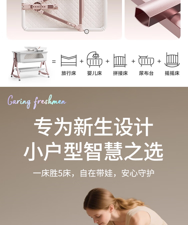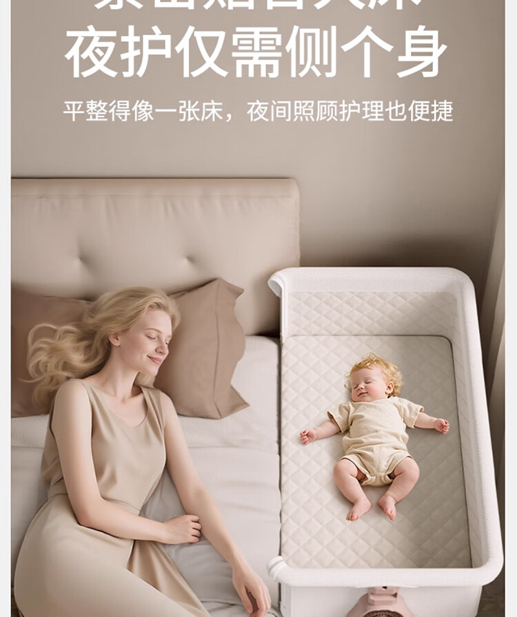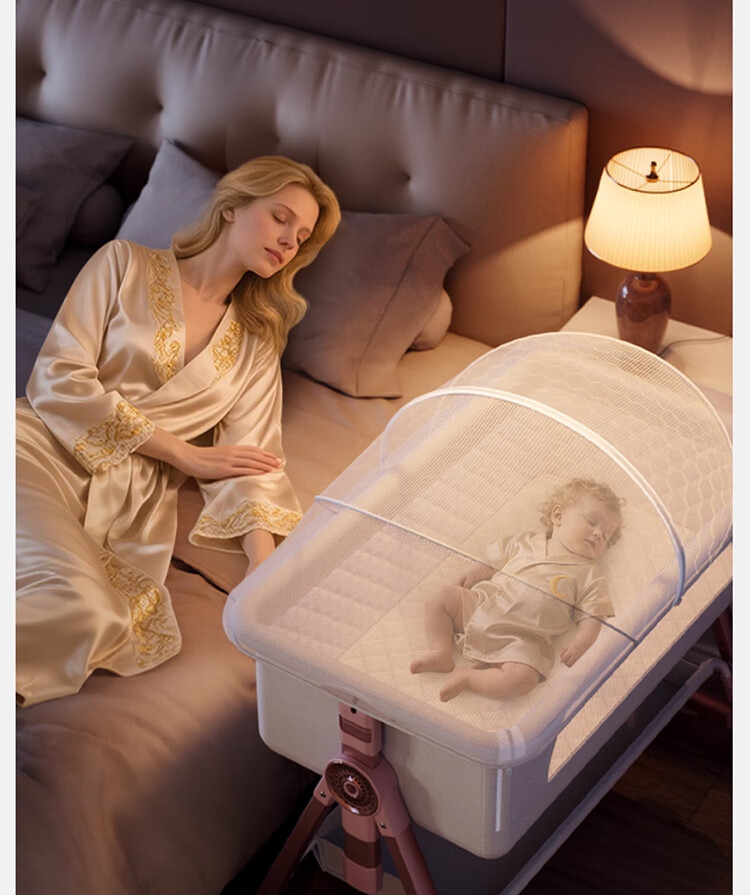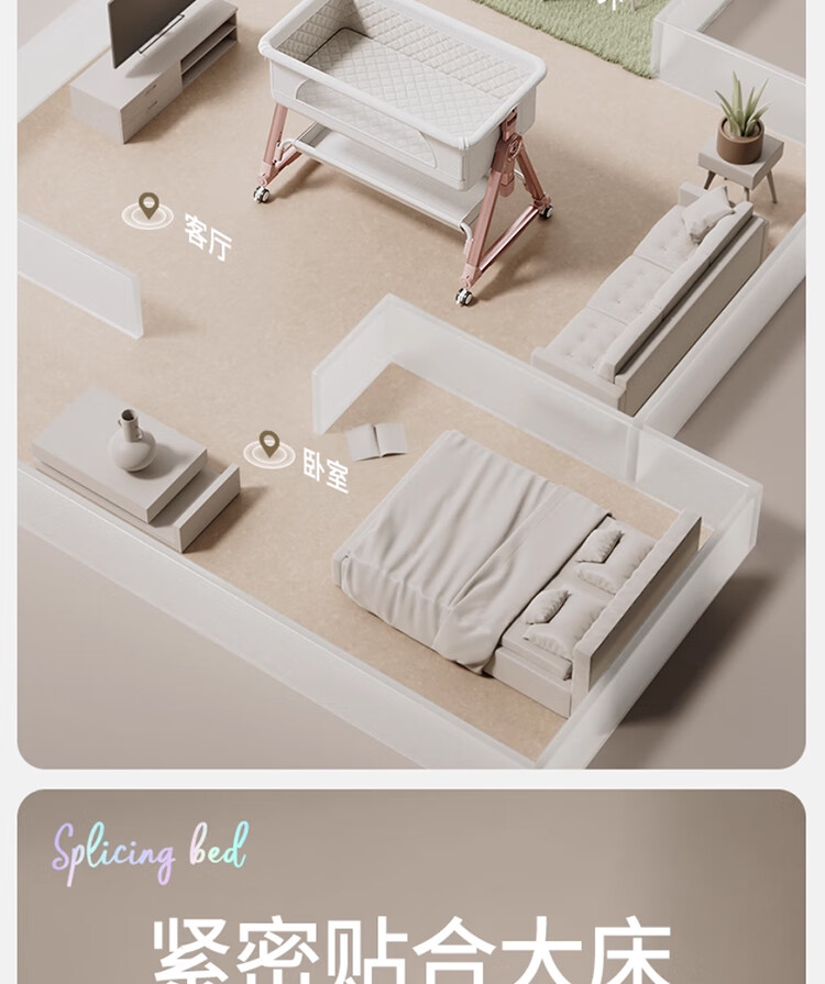 Babbitt crib multi-functional bed folding crib removable crib for 0-3 years old newborn spliced large bed baby shaker flagship 3D soft-packed mattress + mosquito net + universal wheels thick aluminum alloy / 6-level height adjustable / convenient foldable