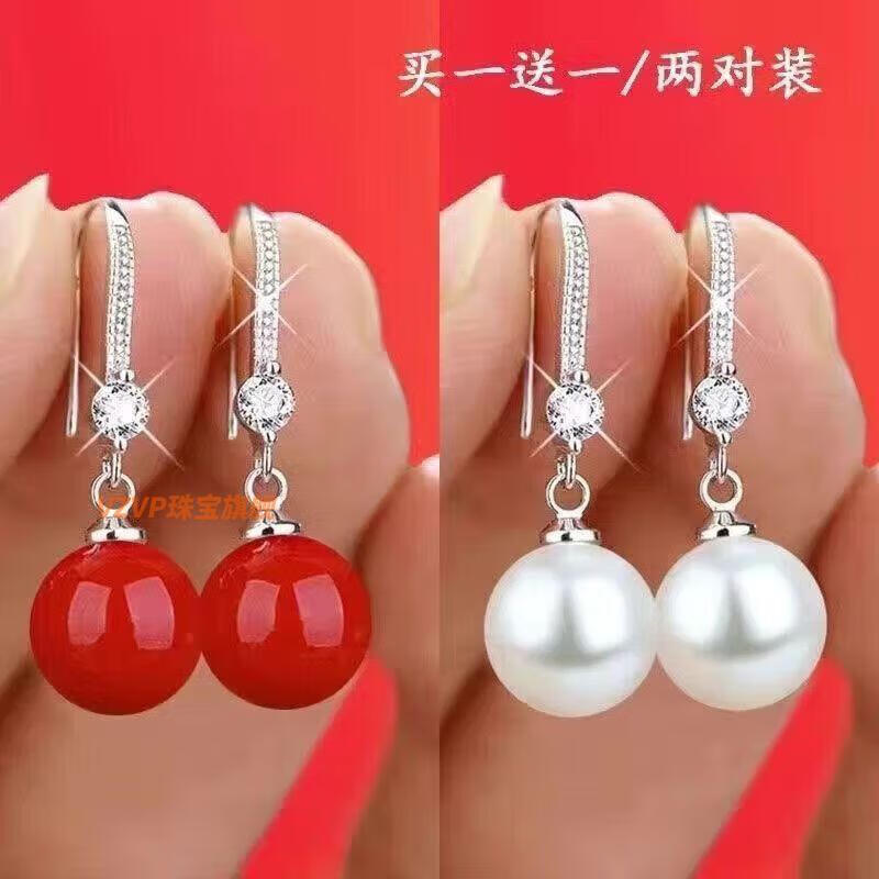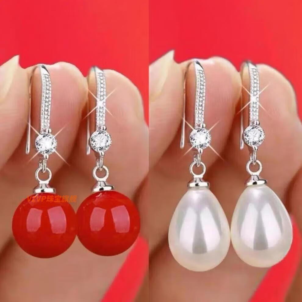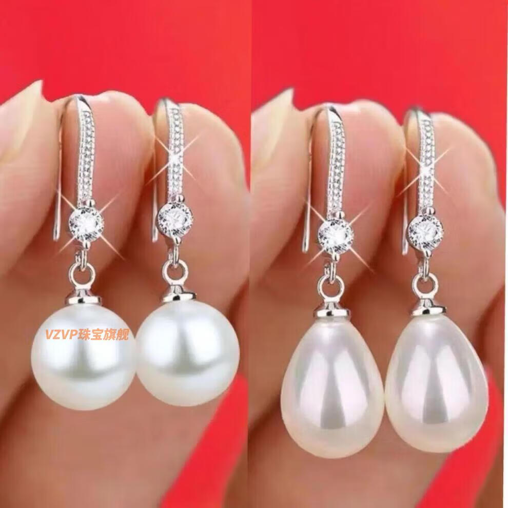 VZVP Old Phoenix 2025 sterling silver 9999 pure silver new style earrings women's style temperament pearl ear hooks anti-hypersensitive white water drops silver ear hook pearls the same style as Fat Donglai