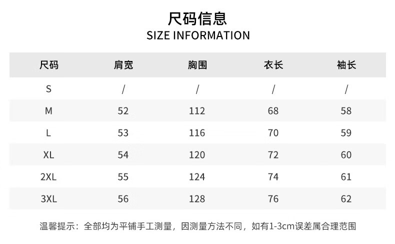 China (cm) 165 / 88-90 170 / 96-98 175 / 108-110 180 / 118-122 185 / 126-130