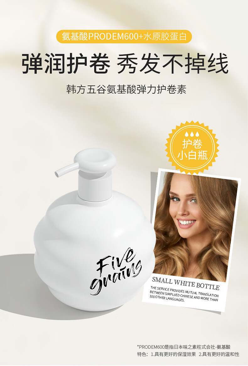 Korean herbal grain amino acid elastin curl protector, moisturizing and long-lasting hair care essence, curl protector elastin after perm, HF amino acid elastic curl protector 300ml