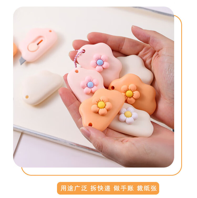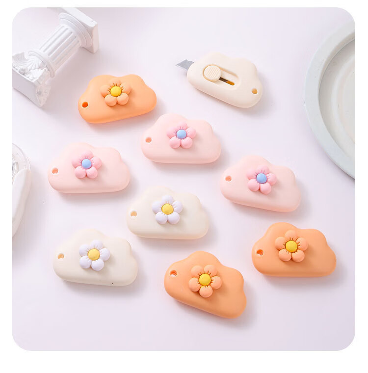 Jewelry Accessories Girly Heart Cloud Utility Knife with Flowers Small Portable Student Express Unpacking and Opening Letters Cloud Utility Knife-Pink with Flowers 1