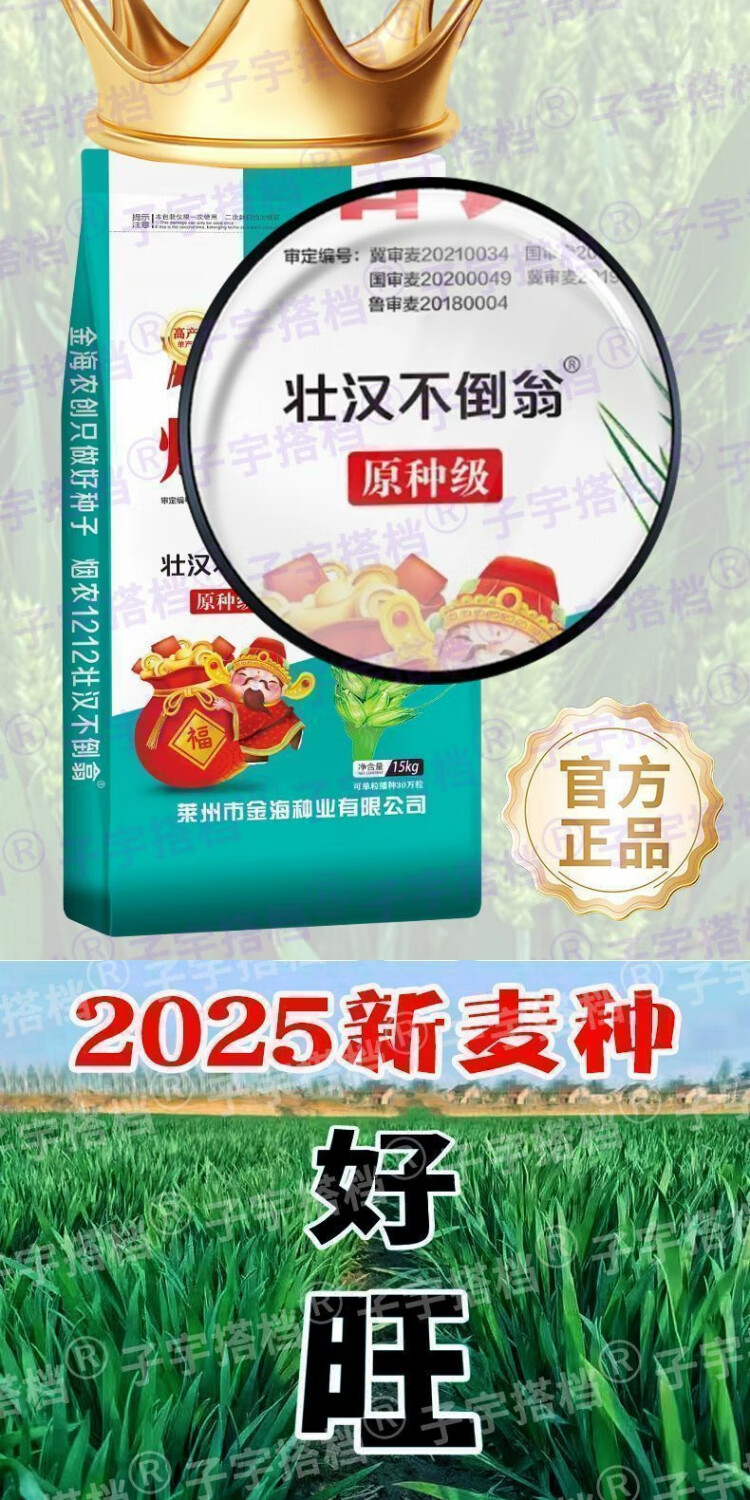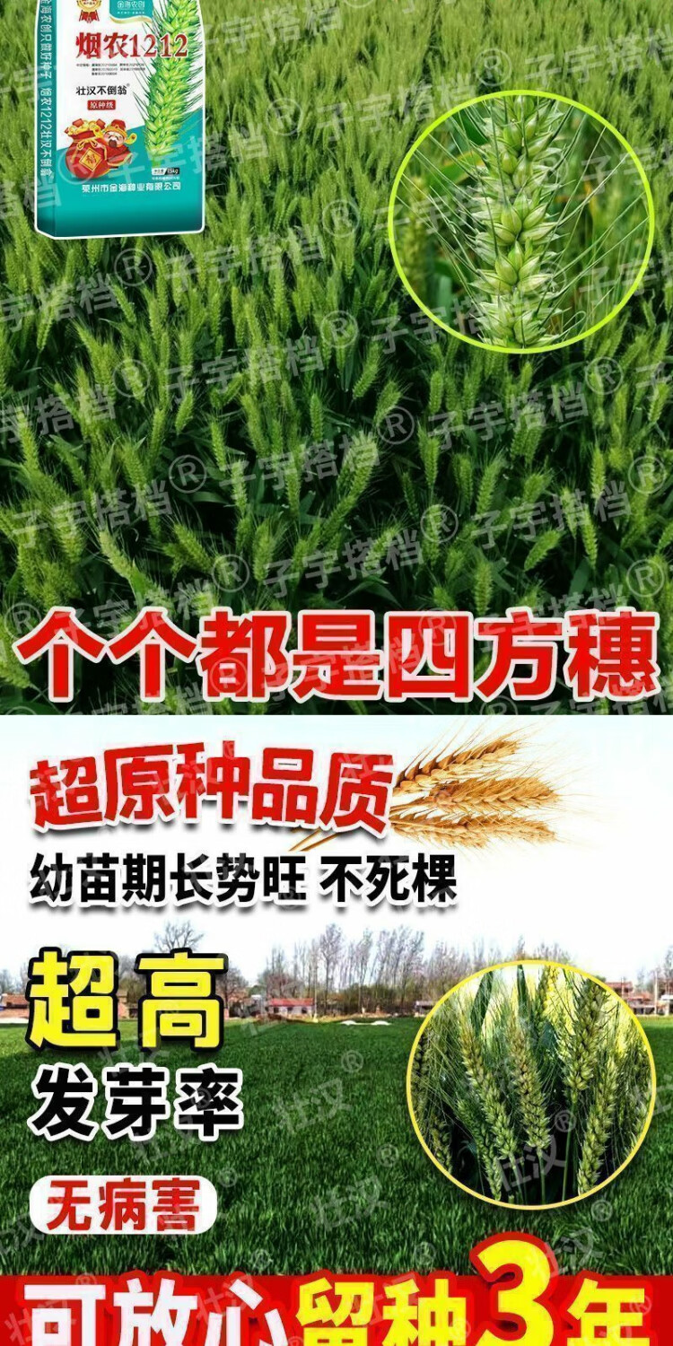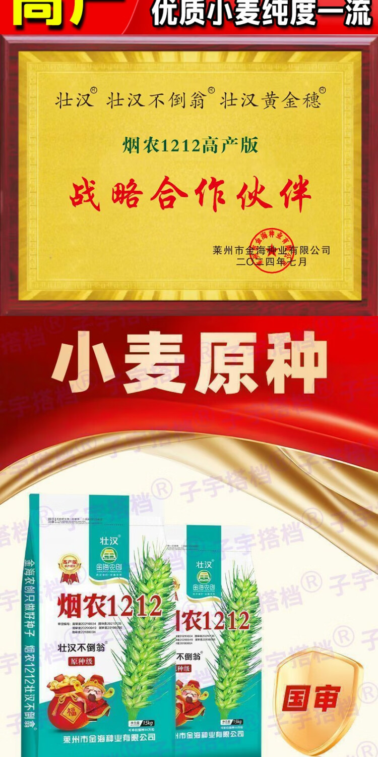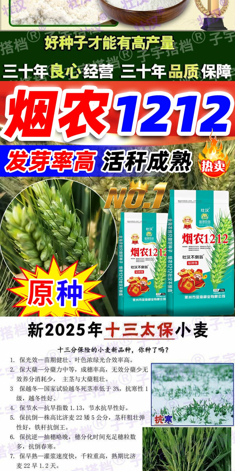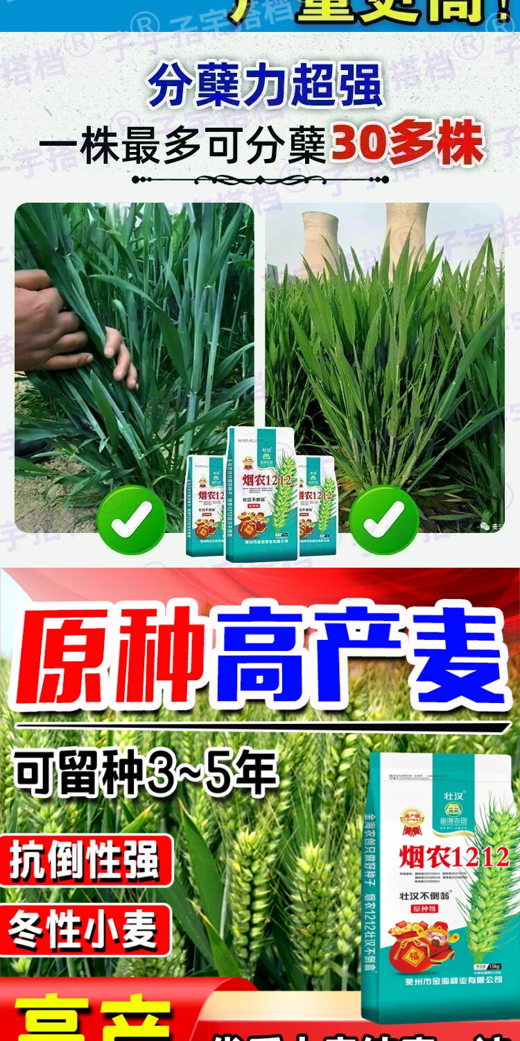 Strong man, original seed grade, Tobacco Nong 1212 wheat seed, genuine, high-yielding, drought-resistant and frost-resistant winter wheat seed, a new variety of winter wheat seed, high-purity wheat seed approved by both countries, 15 kg, original seed grade