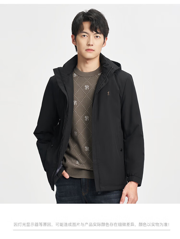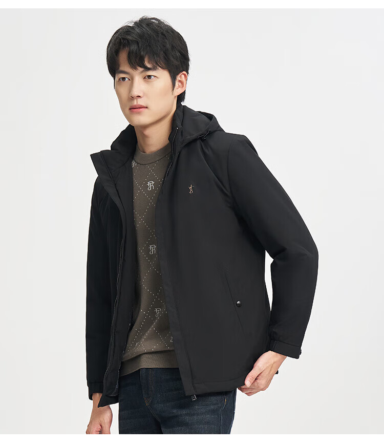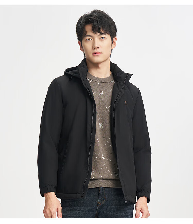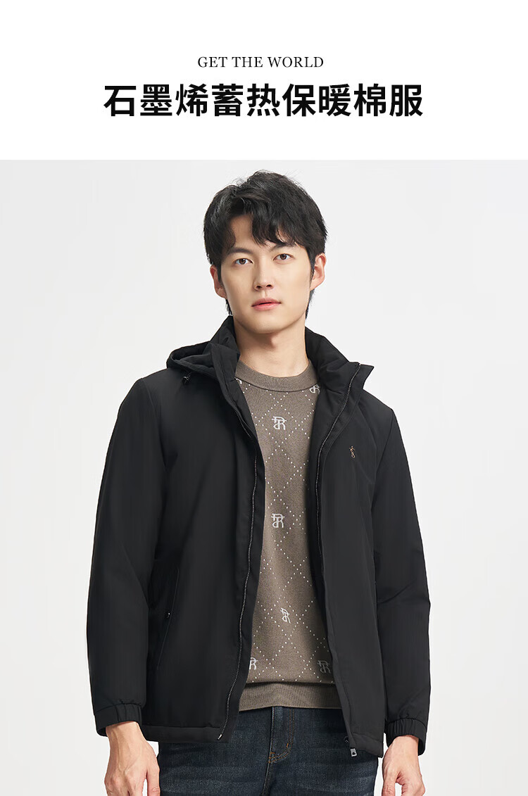 TRIES Business Casual Men's Cotton Clothes Graphene Self-heating Warm Technology Winter Thickened Windproof Jacket Commuting Cotton Clothes Black XL (175/92A)