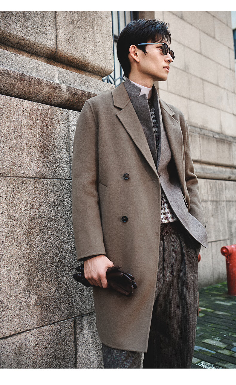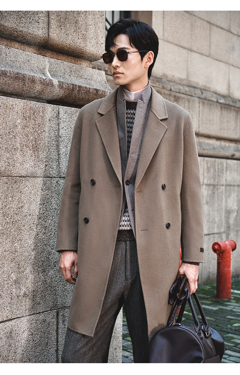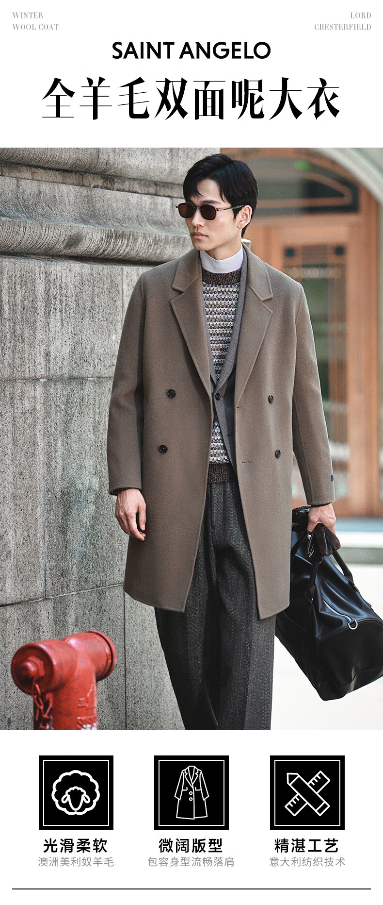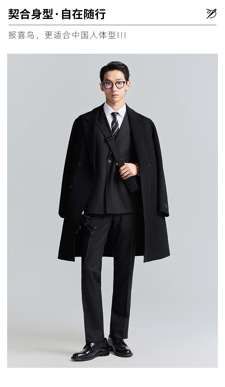 Angel Bird Coat Men's 100% Wool Autumn and Winter Casual Long Double-sided Wool Coat Slightly Wide Loose Fashion Jacket Obsidian Black 2XL -52(185/104)