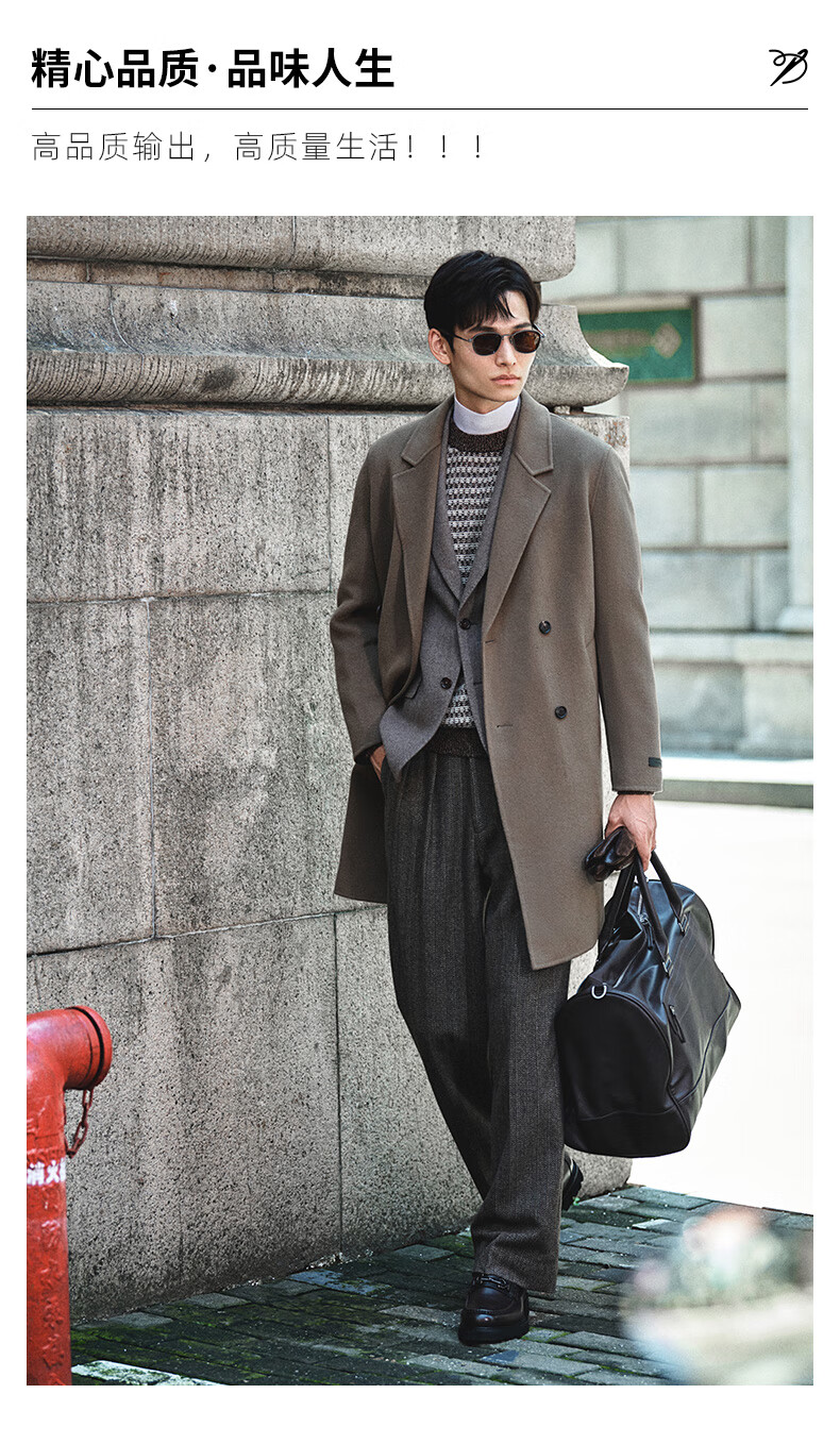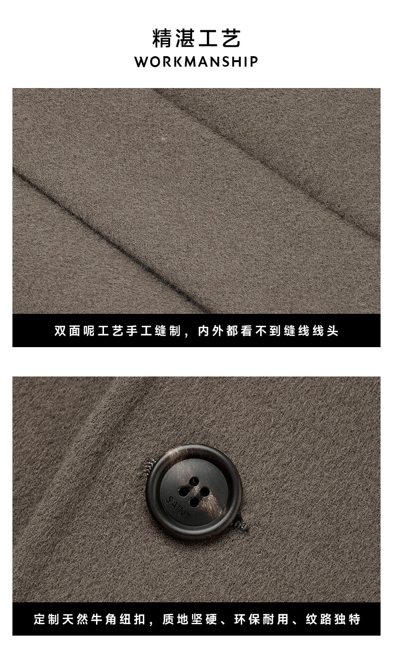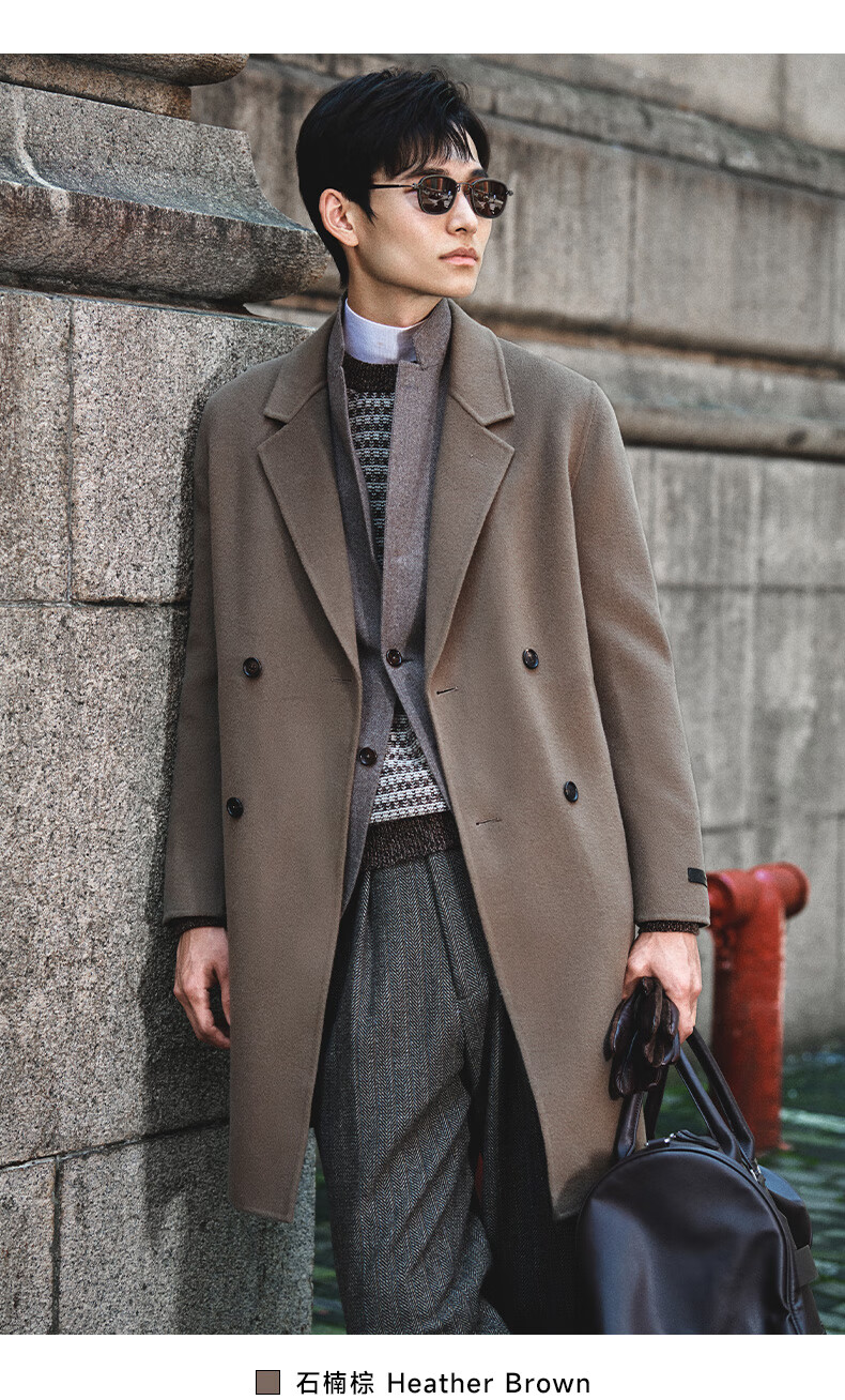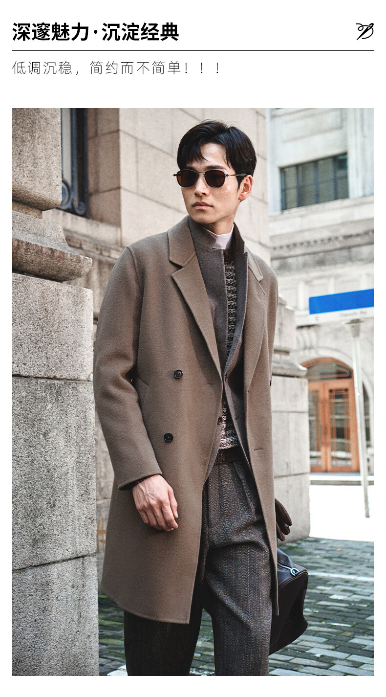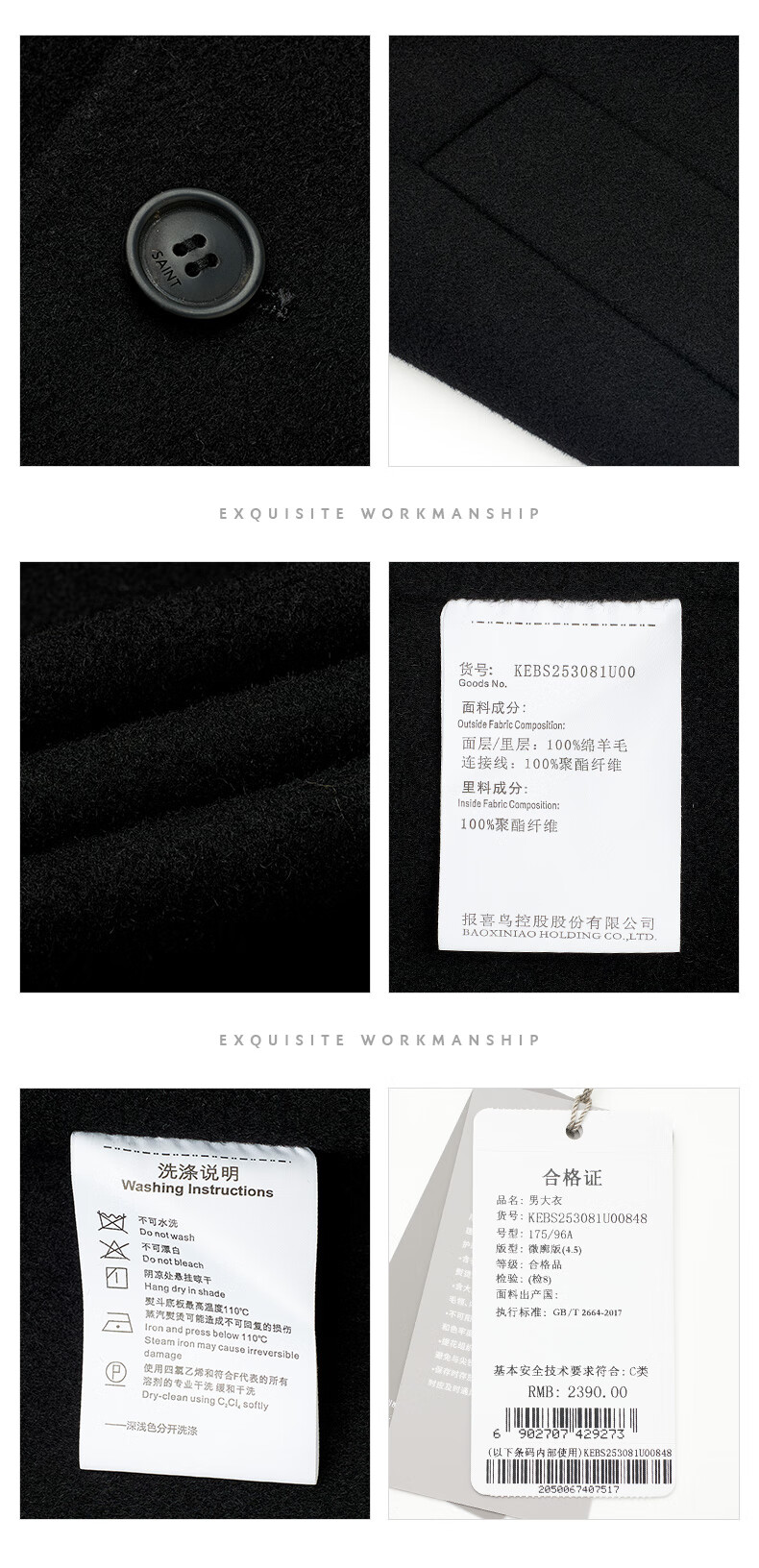 Angel Bird Coat Men's 100% Wool Autumn and Winter Casual Long Double-sided Wool Coat Slightly Wide Loose Fashion Jacket Obsidian Black 2XL -52(185/104)