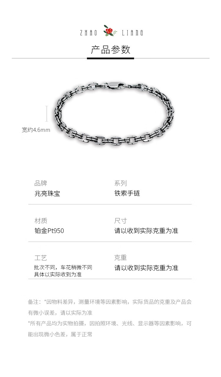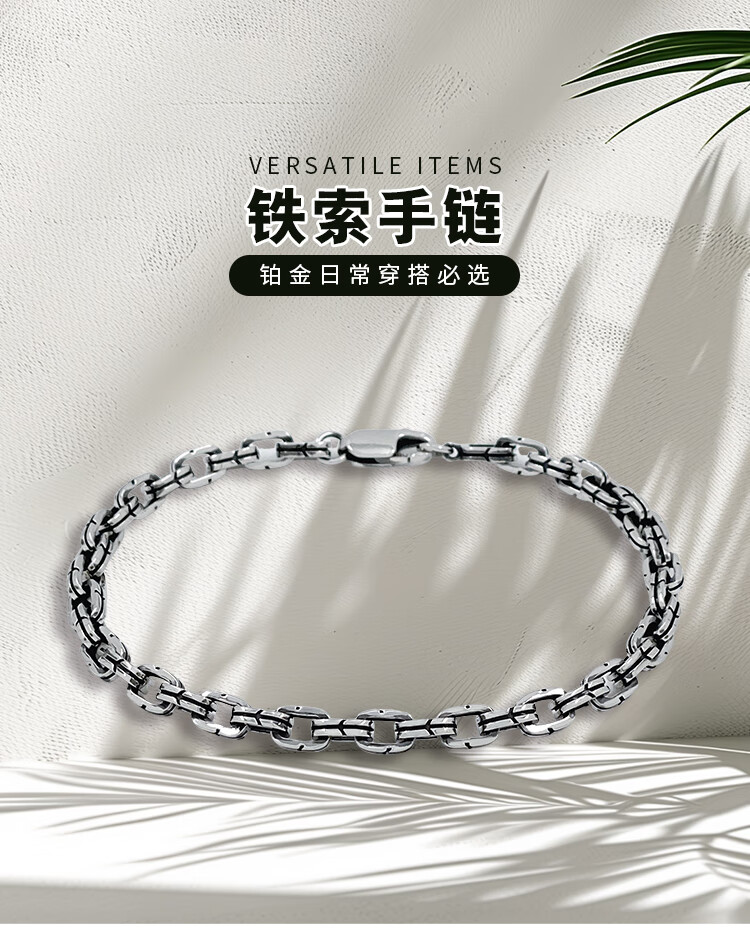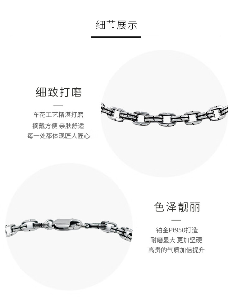 Zhaoliang Double Ring Platinum Bracelet Men's PT950 Platinum Solid Bracelet Fashion Trendy Versatile Birthday Gift for Boyfriend 22.75g Length 20cm Width 6mm