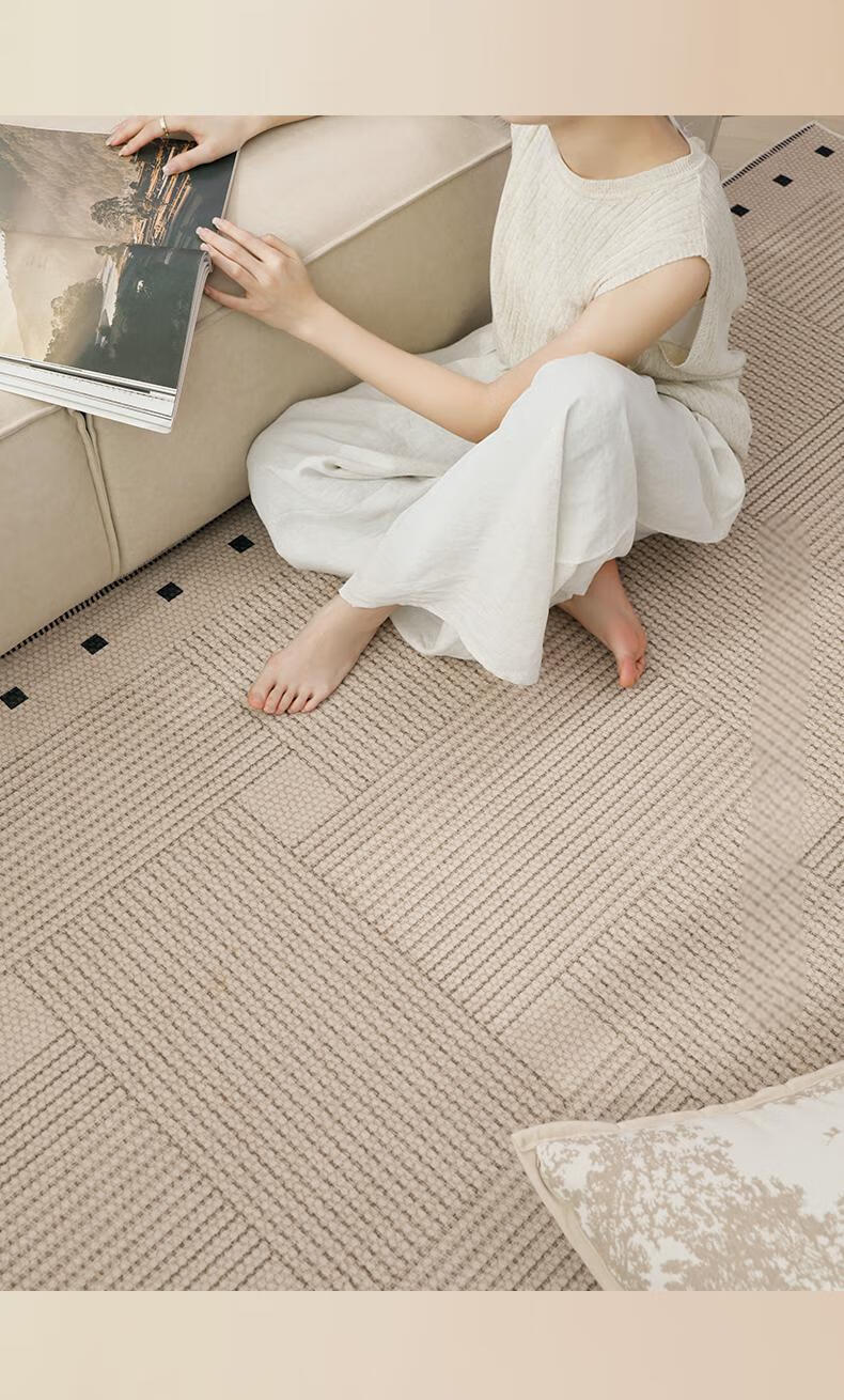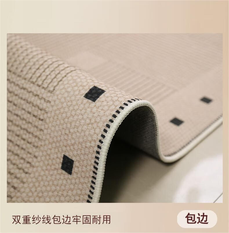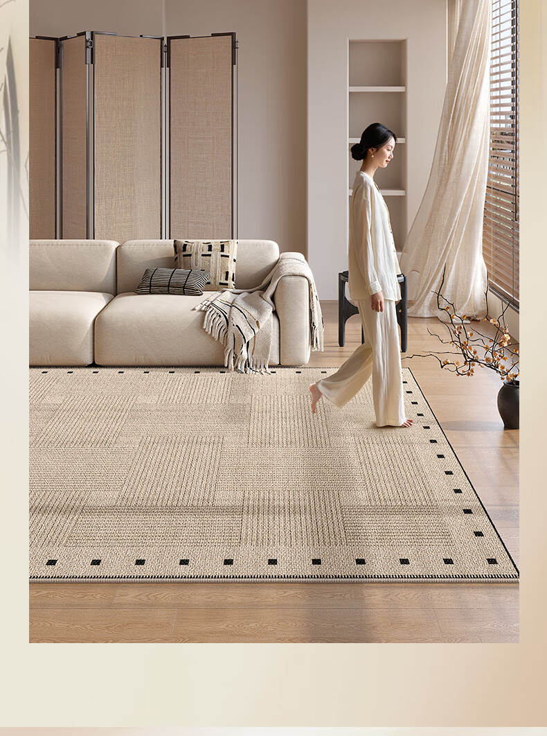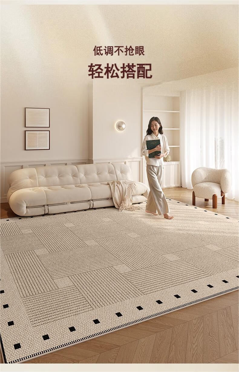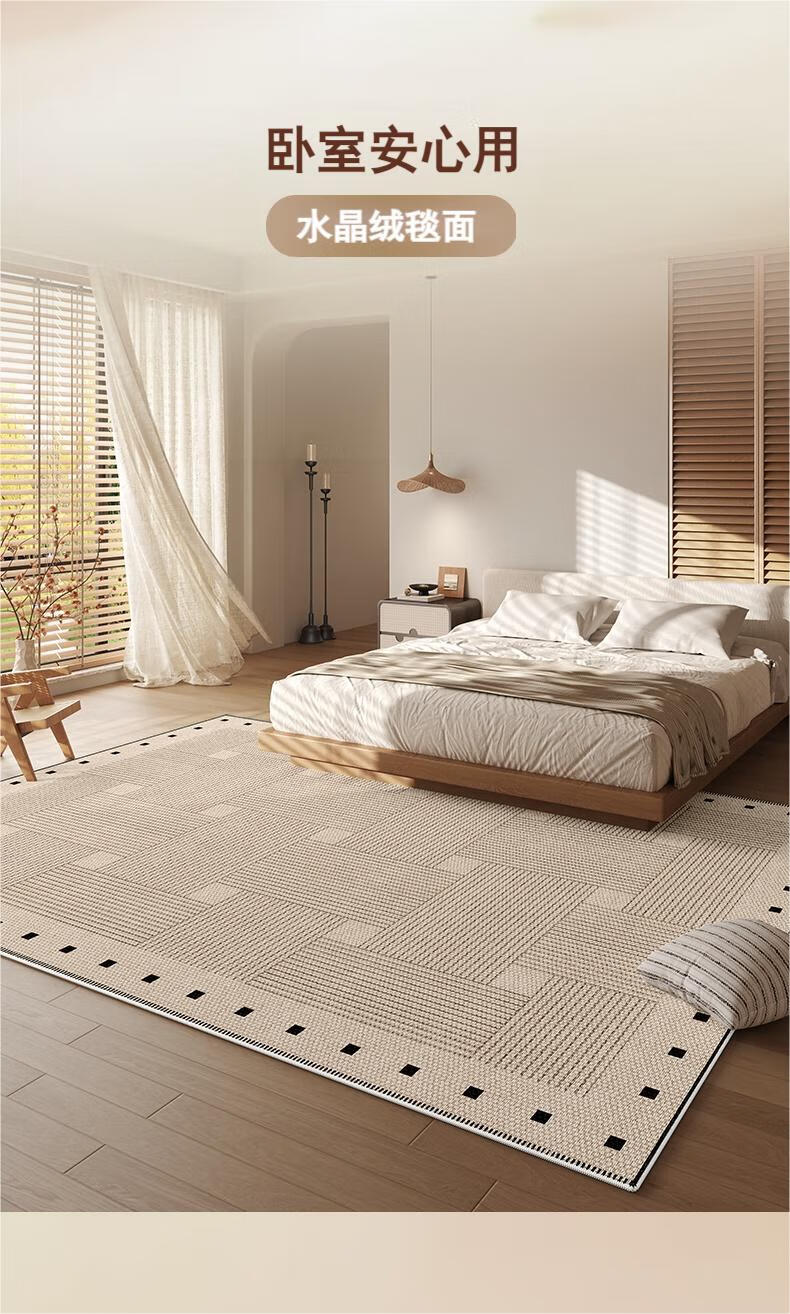 Muni living room carpet 2026 new high-end no-wash and wipeable medieval wabi-sabi sofa bedroom floor mat waterproof large area line square living room carpet Fang Li 140*200cm crystal velvet carpet surface
