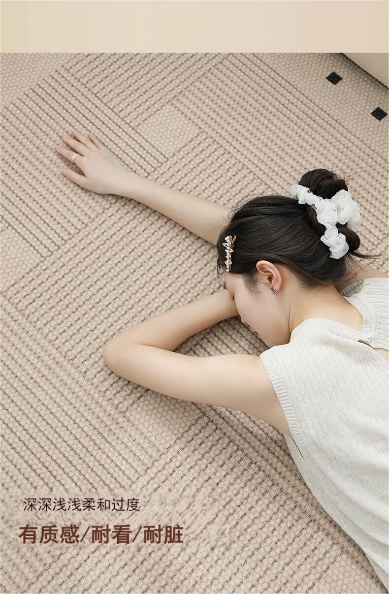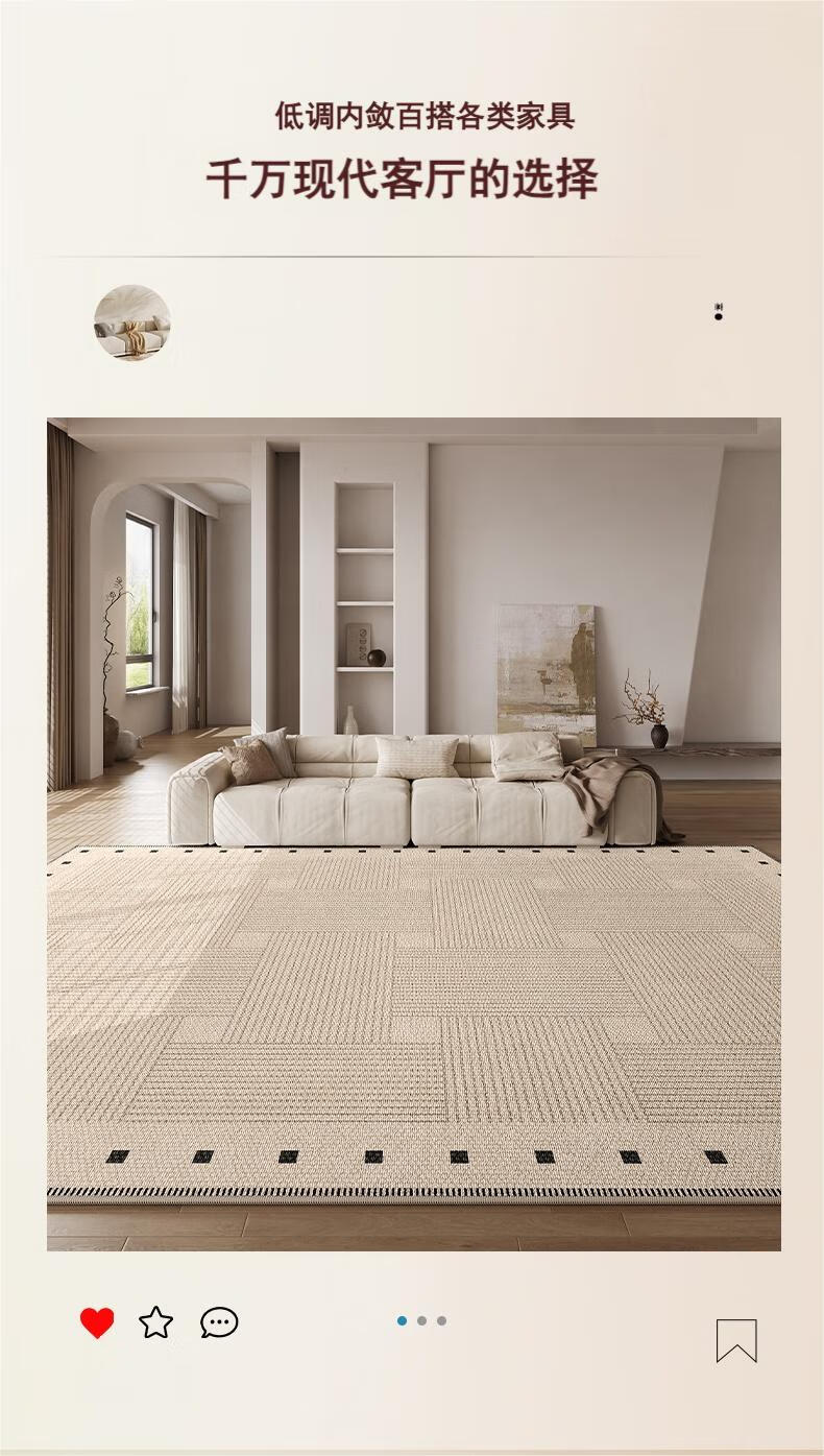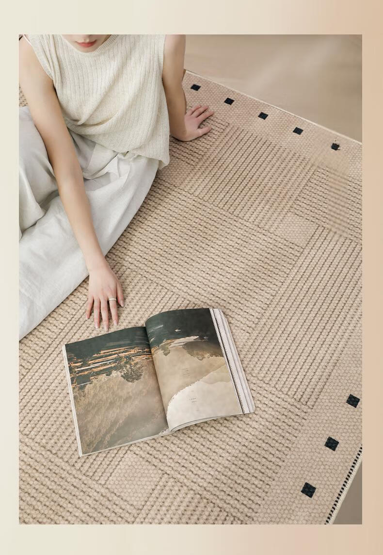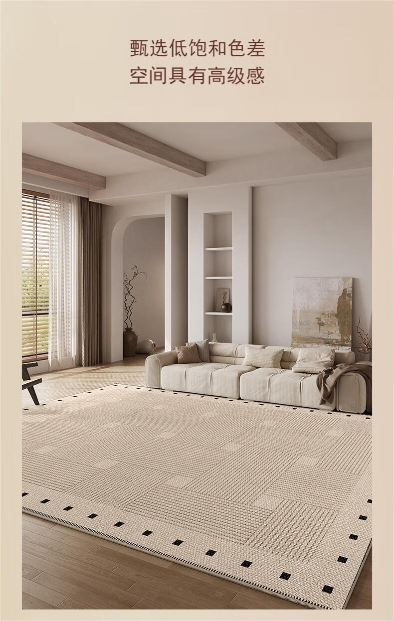 Muni living room carpet 2026 new high-end no-wash and wipeable medieval wabi-sabi sofa bedroom floor mat waterproof large area line square living room carpet Fang Li 140*200cm crystal velvet carpet surface