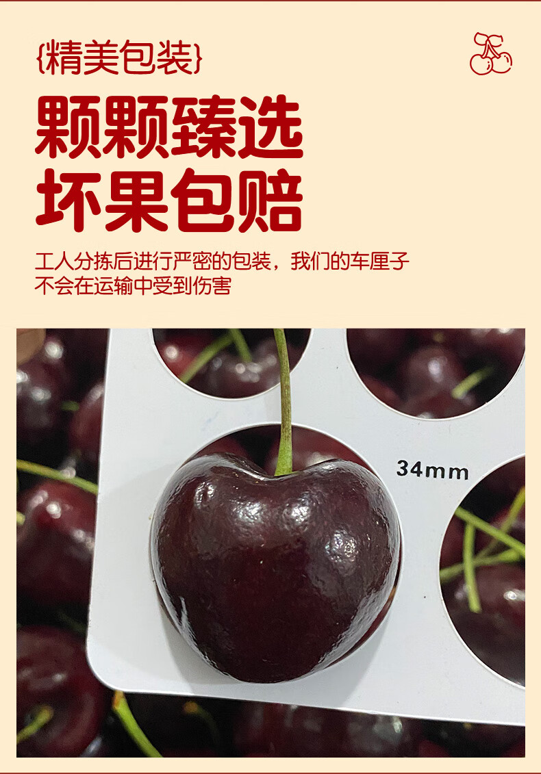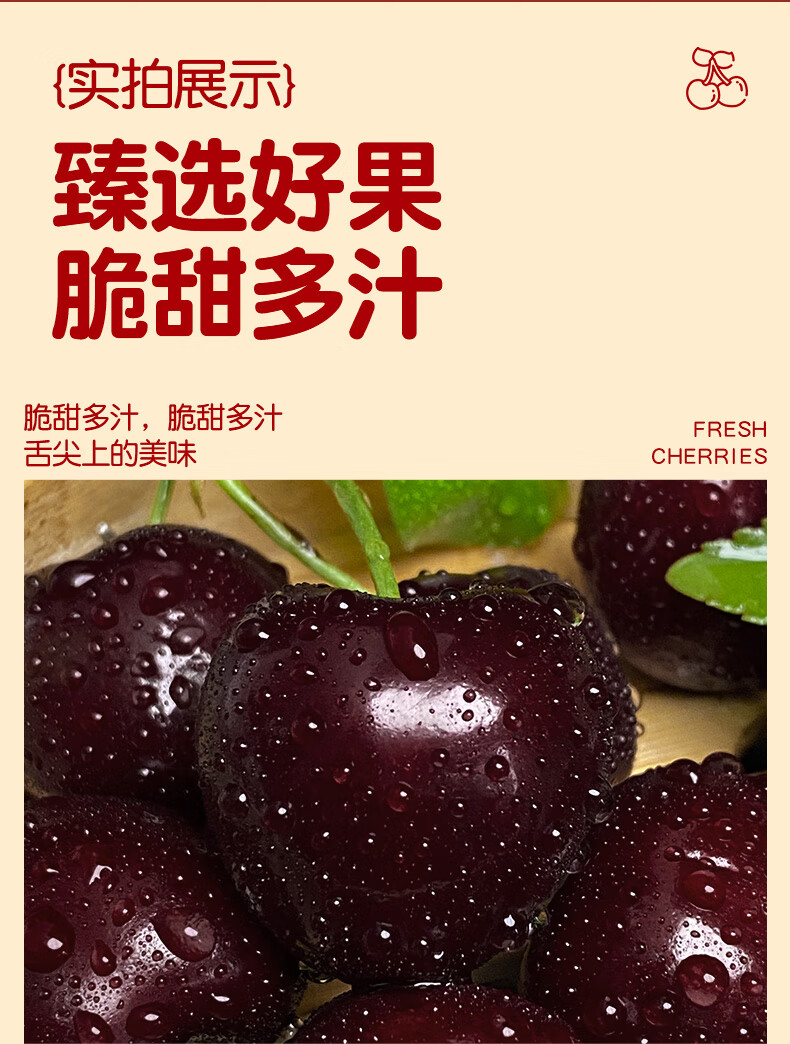 Bachiguo imported cherries from Chile air-shipped large cherries in stock direct delivery gift box seasonal fruits for pregnant women 450g (net weight) large fruit J grade single fruit 6-8g