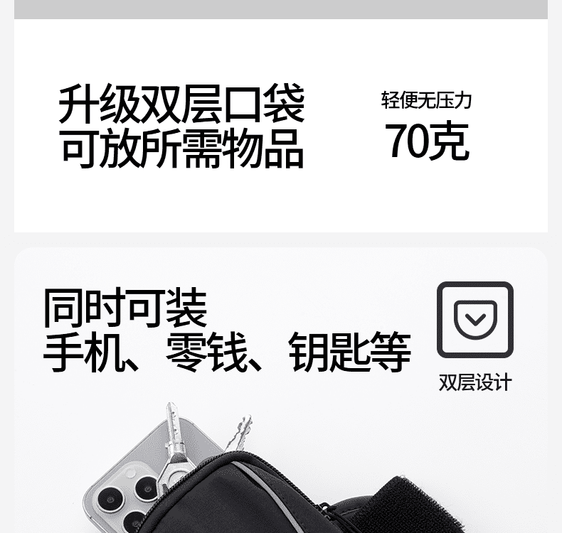 Odu running mobile phone arm bag outdoor sports cycling fitness arm bag arm bag men and women waterproof arm strap wrist bag black