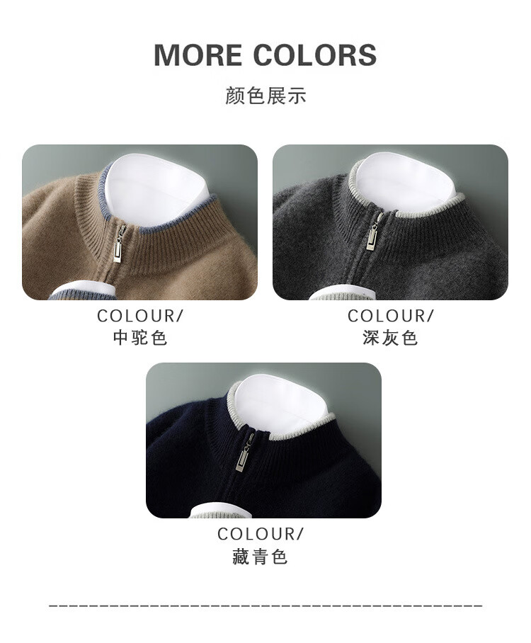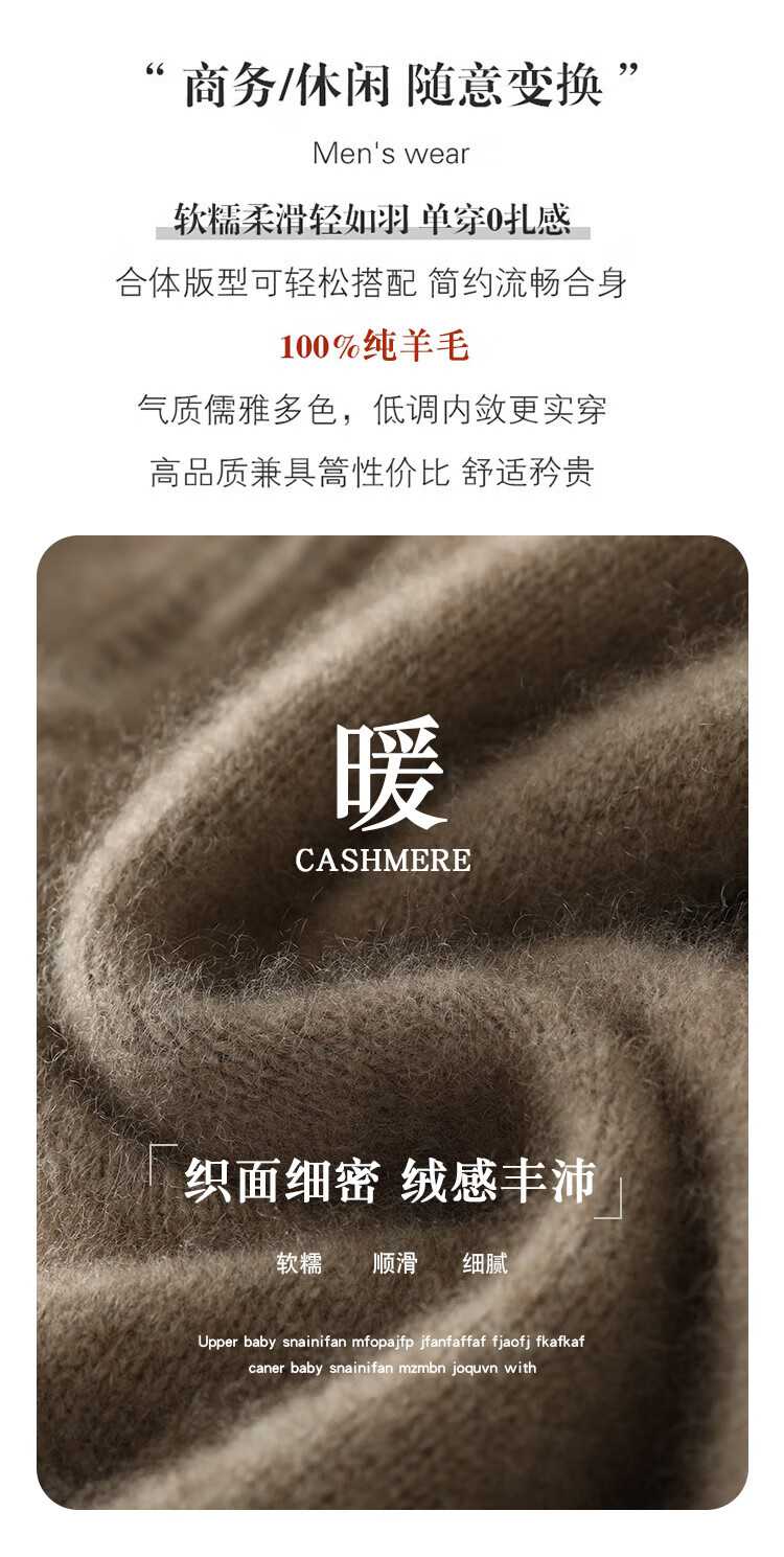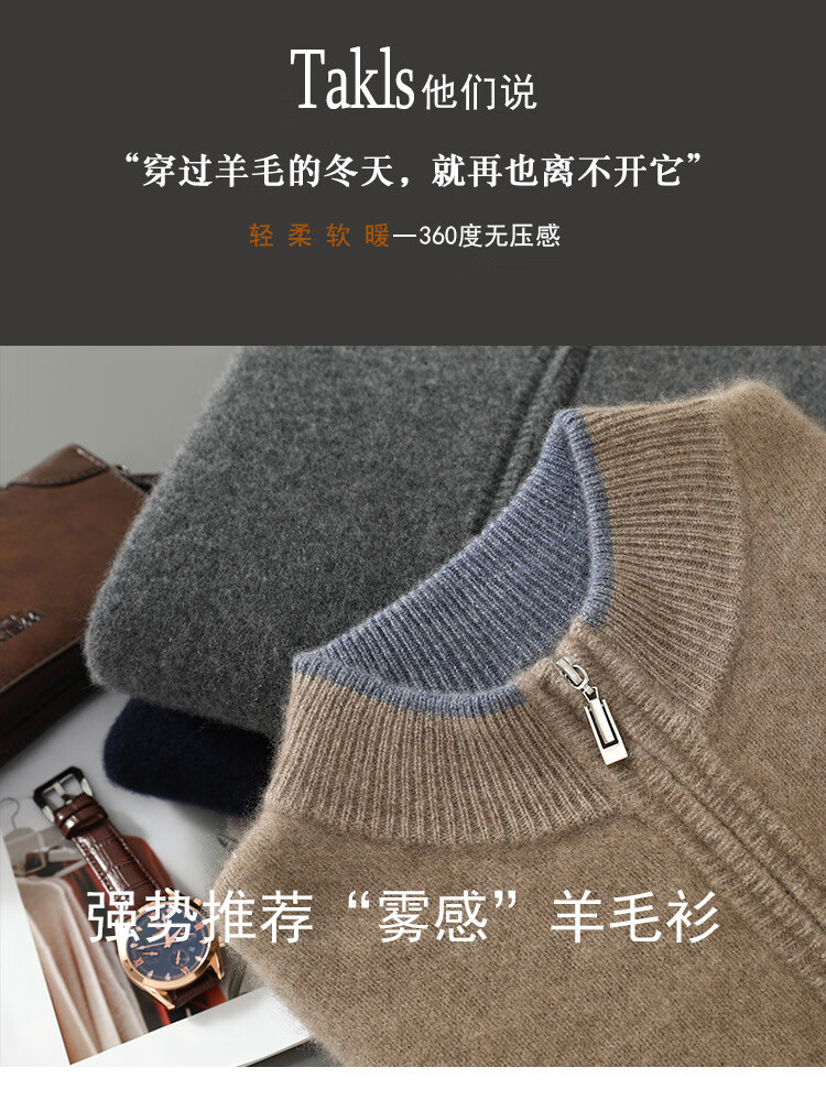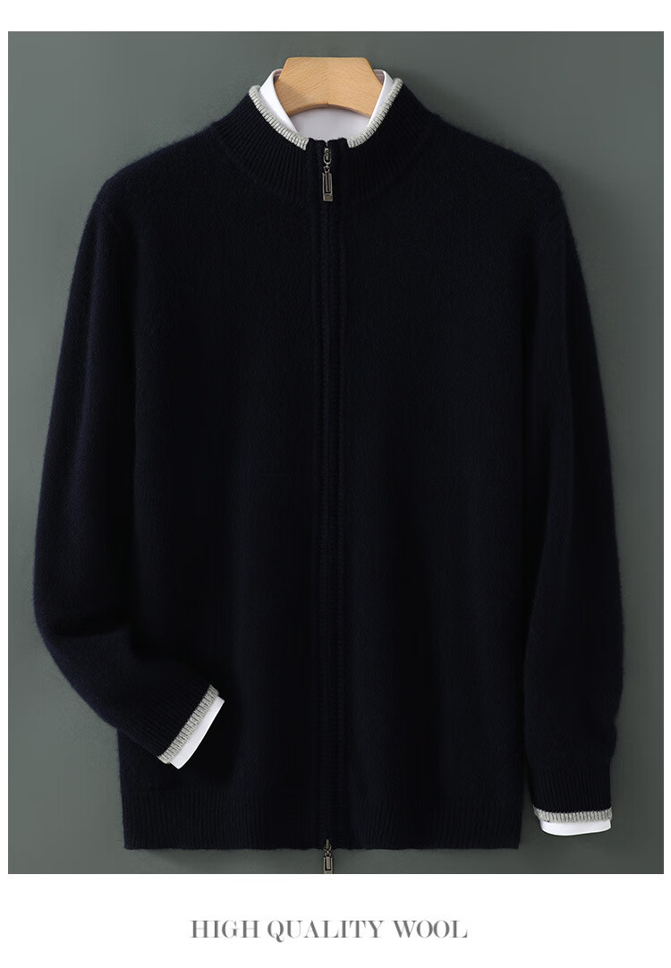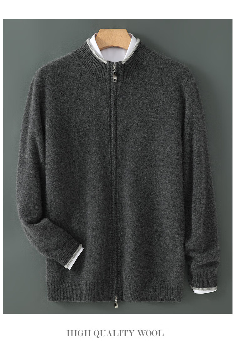 ROMON 100% sheep wool sweater men's cardigan coat autumn and winter business casual thickened warm contrast double zipper sweater medium camel XL
