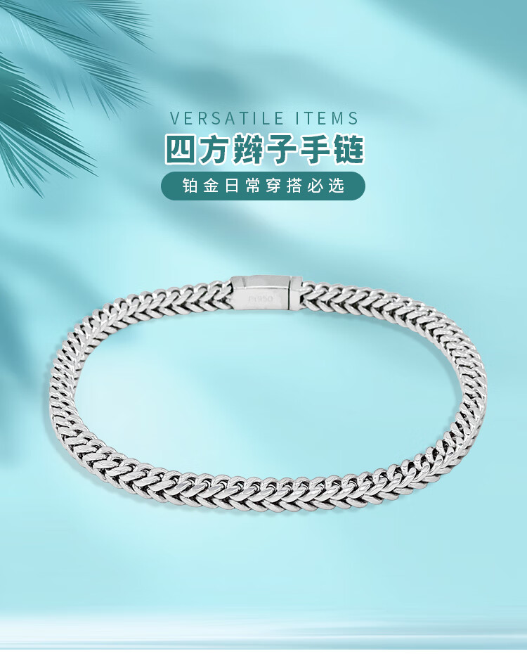 Zhaoliang keel square platinum bracelet for men PT950 platinum solid hand jewelry fashion trendy black craft platinum chain 44.27 grams long 21cm wide about 4.5mm