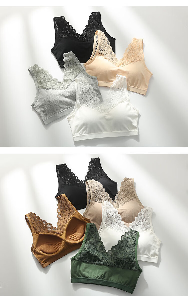 Victoria's style pure cotton one-piece breast pad beautiful back bra push-up no rims sleep sports bra women's lace sexy chest wrap vest pure cotton skin-friendly single piece - black M recommended 90-105Jin Jin equals 0.5 kg