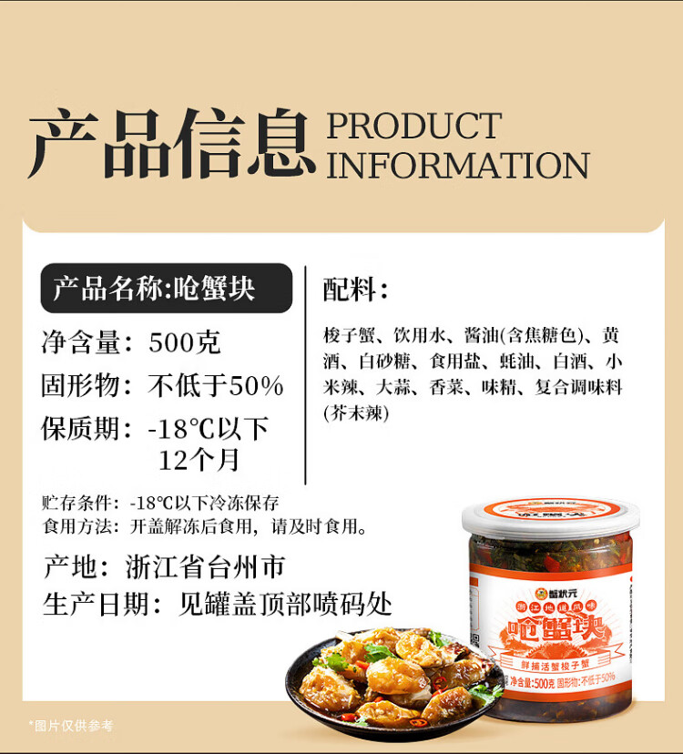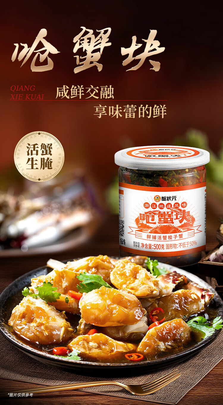 Crab Zhuangyuan Chopped White Crab Nuggets Ready-to-Eat Choked Crab Ningbo Pickled Crab Zhoushan Seafood Female Crab Sauce with Rice 500g *2 cans