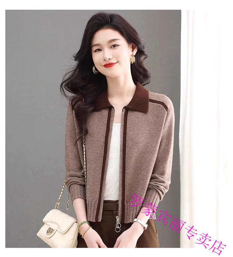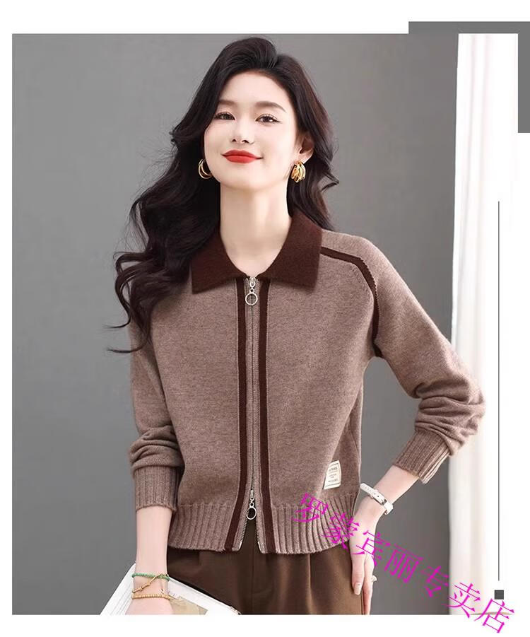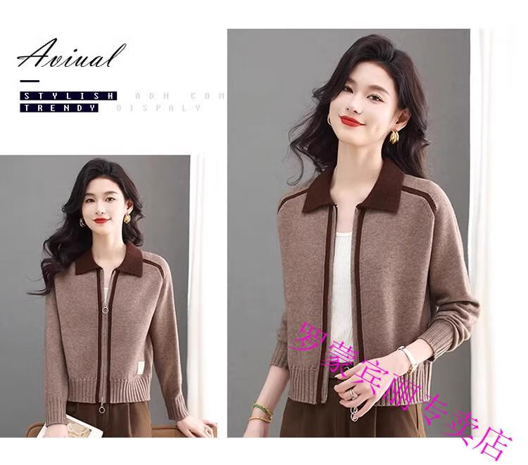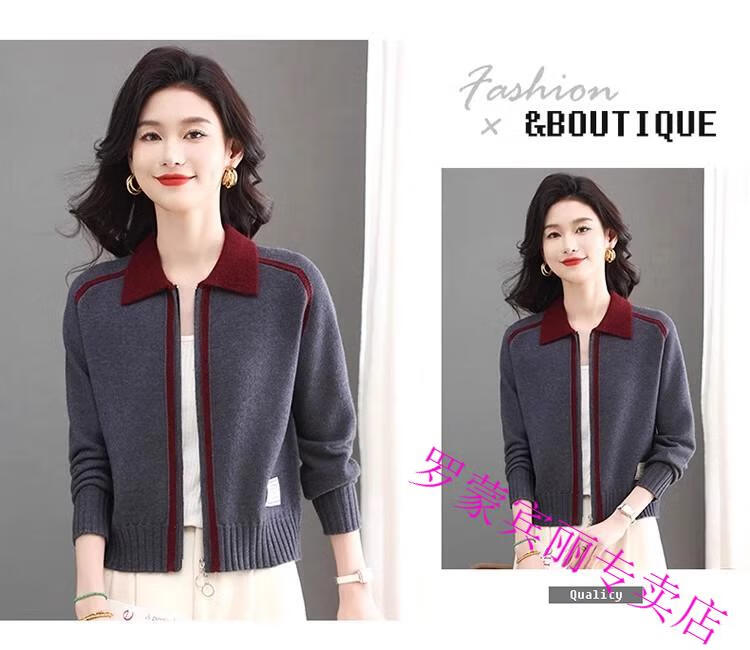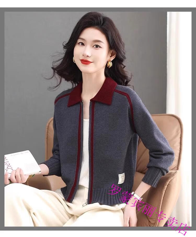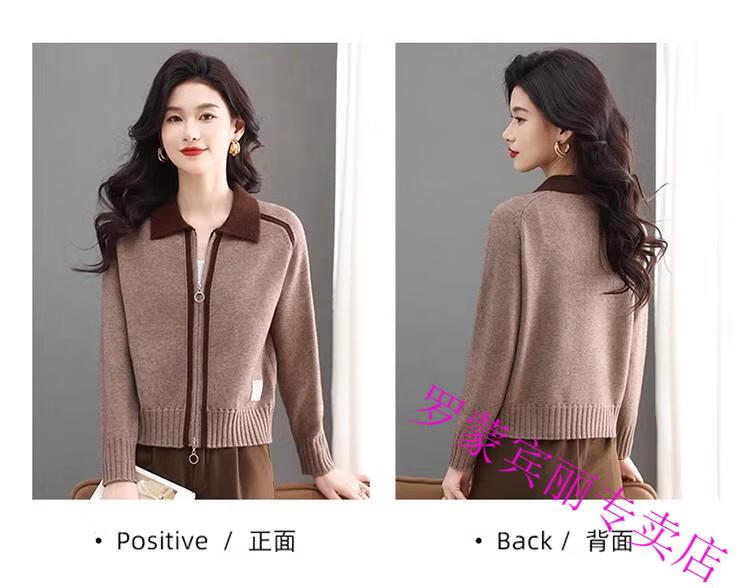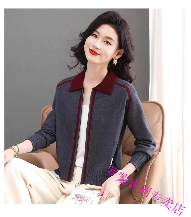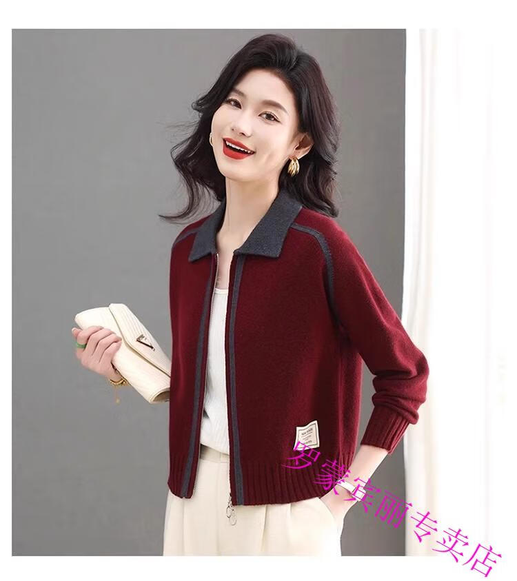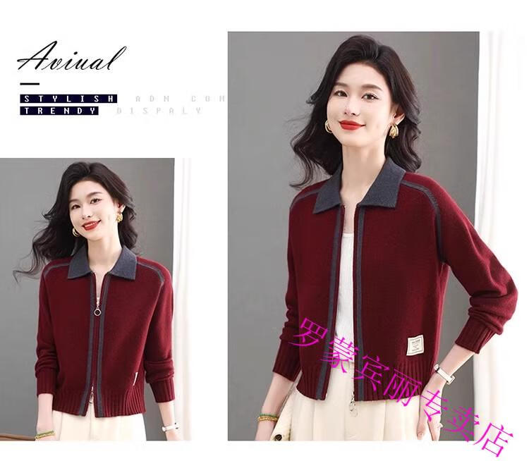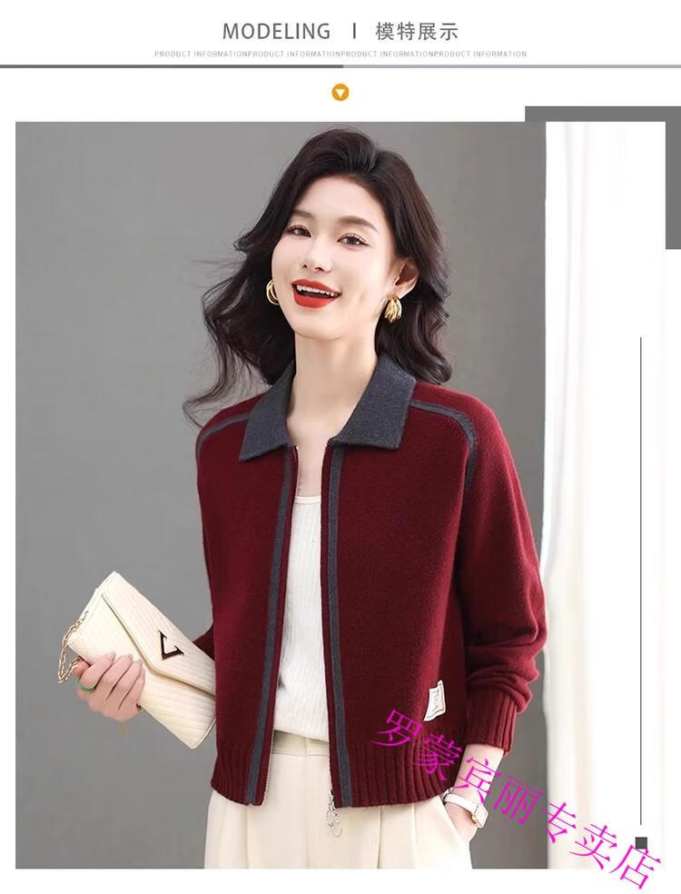ROMON lapel zipper knitted cardigan for women spring and autumn new style petite short high-waisted cardigan sweater jacket 100% pure wool-Anchor Red-Top 10 Women's Clothing S Recommendation 80-95Jin Jin equals 0.5 kg